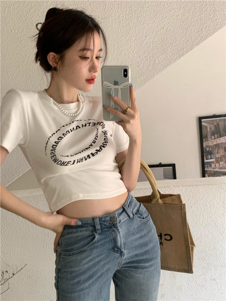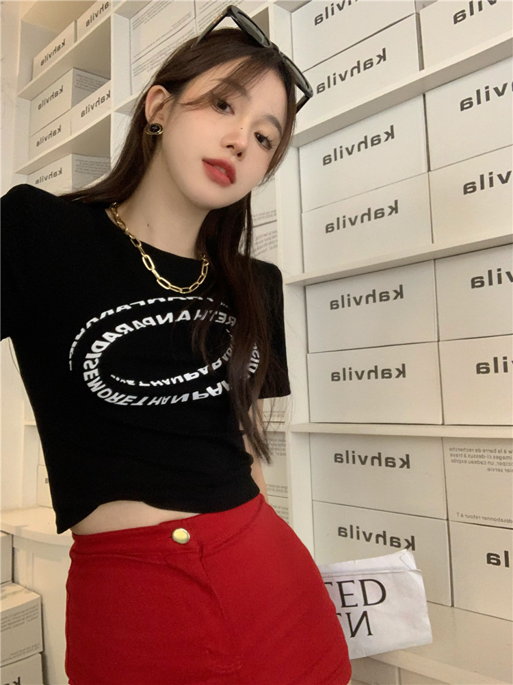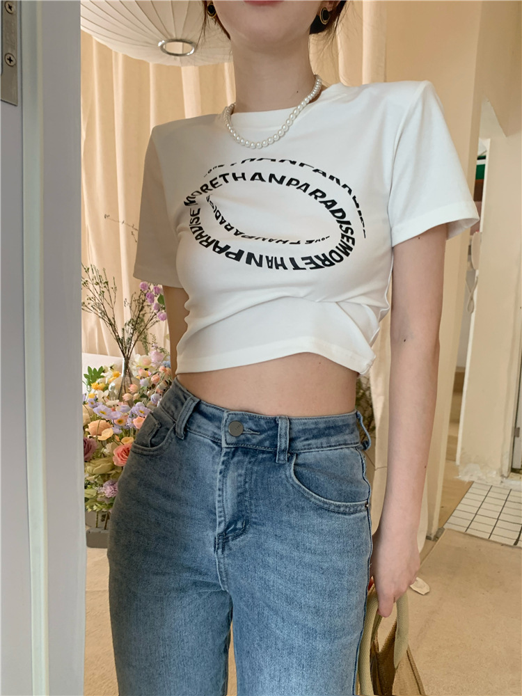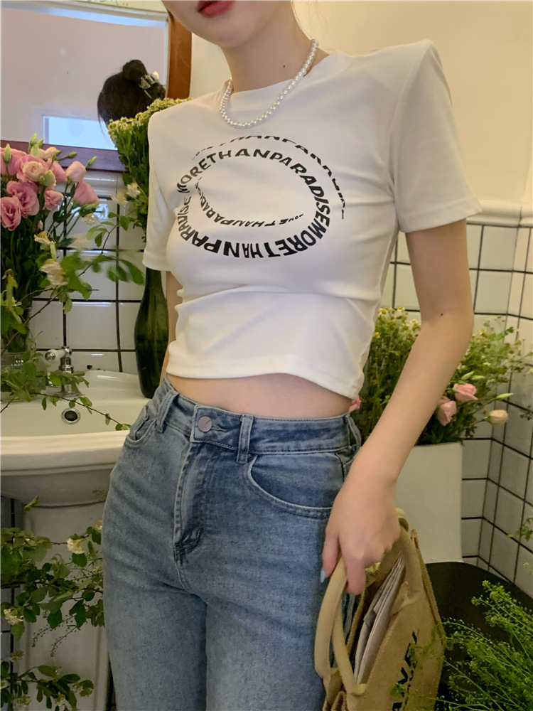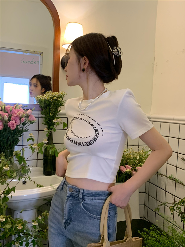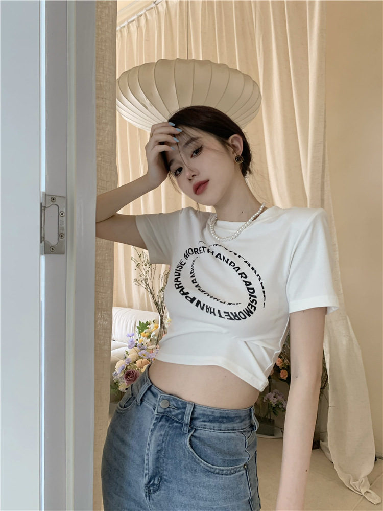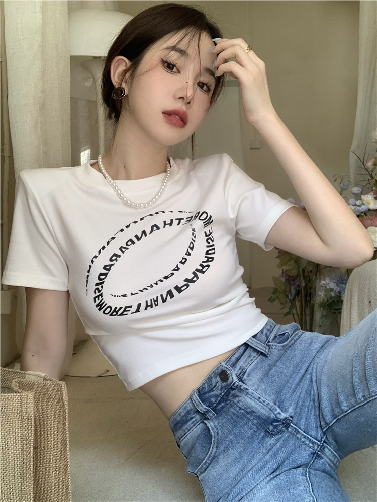 字母印花短袖T恤女2025年夏季新款修身显瘦辣妹白色短款学生上衣