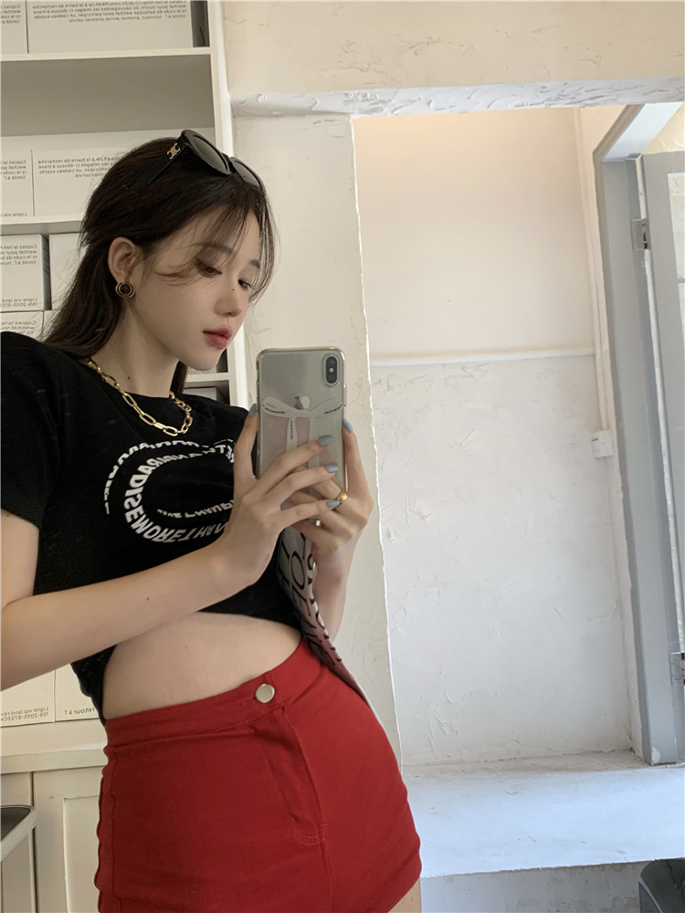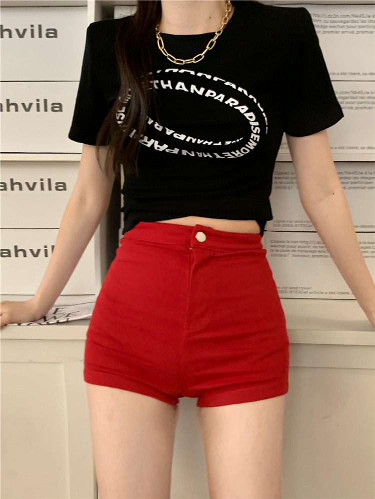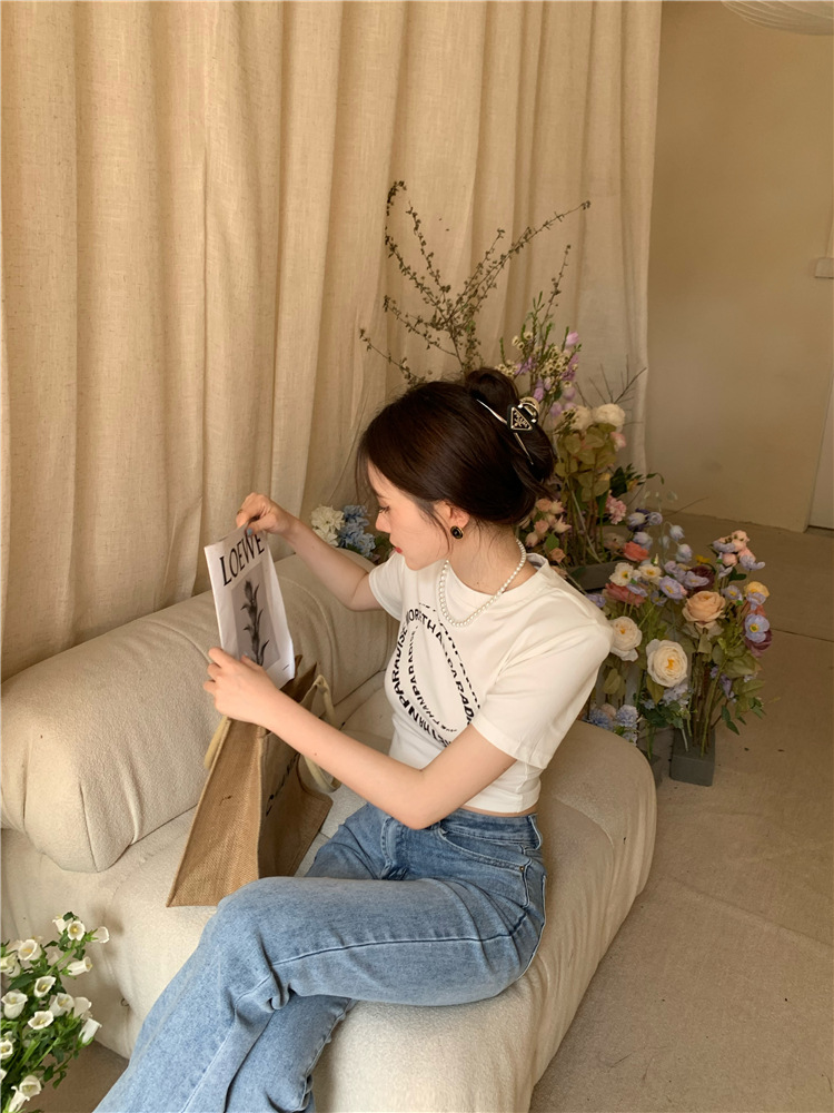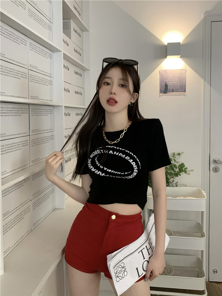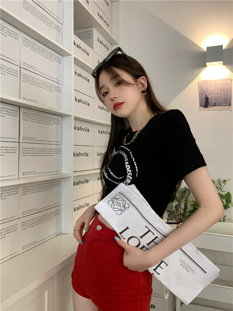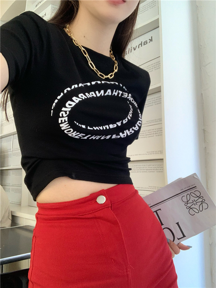 字母印花短袖T恤女2025年夏季新款修身显瘦辣妹白色短款学生上衣