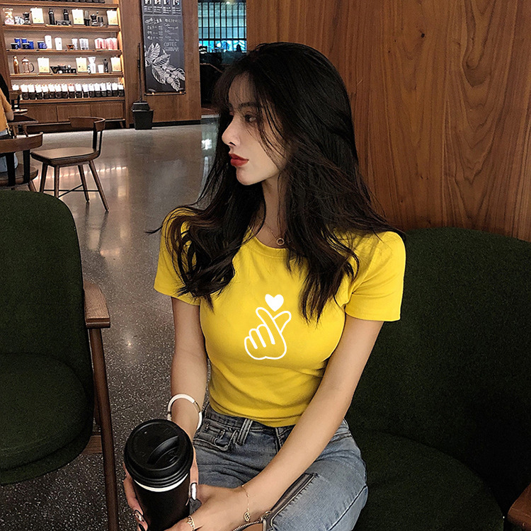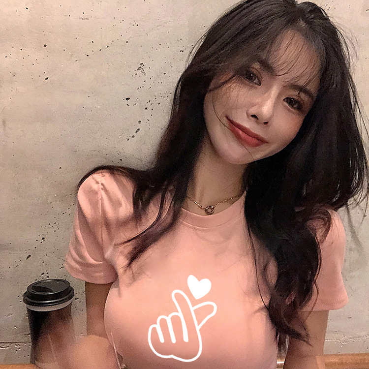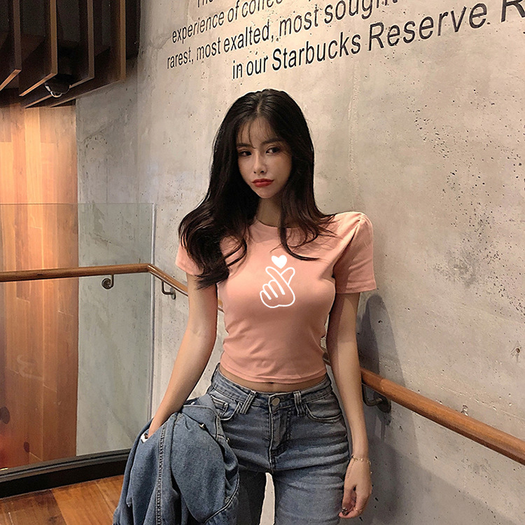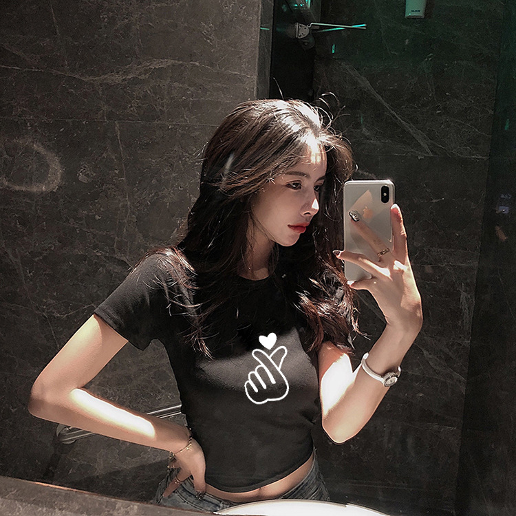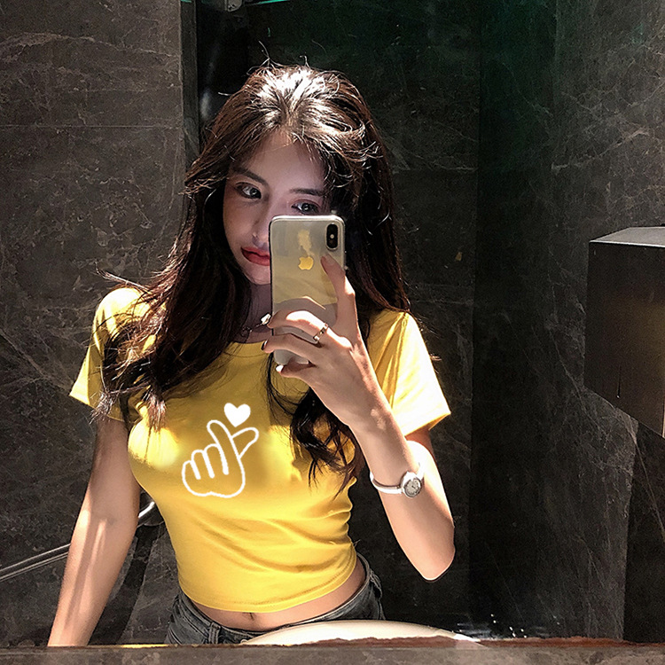 2025夏季新款修身露脐圆领短袖T恤女半袖高腰短款学生上衣女装潮