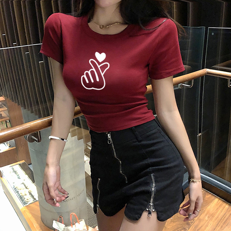 06# 2019#修身露脐圆领短袖T恤女半袖高腰短款上衣漏肚脐短装