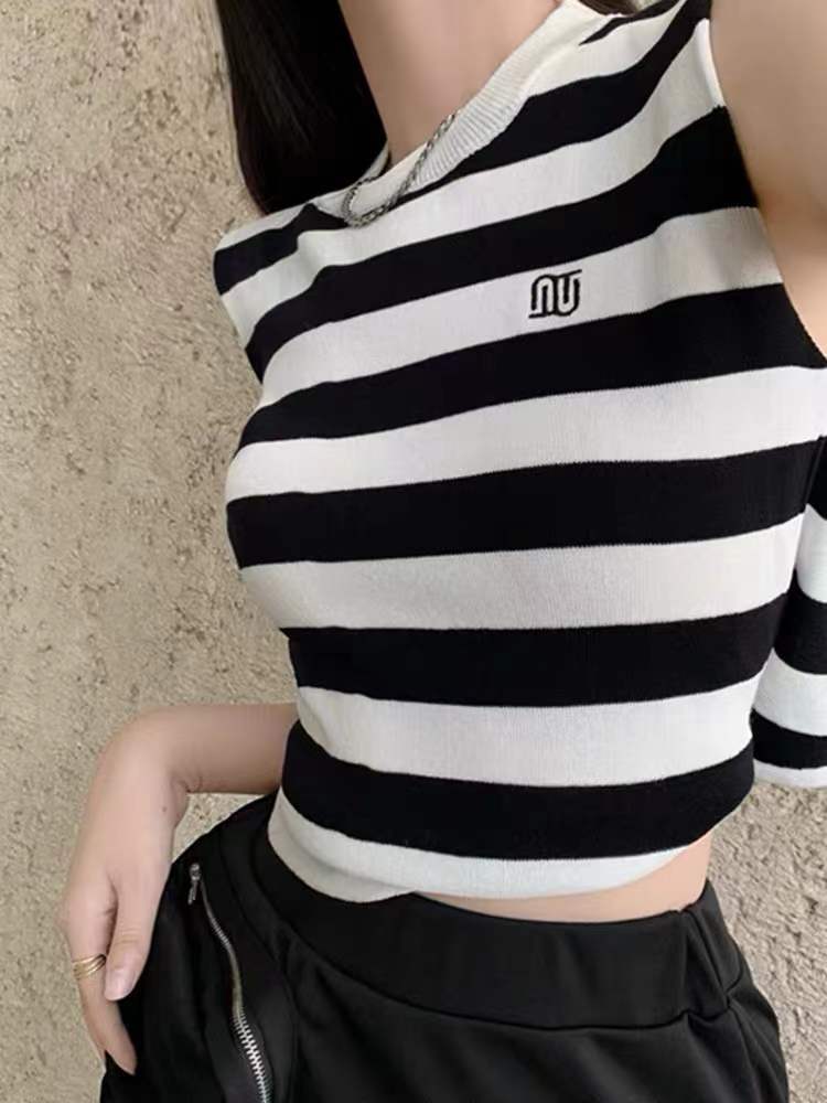 黑白条纹无袖针织女设计感小宽松众背心后背镂空辣妹上衣针织衫女