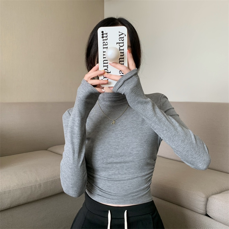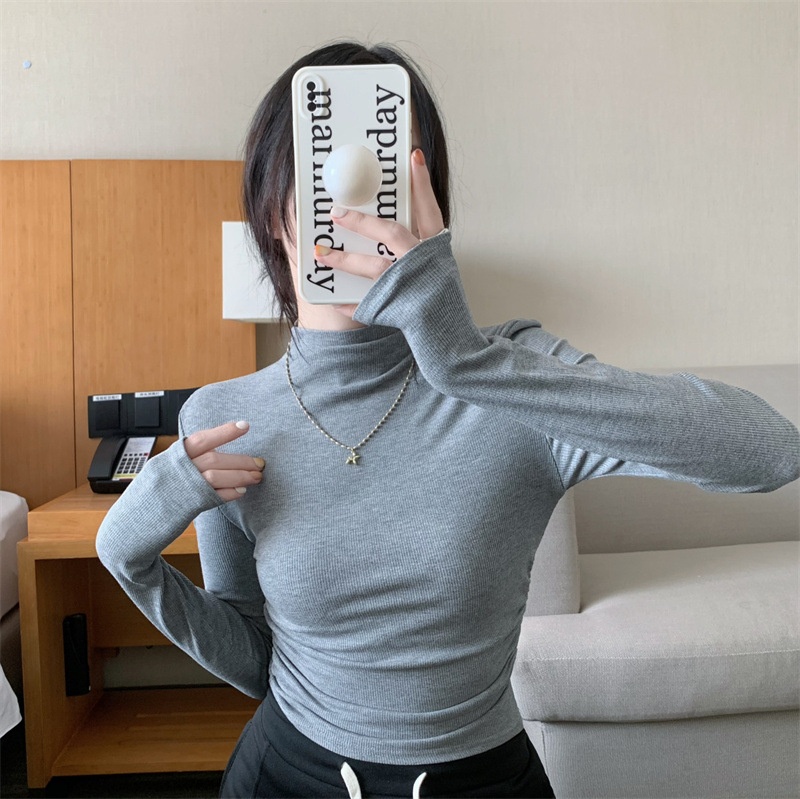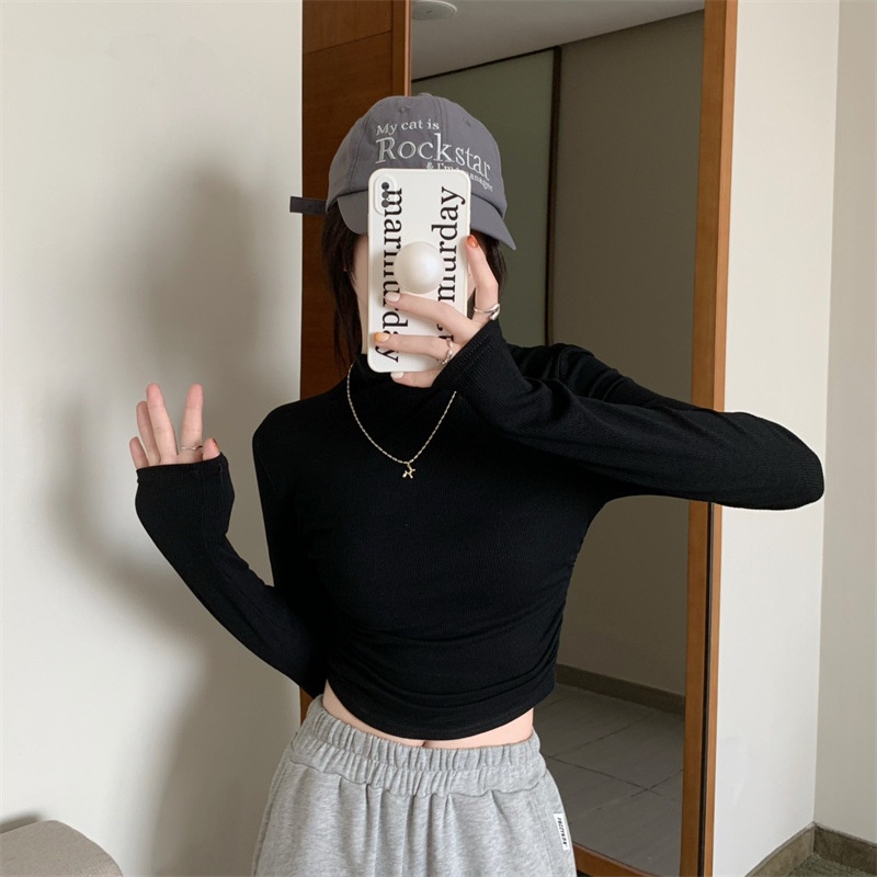 半高领打底衫女修身T恤2025秋季新款韩版内搭长袖短款学生上衣潮