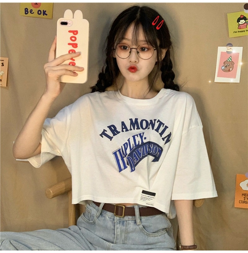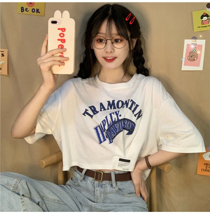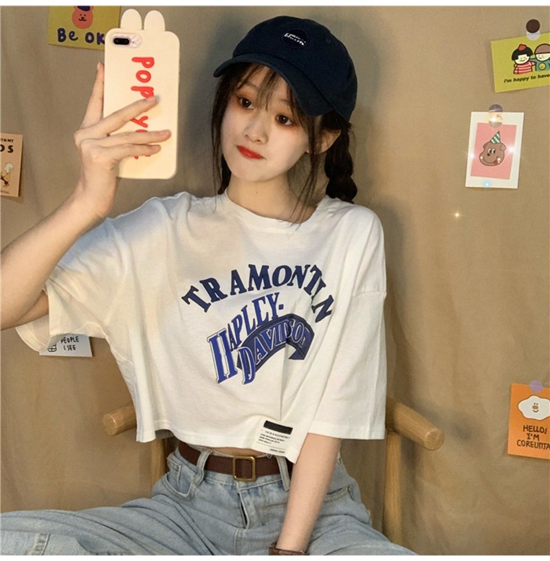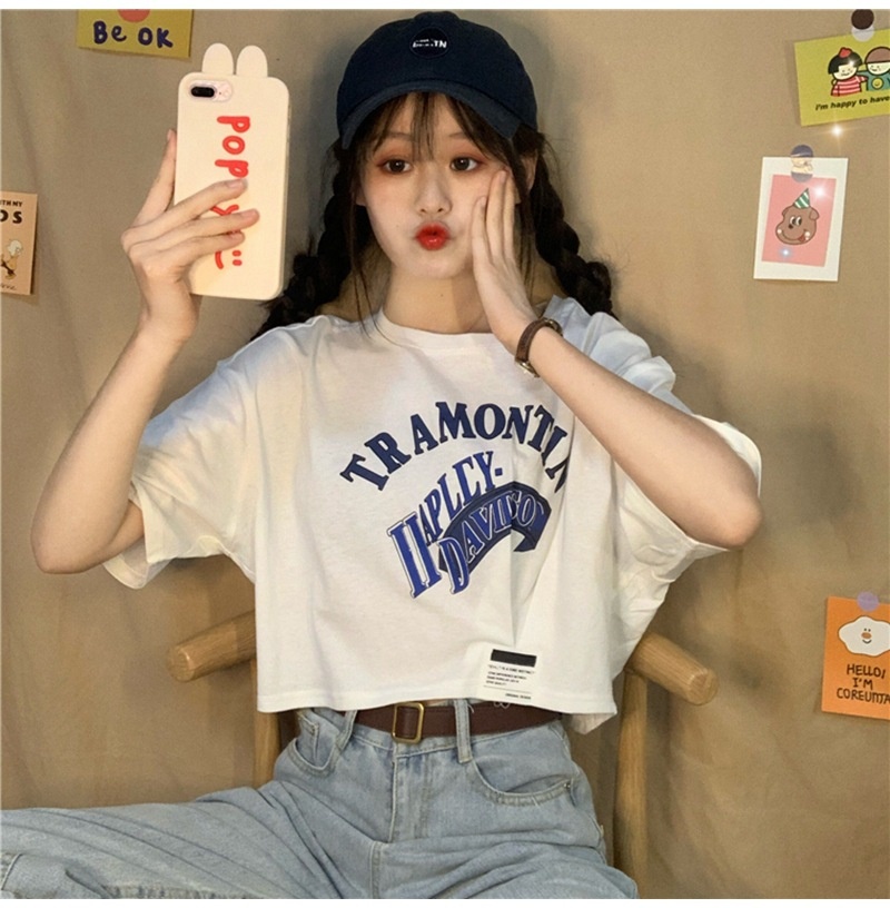 设计感小众短袖t恤女夏季2025年新款宽松甜酷辣妹风短款上衣ins潮