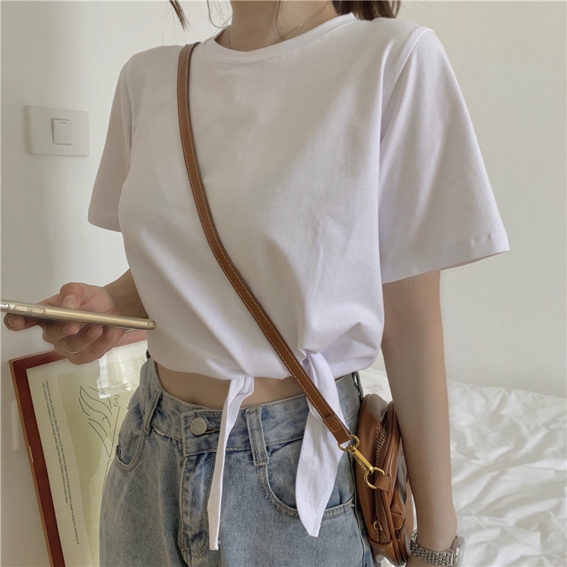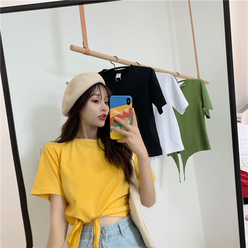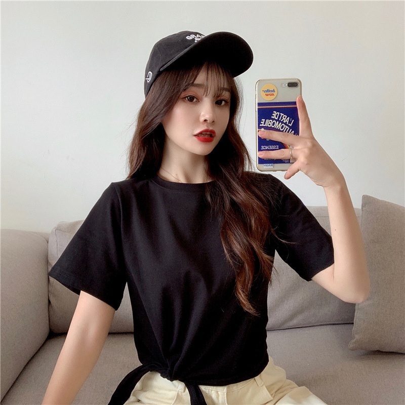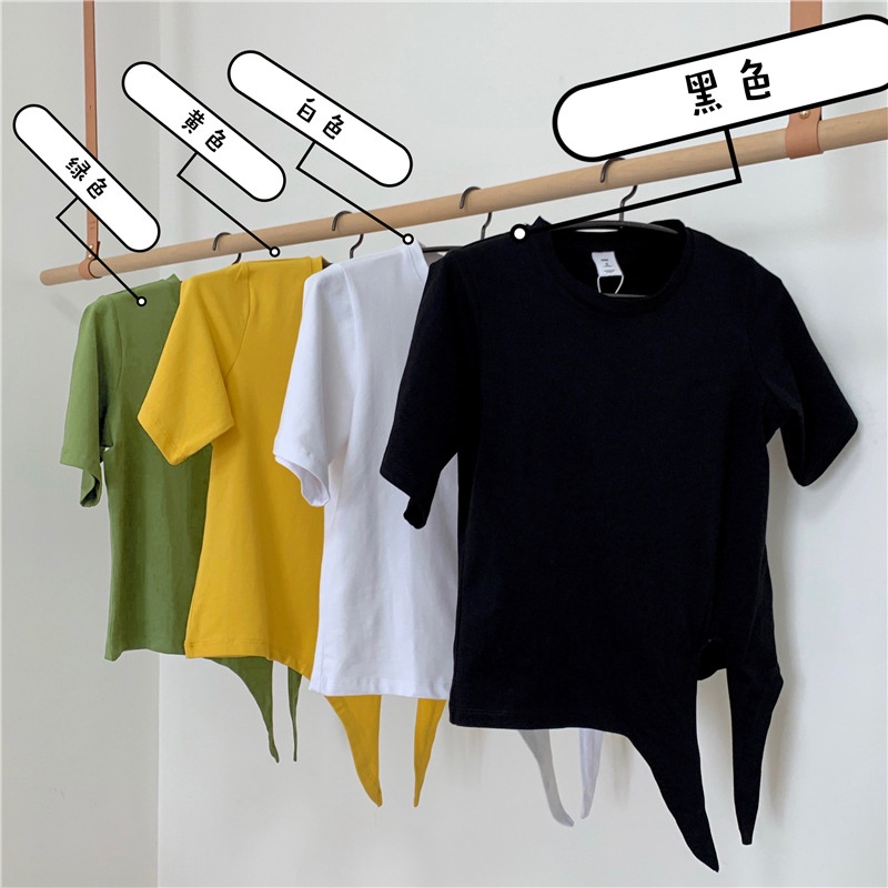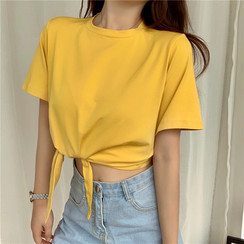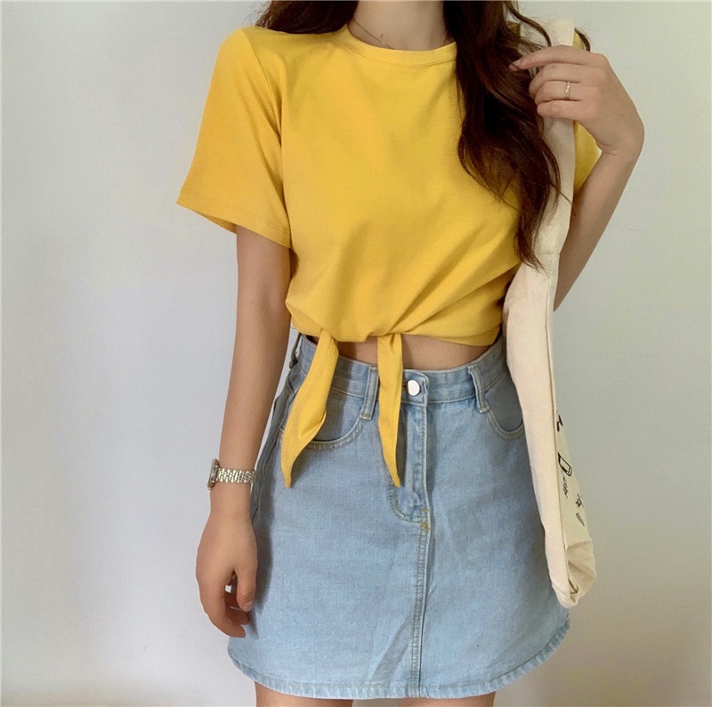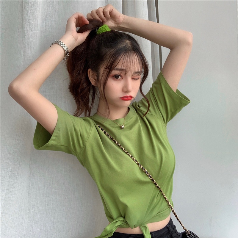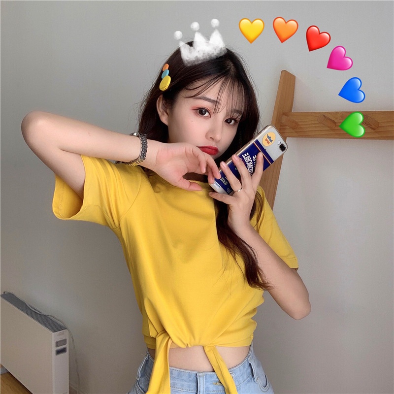 2025夏季新款韩版时尚高腰短款泫雅风短袖纯色小心机设计感T恤女
