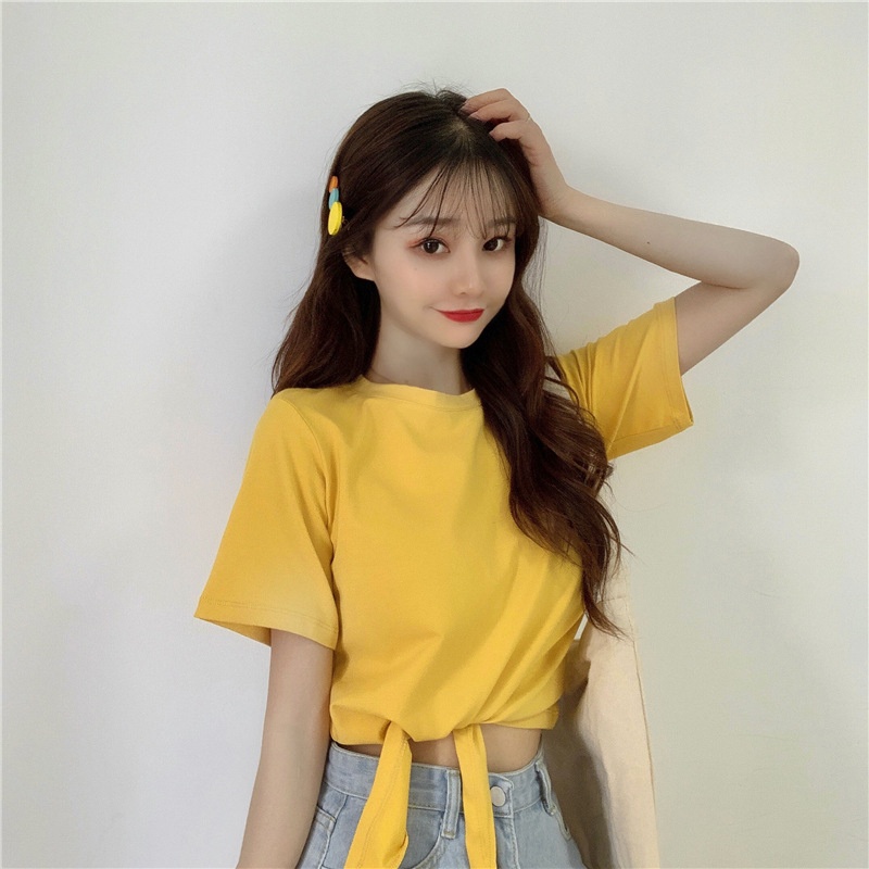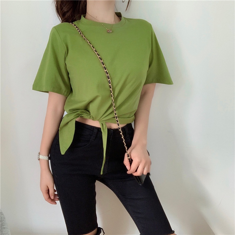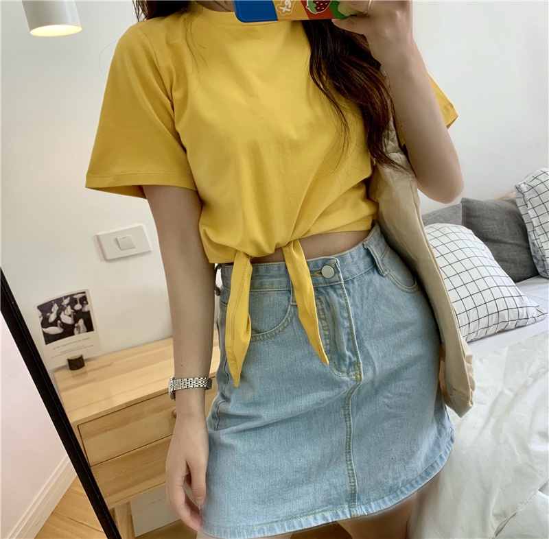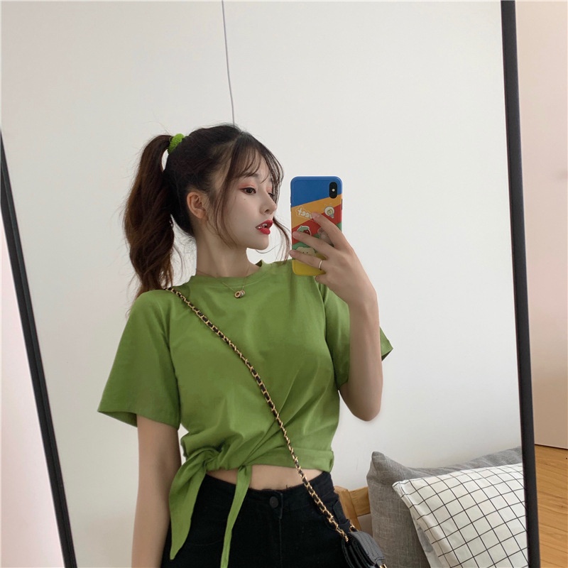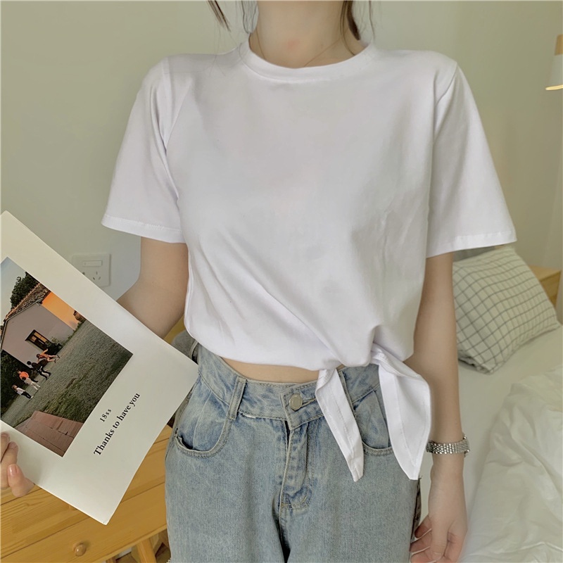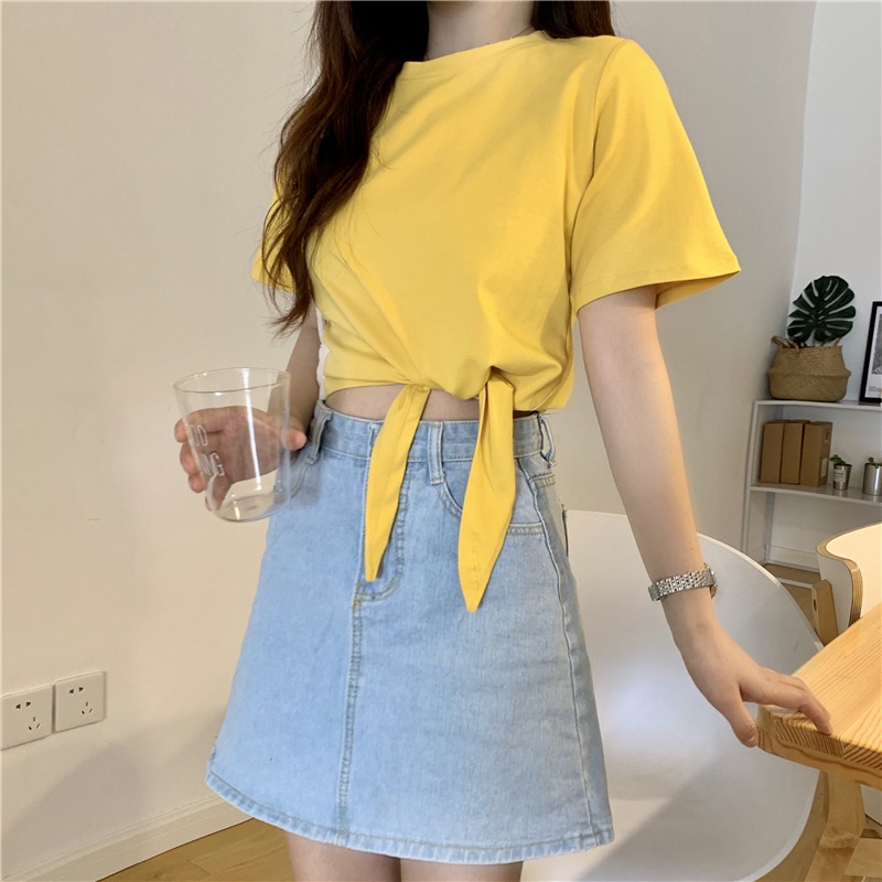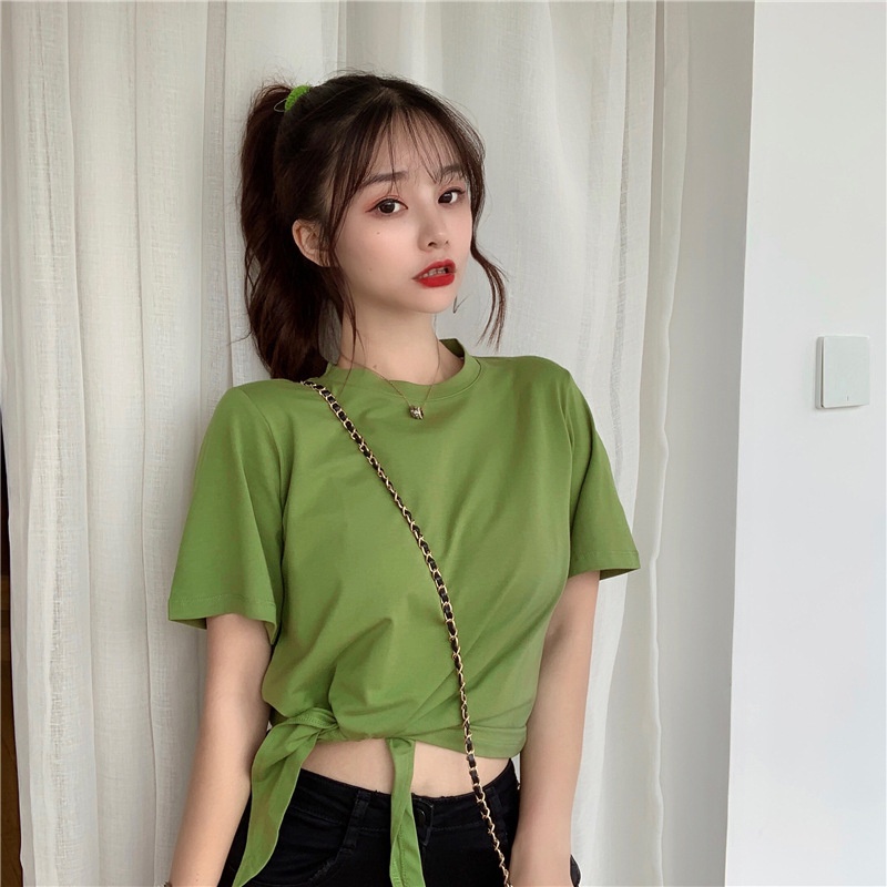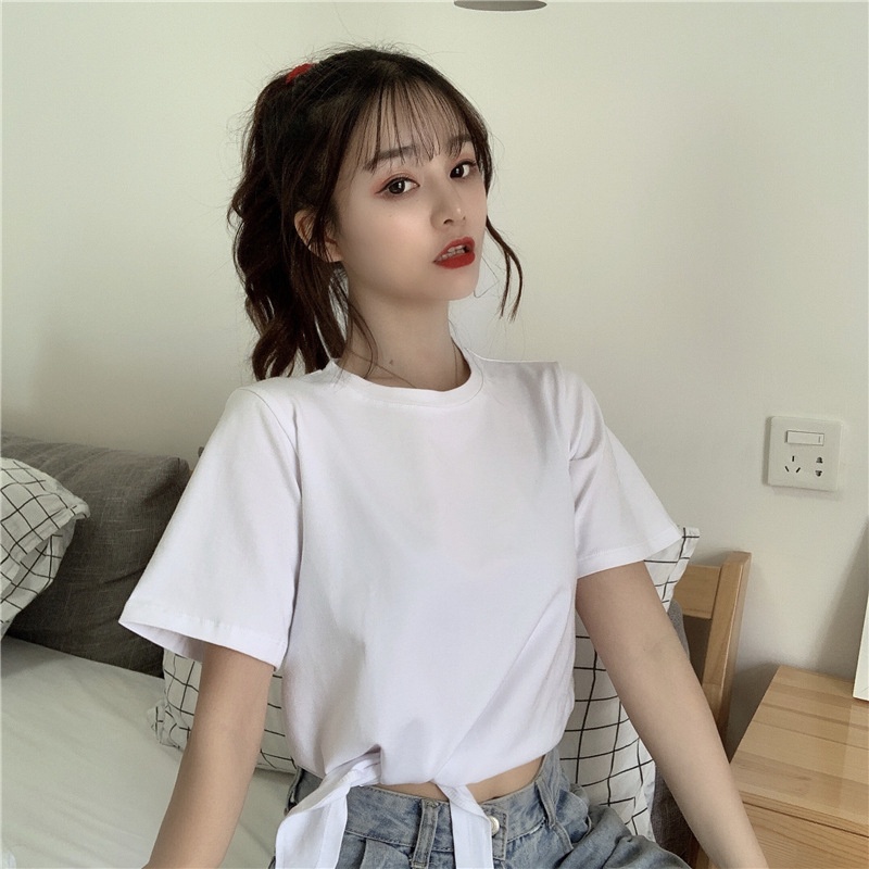 2025夏季新款韩版时尚高腰短款泫雅风短袖纯色小心机设计感T恤女