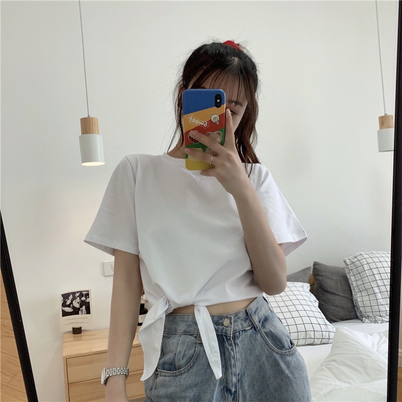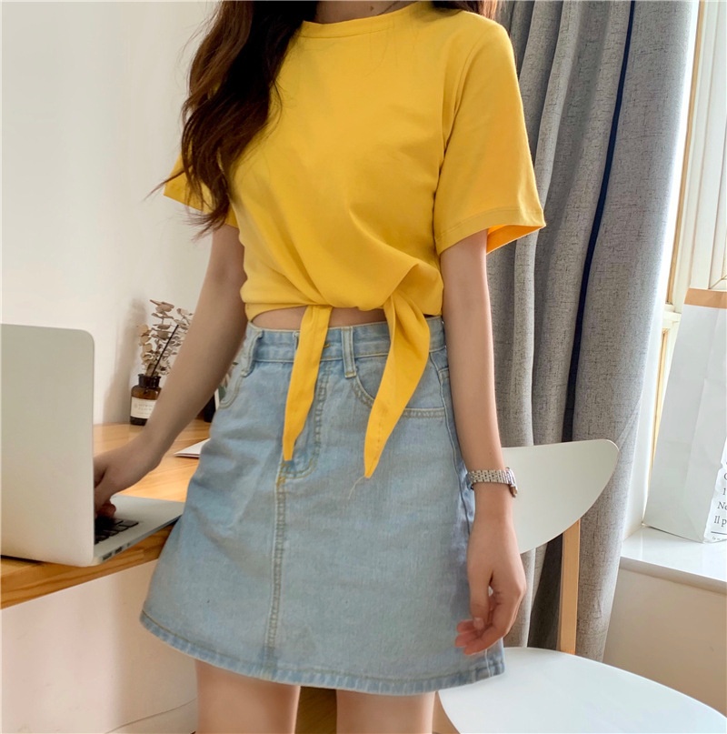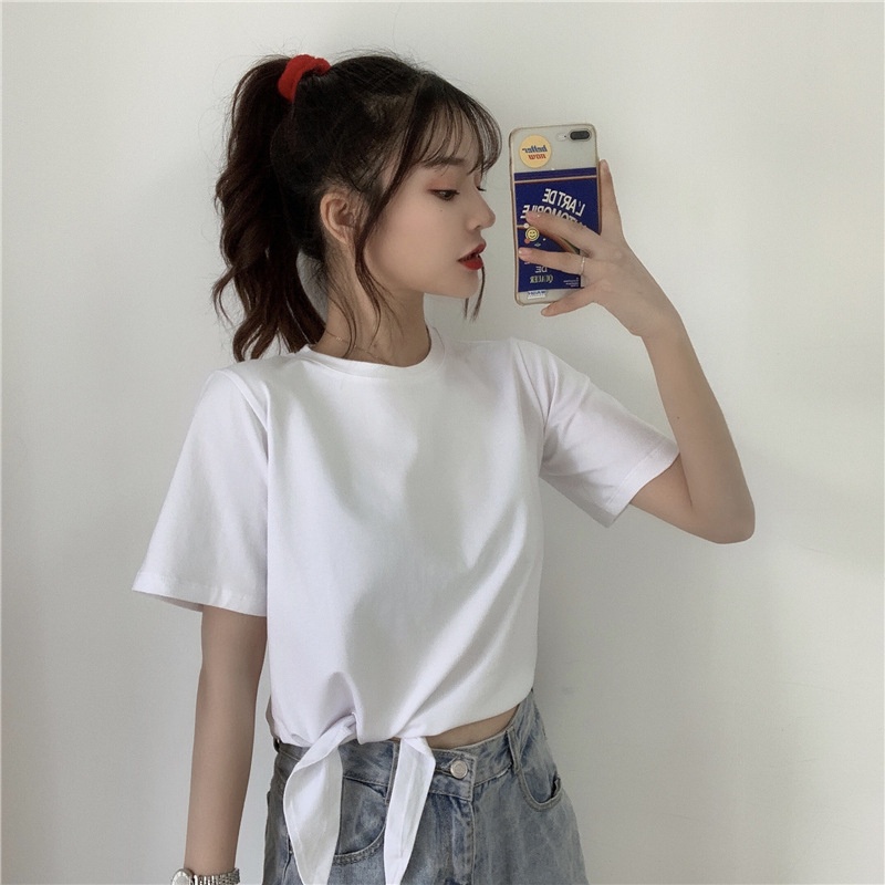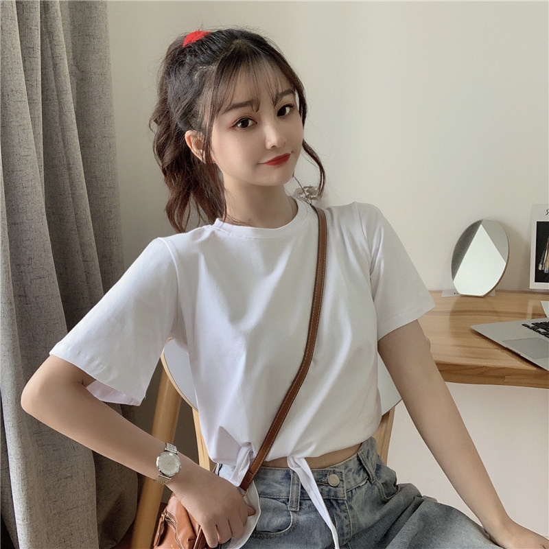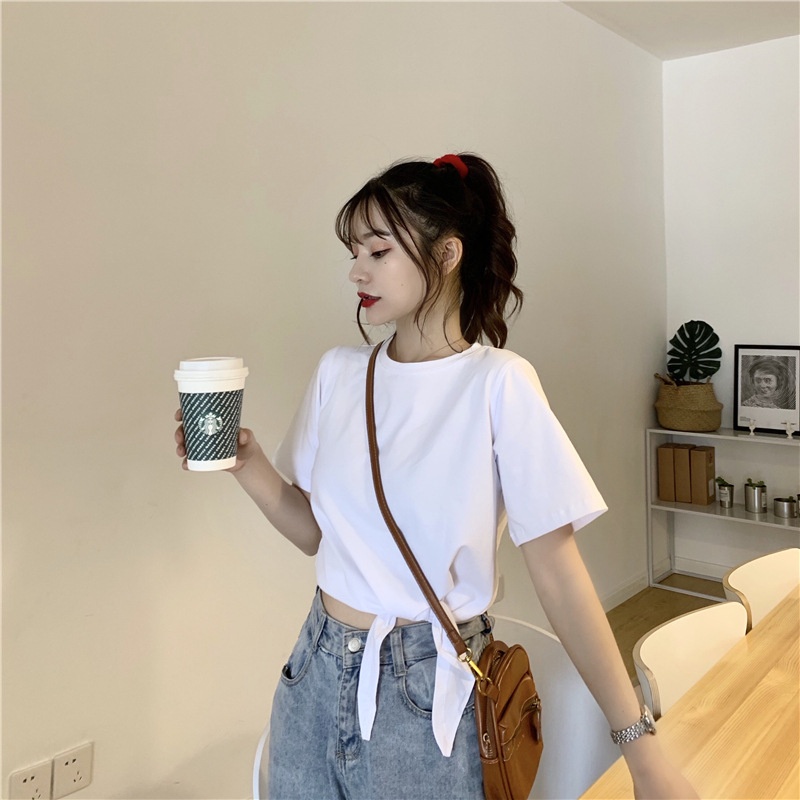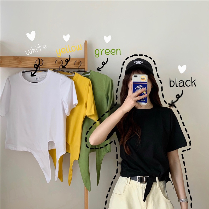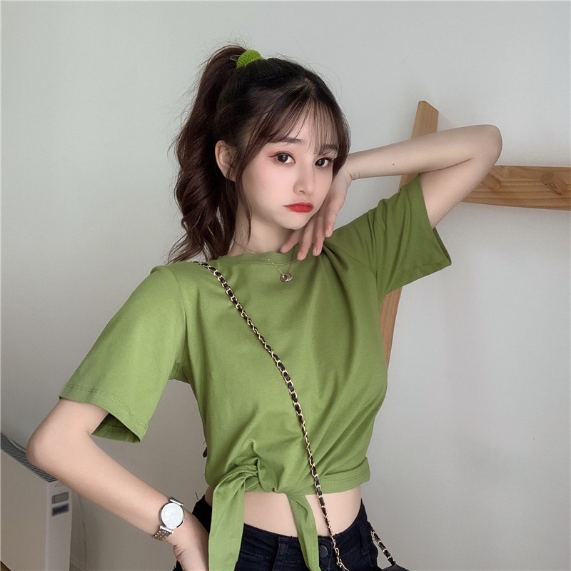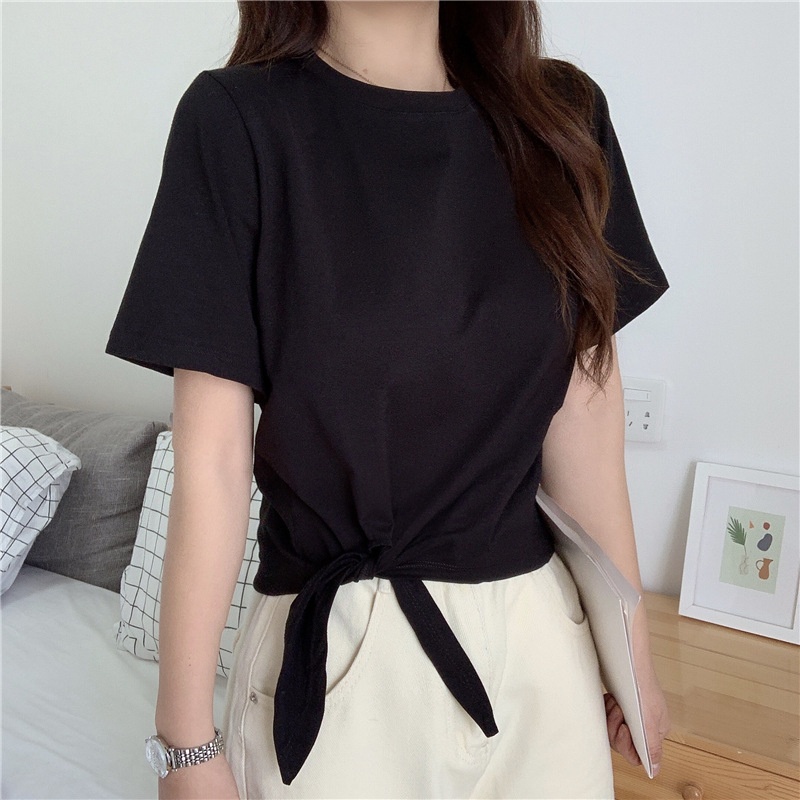 2025夏季新款韩版时尚高腰短款泫雅风短袖纯色小心机设计感T恤女