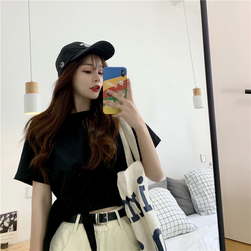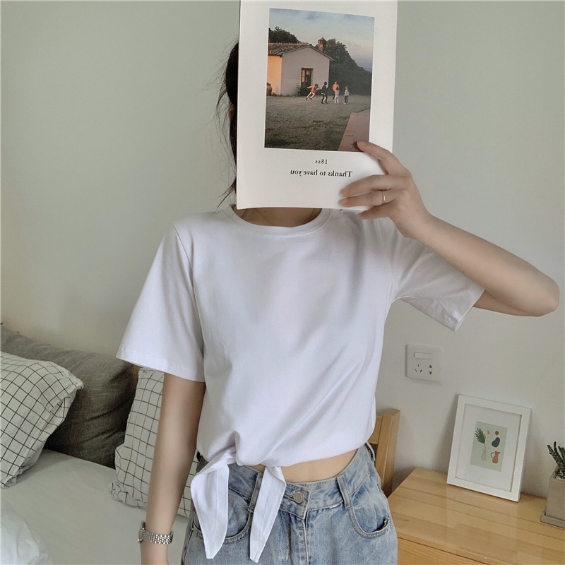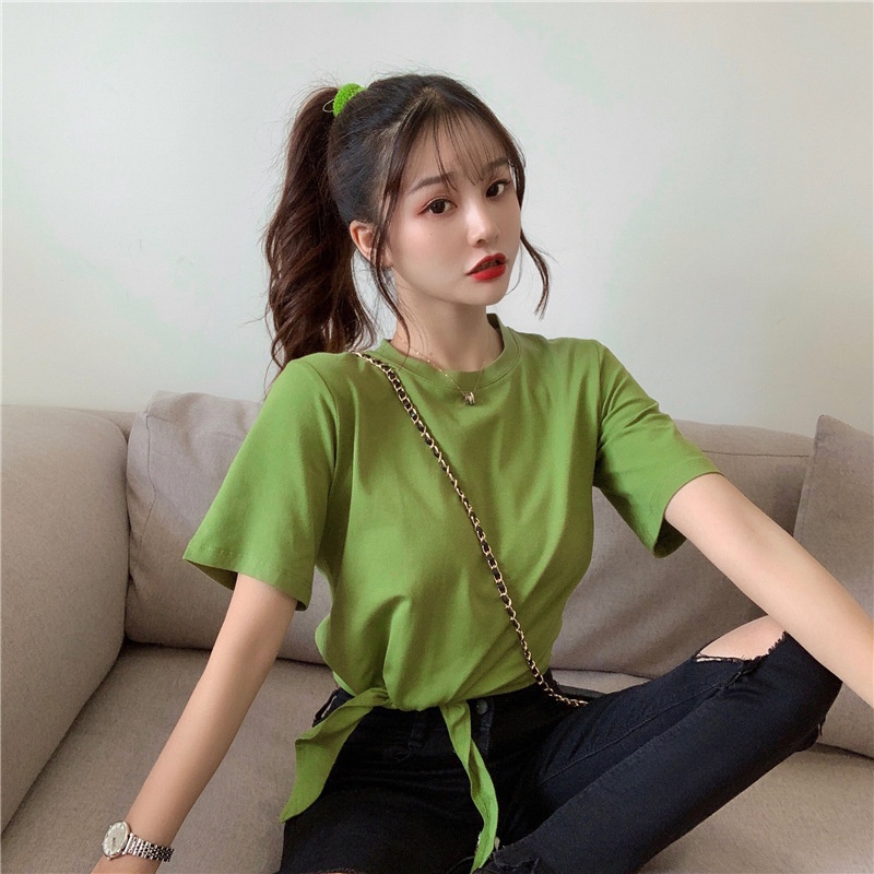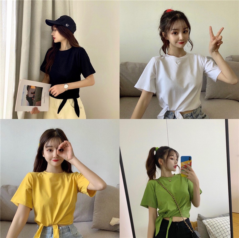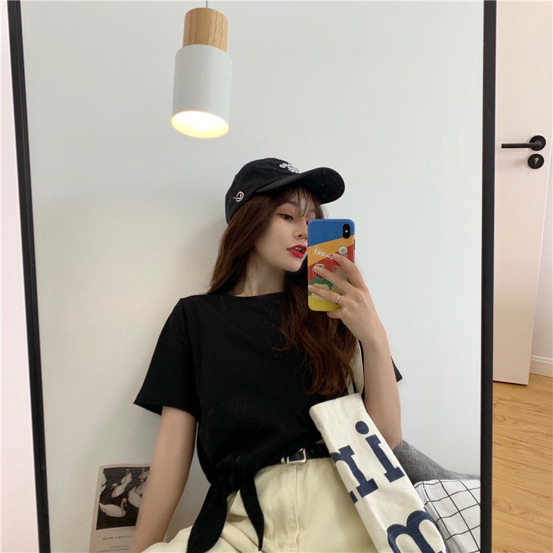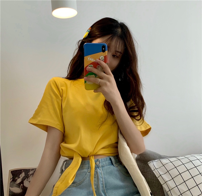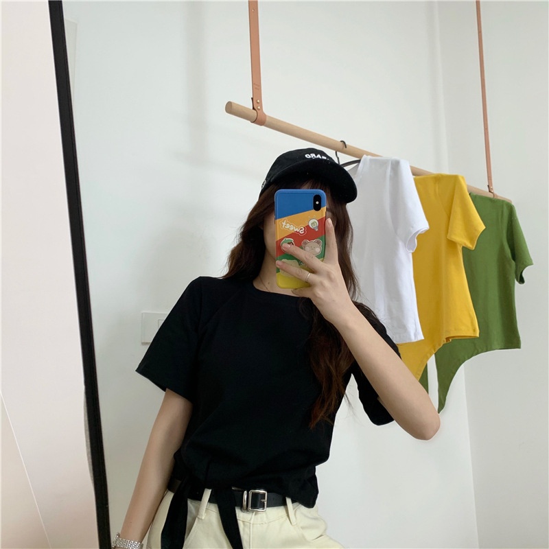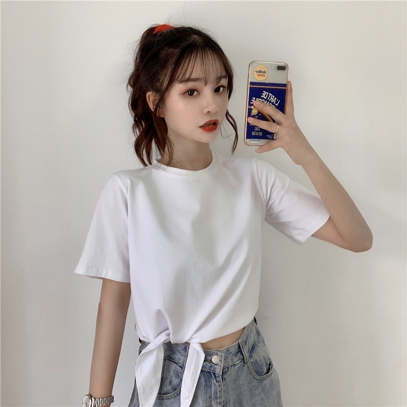 2025夏季新款韩版时尚高腰短款泫雅风短袖纯色小心机设计感T恤女