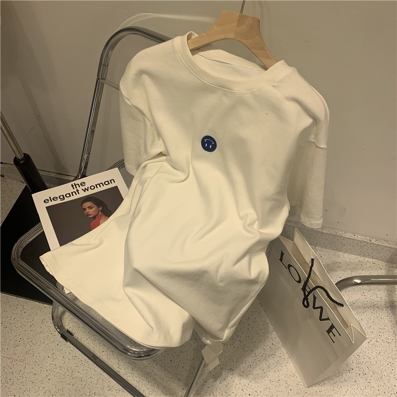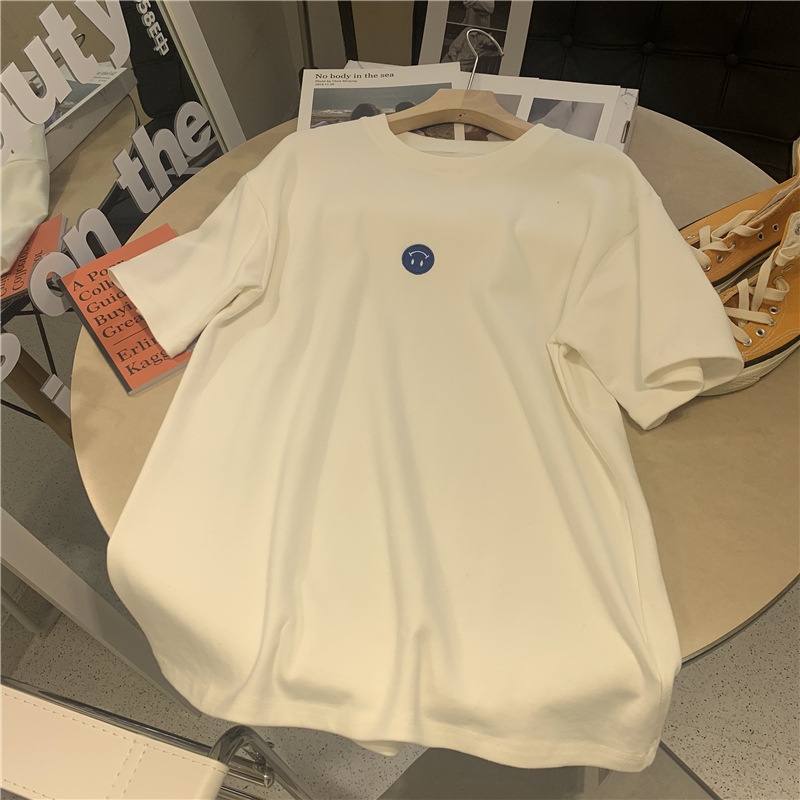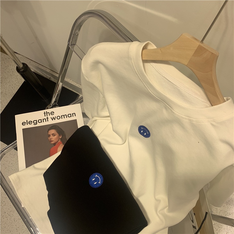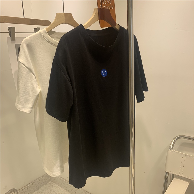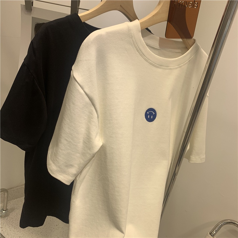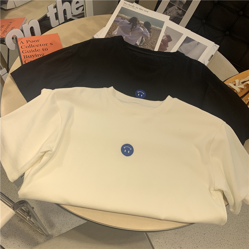 短袖t恤女2025夏装新款韩版ins潮笑脸刺绣宽松百搭内搭学生上衣女