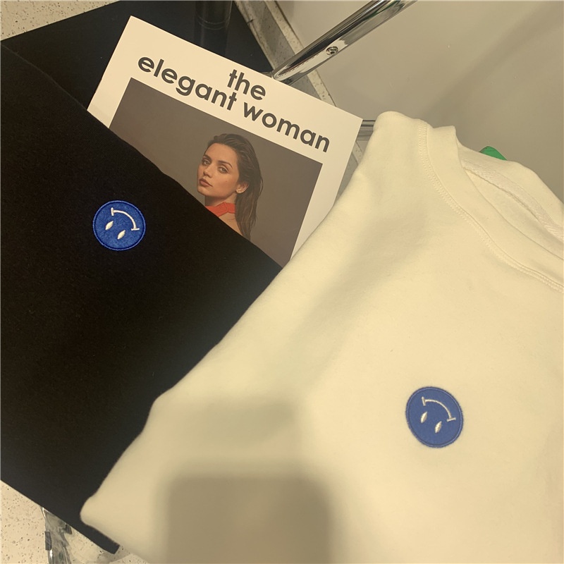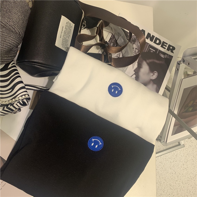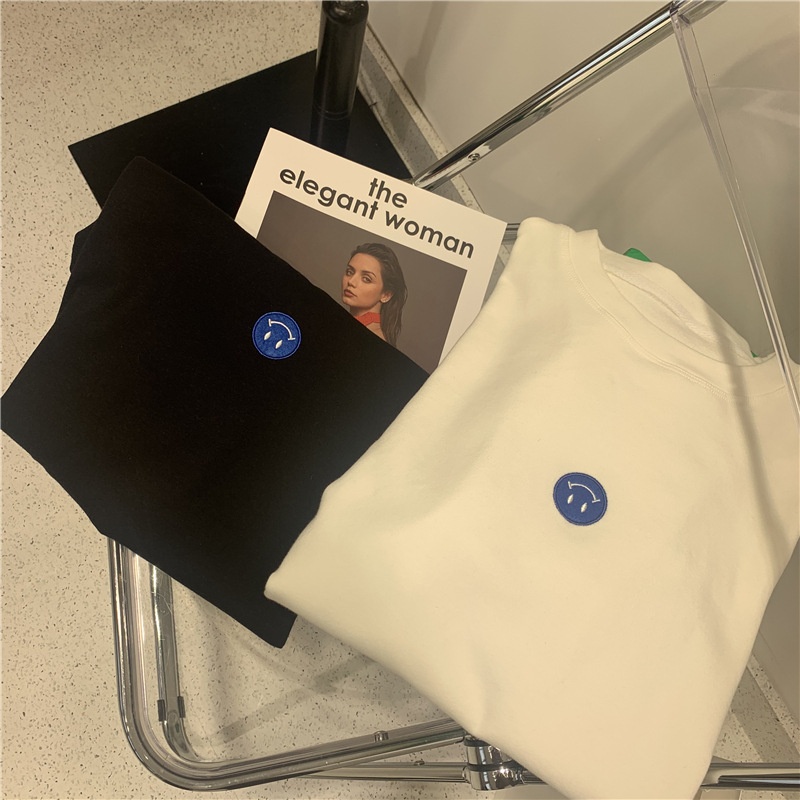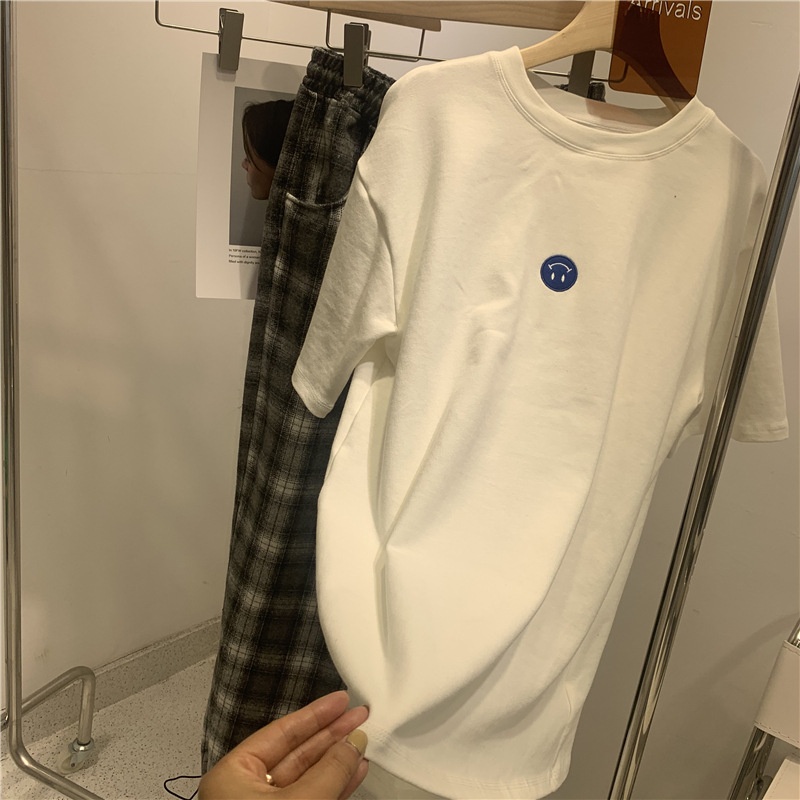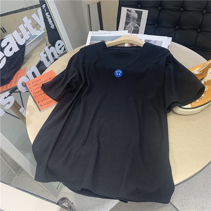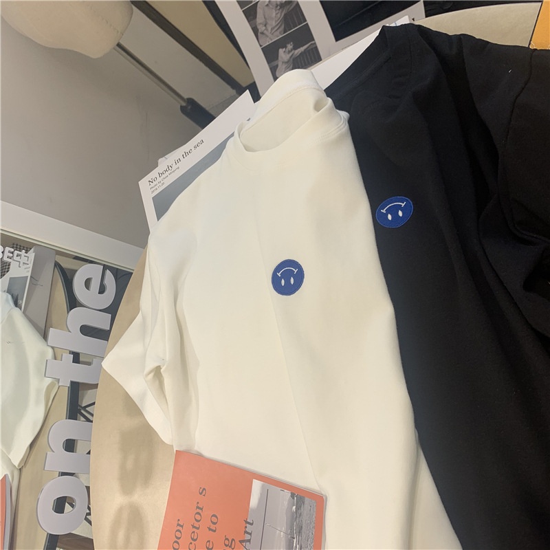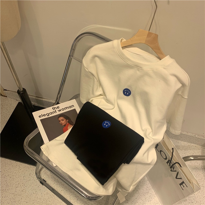 短袖t恤女2025夏装新款韩版ins潮笑脸刺绣宽松百搭内搭学生上衣女
