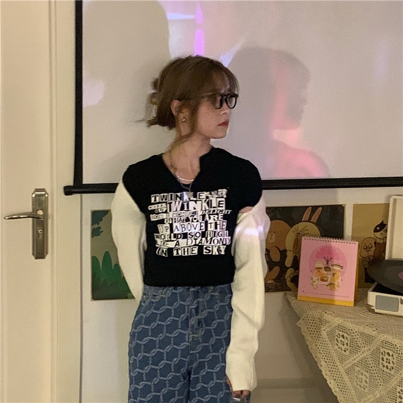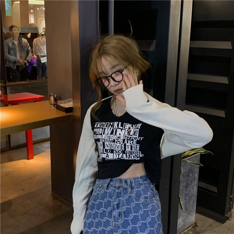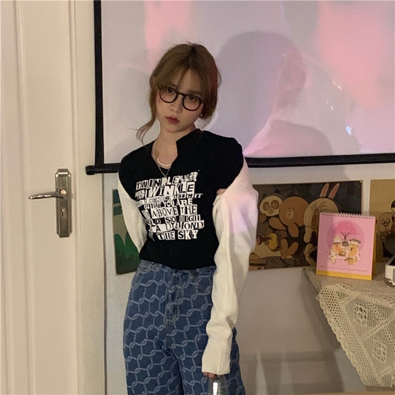 韩版网红辣妹穿搭上衣马甲纯欲气质小个子拼接棋盘针织背心上衣女