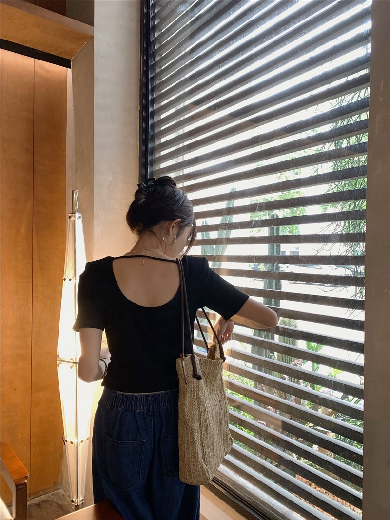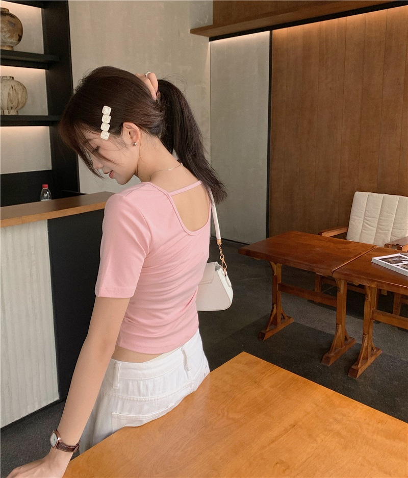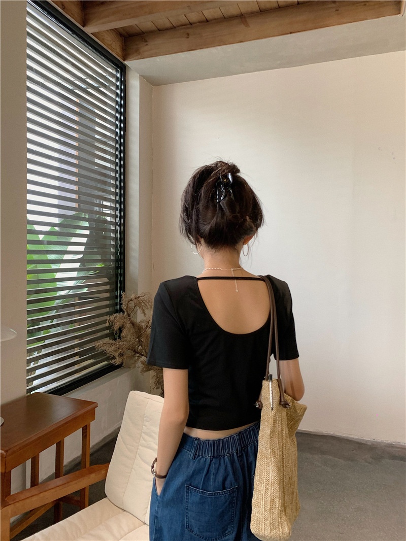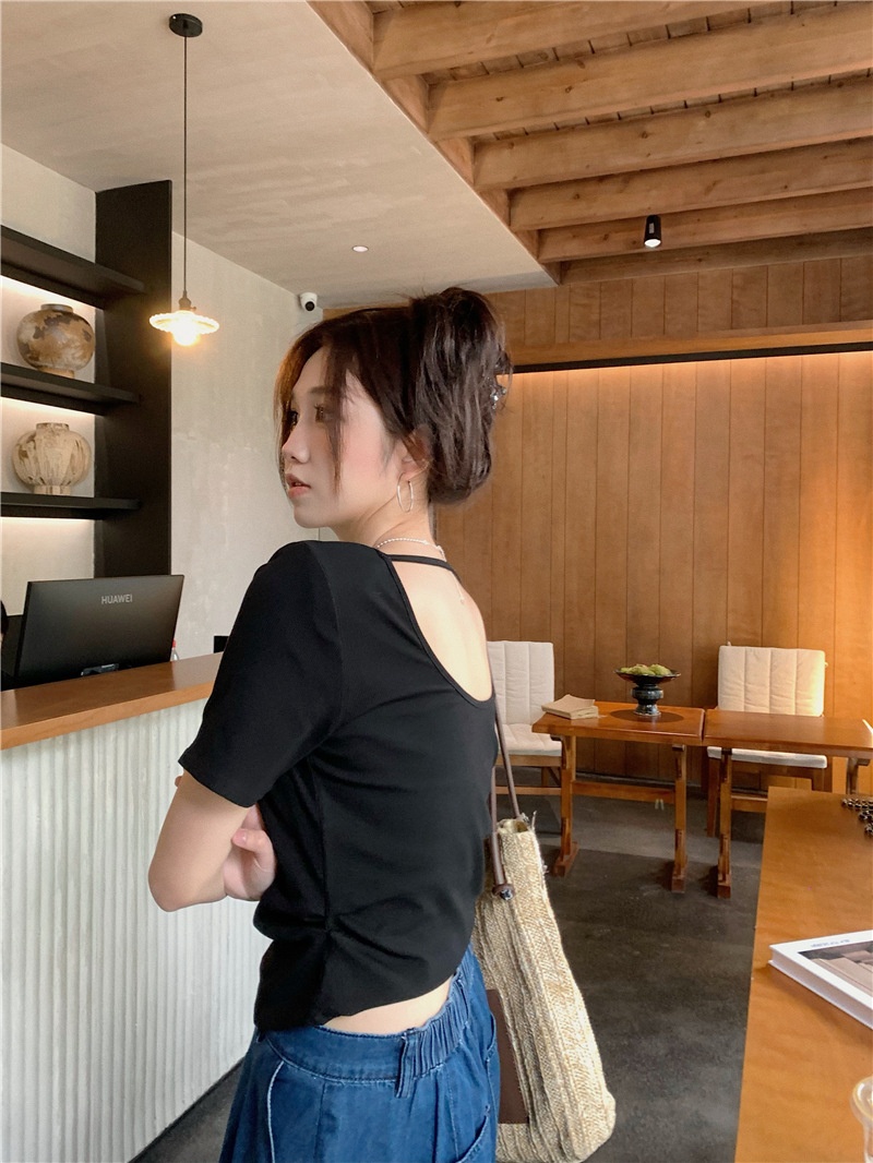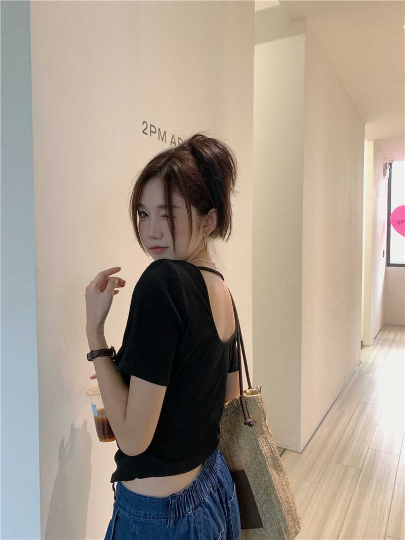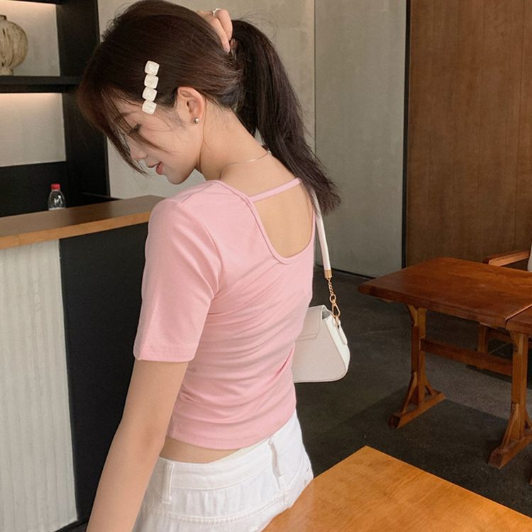 短袖T恤女夏季2025新款韩版设计感修身显瘦露背短款学生上衣ins潮