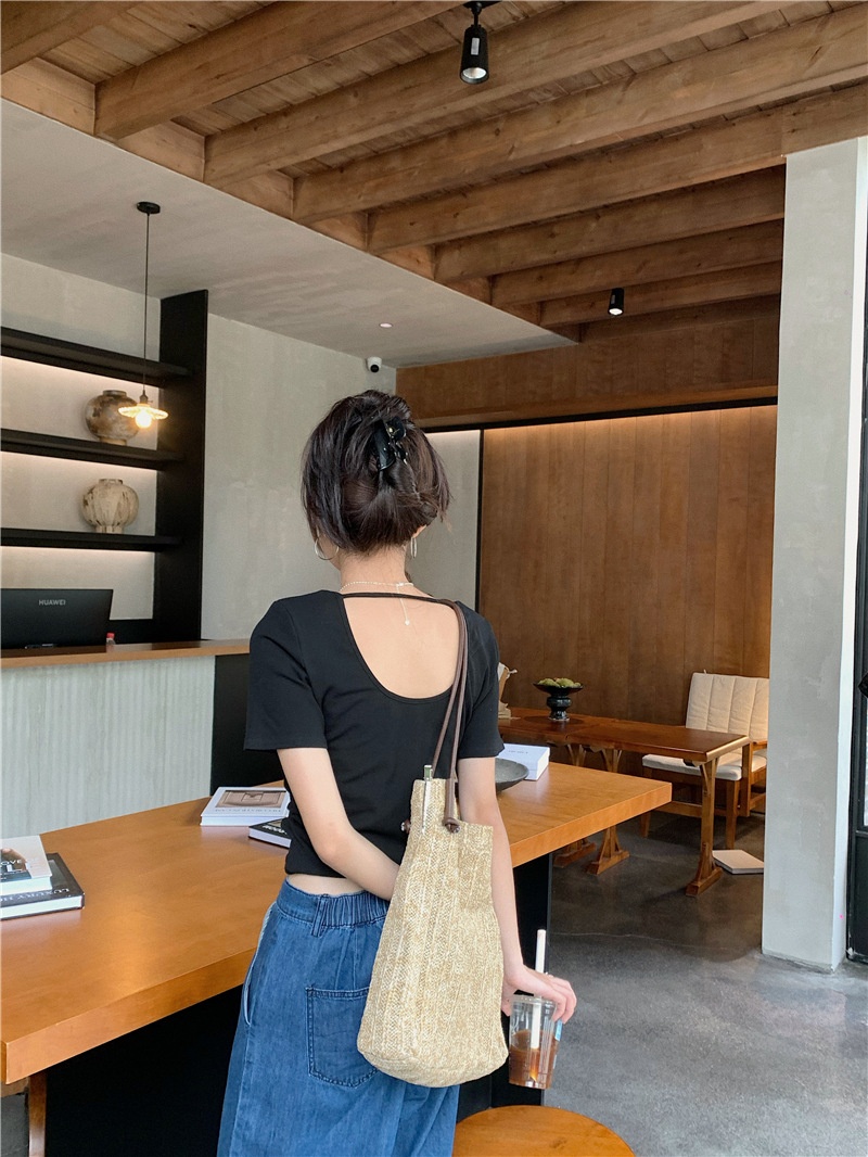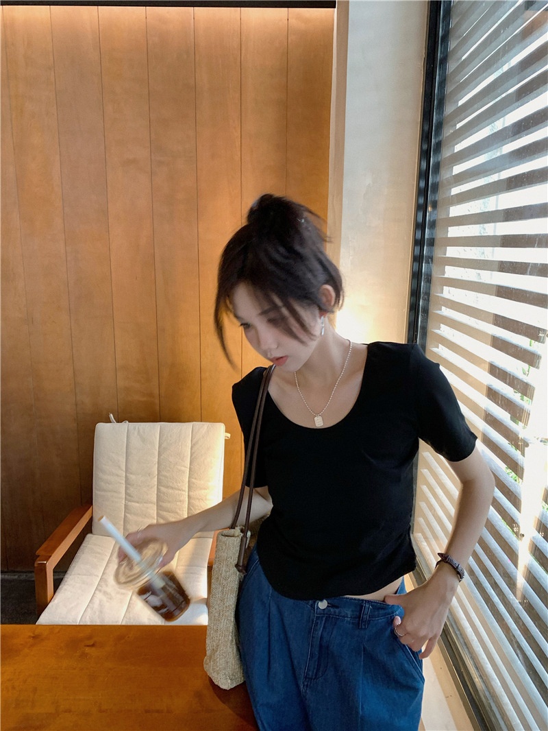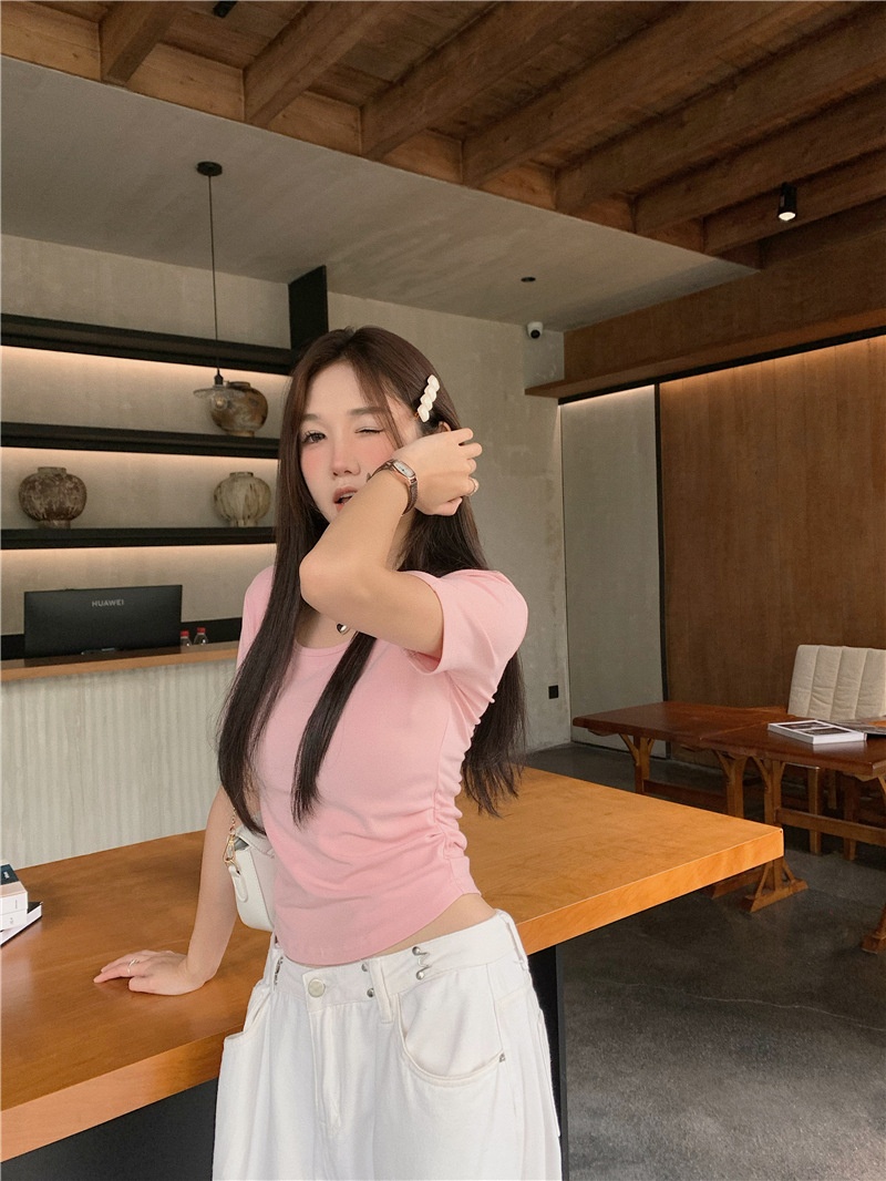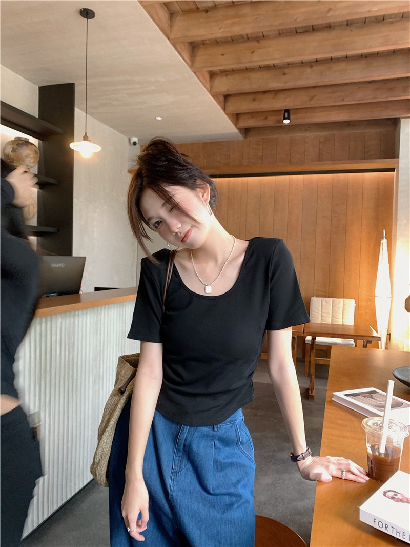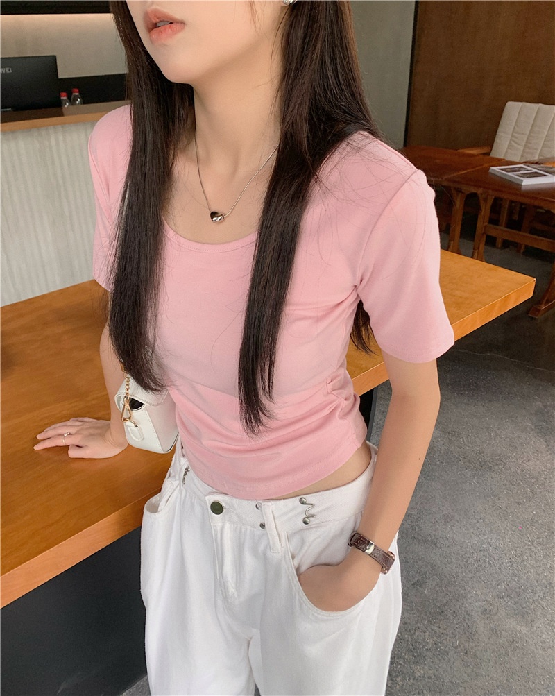 短袖T恤女夏季2025新款韩版设计感修身显瘦露背短款学生上衣ins潮
