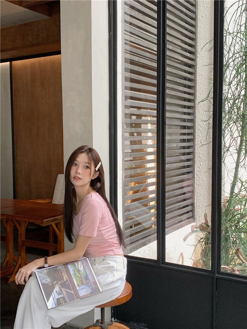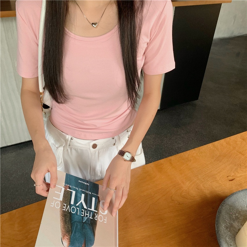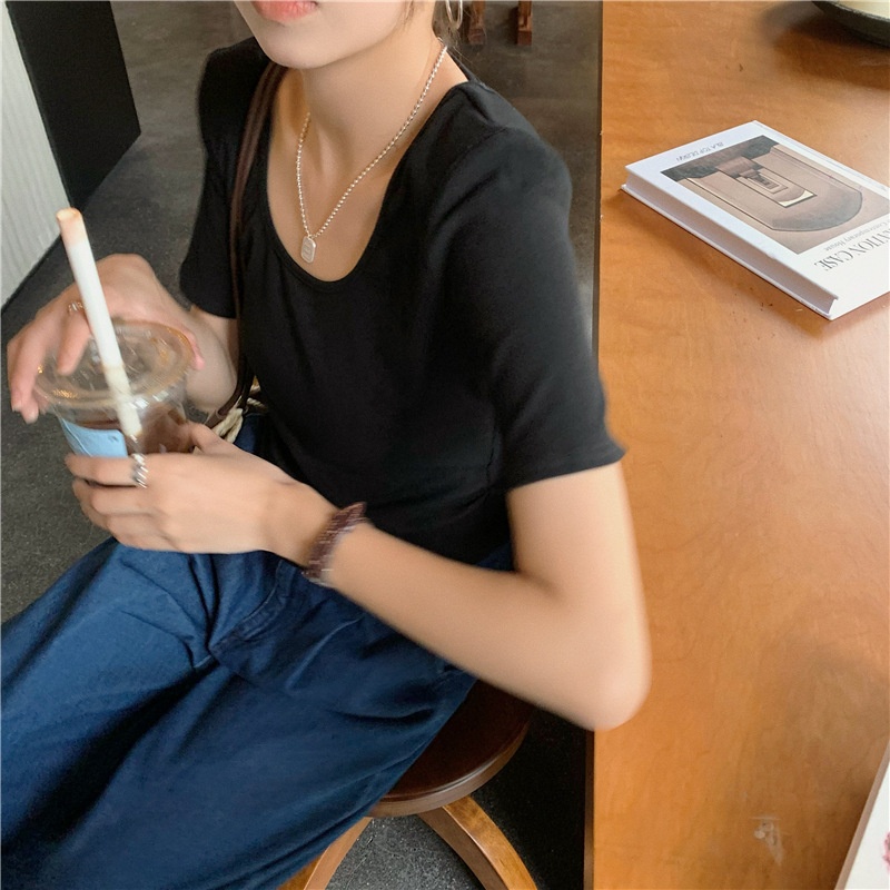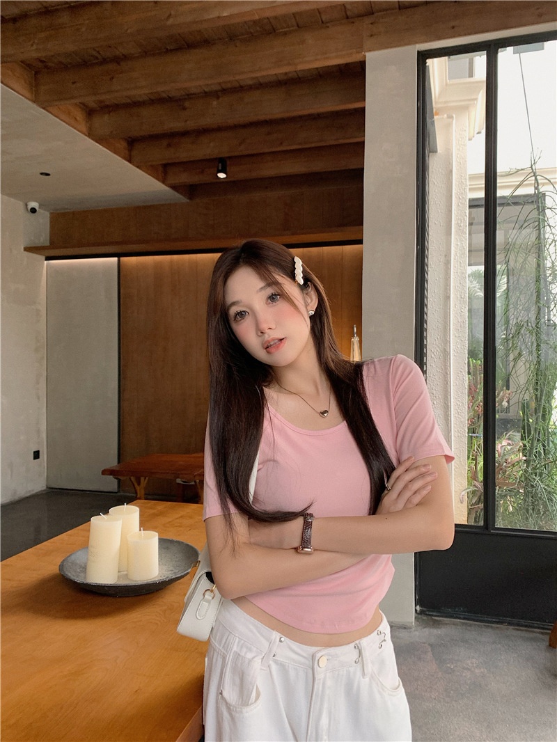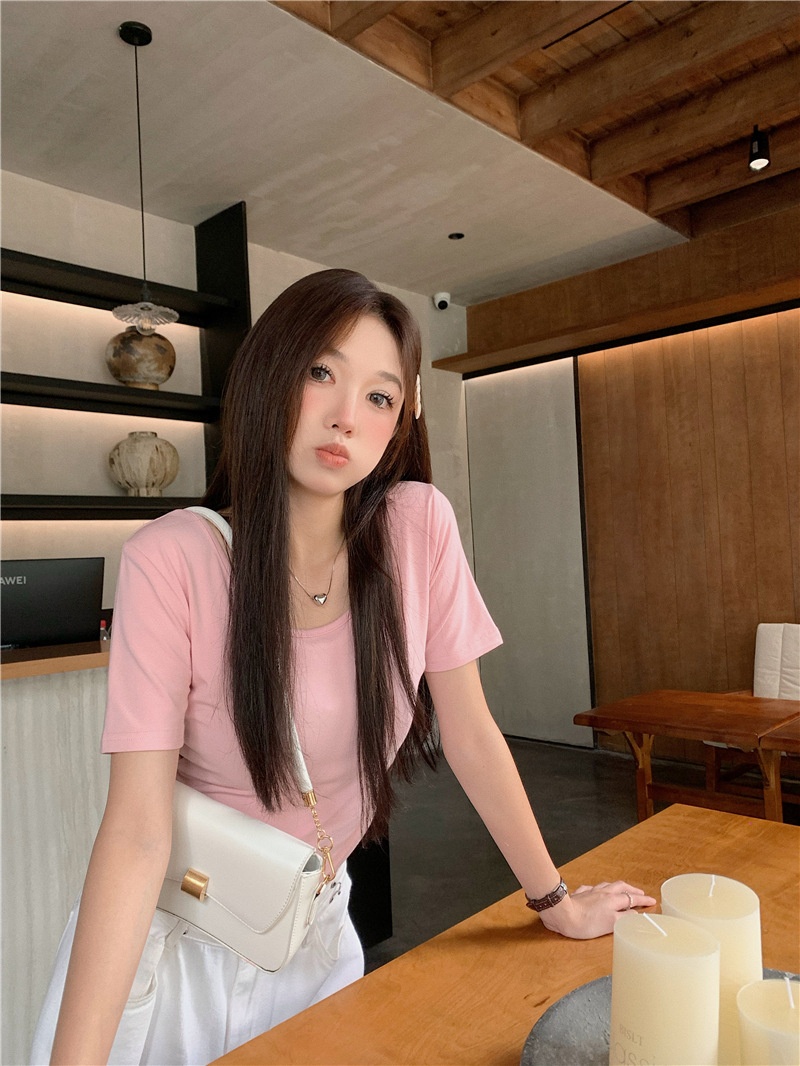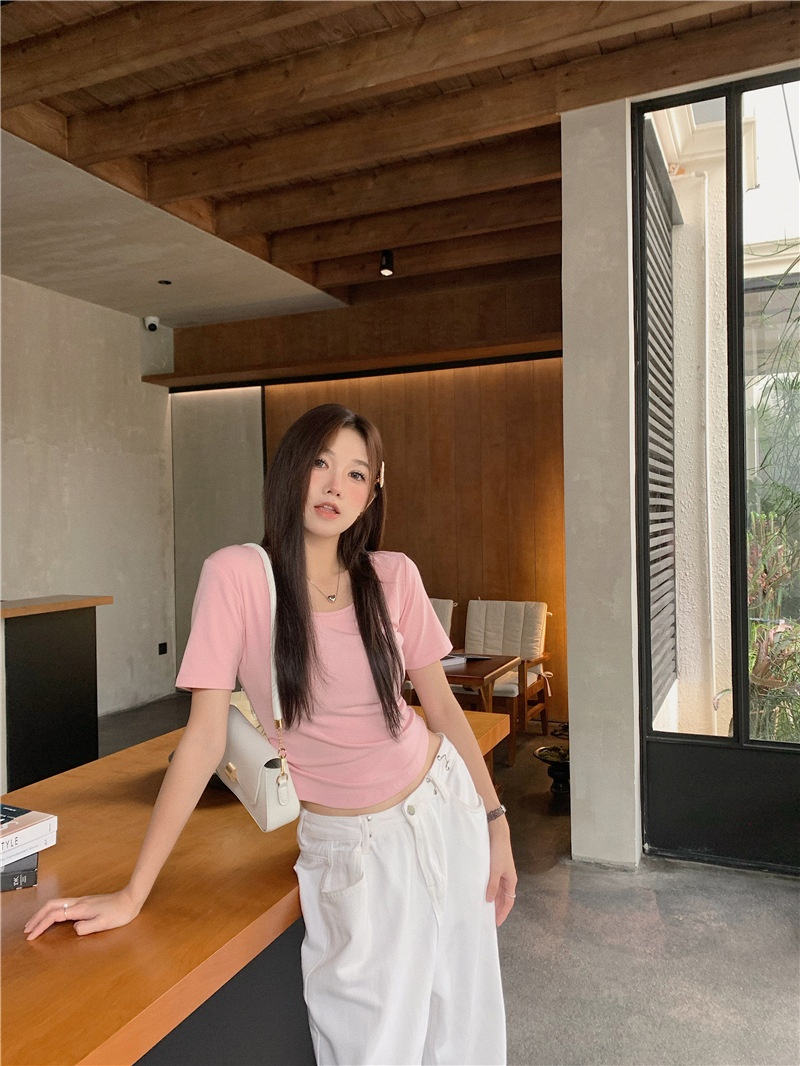 短袖T恤女夏季2025新款韩版设计感修身显瘦露背短款学生上衣ins潮