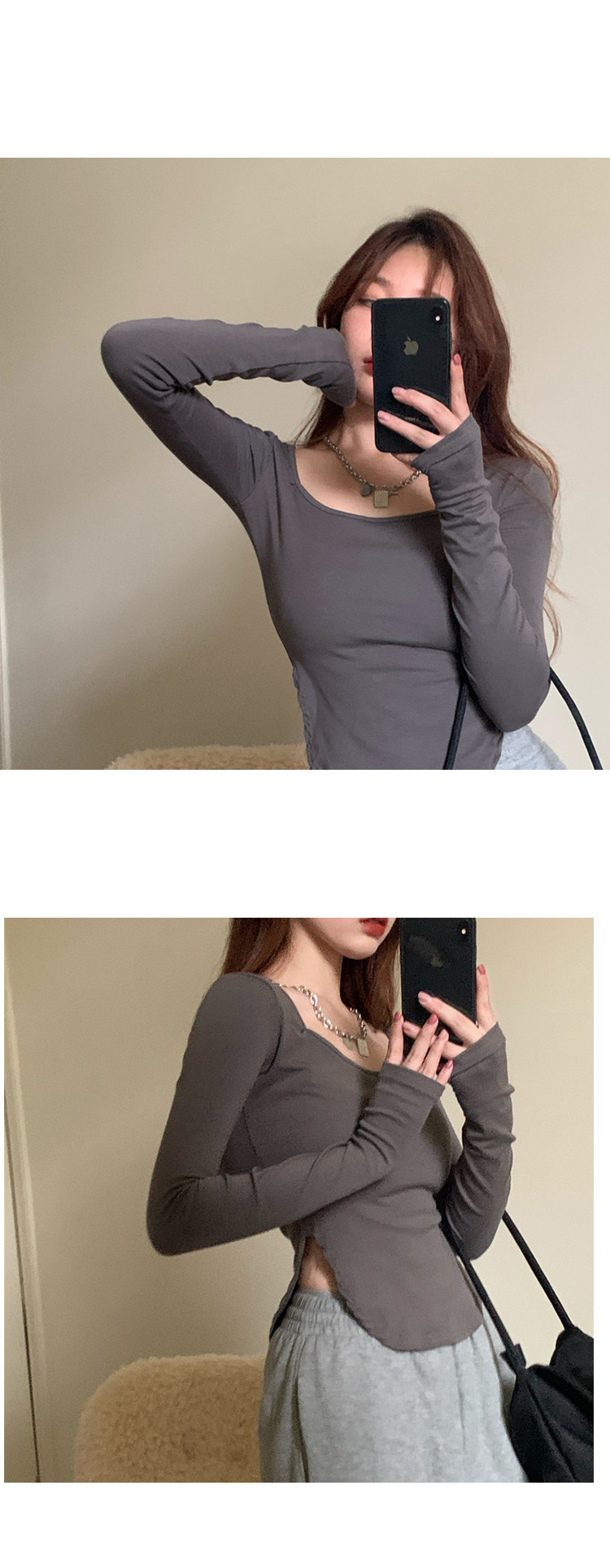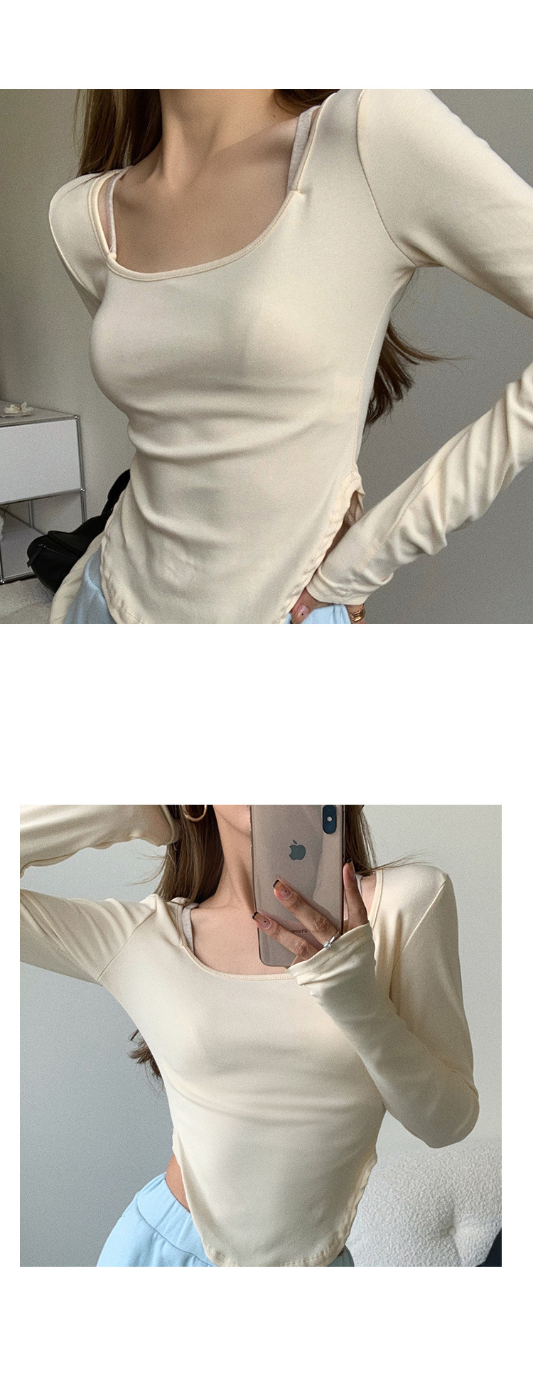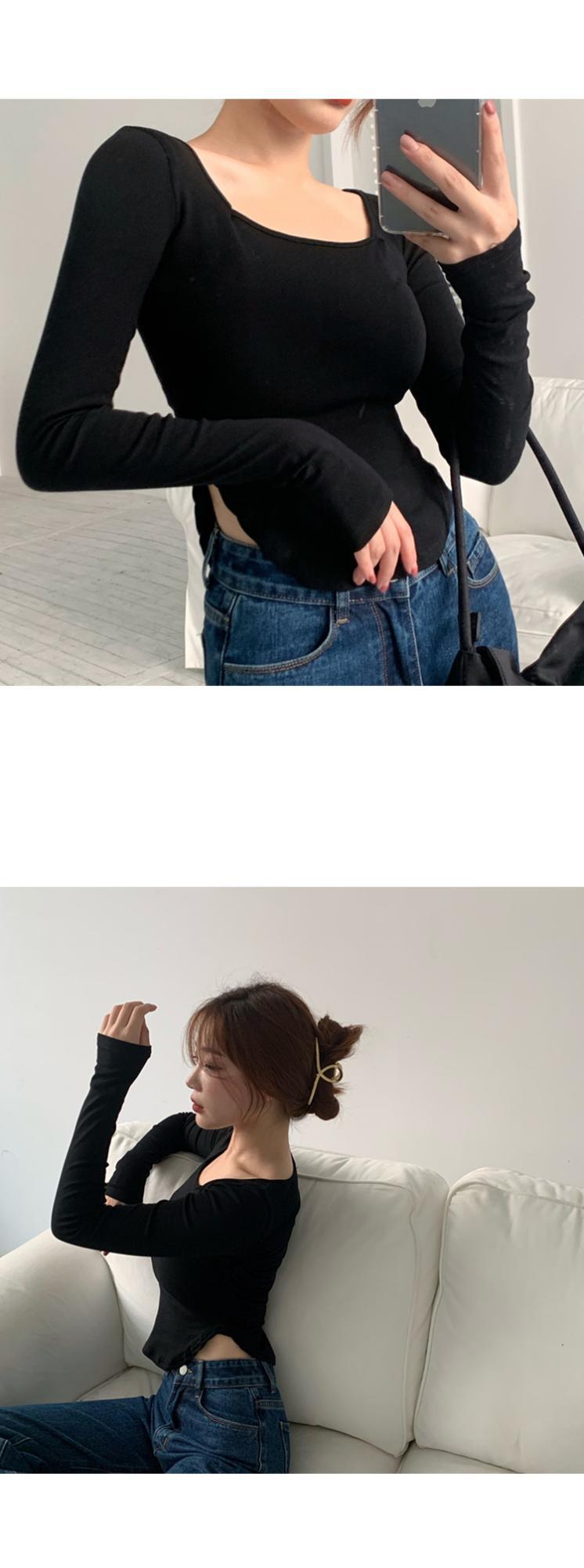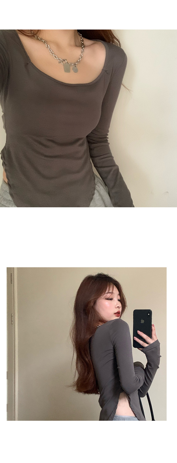 复古不规则长袖T恤女2025秋季新款气质U领修身显瘦内搭纯色上衣潮
