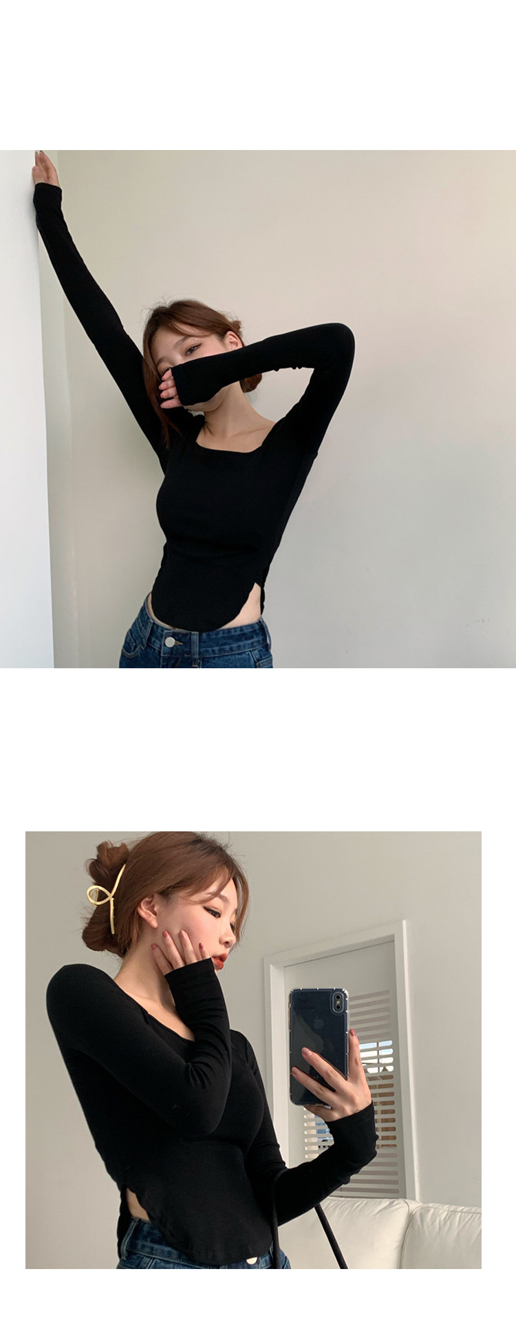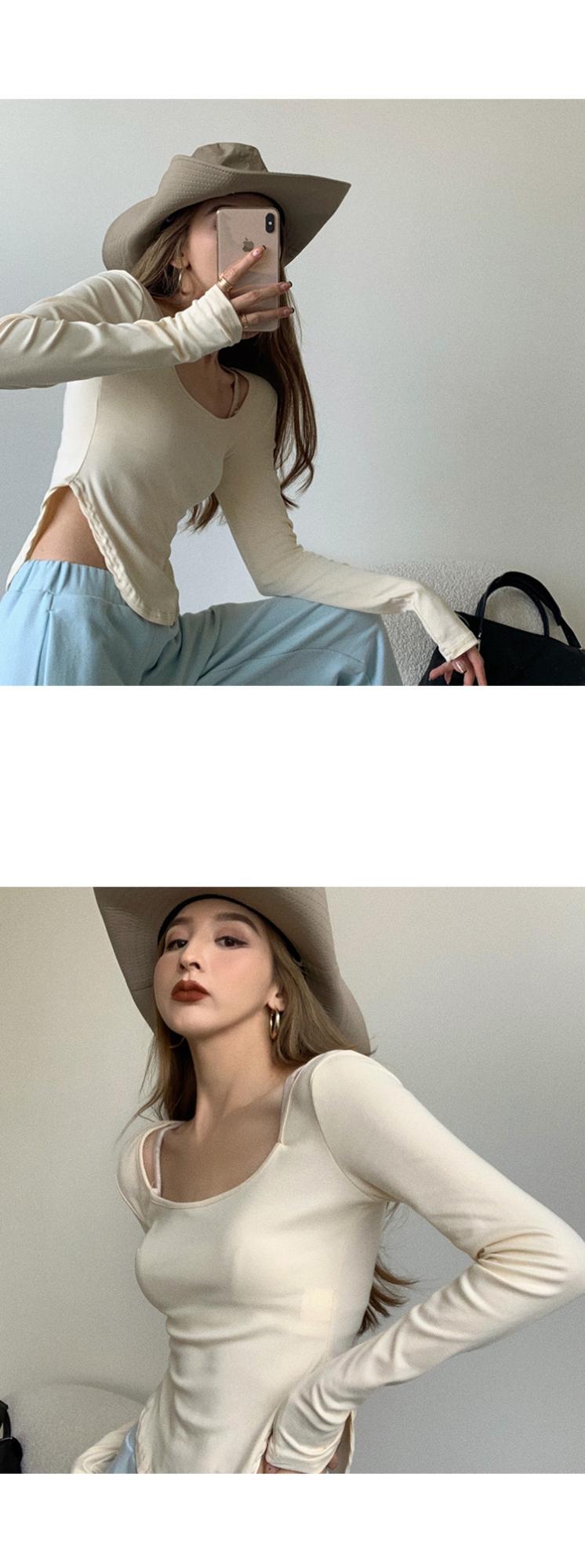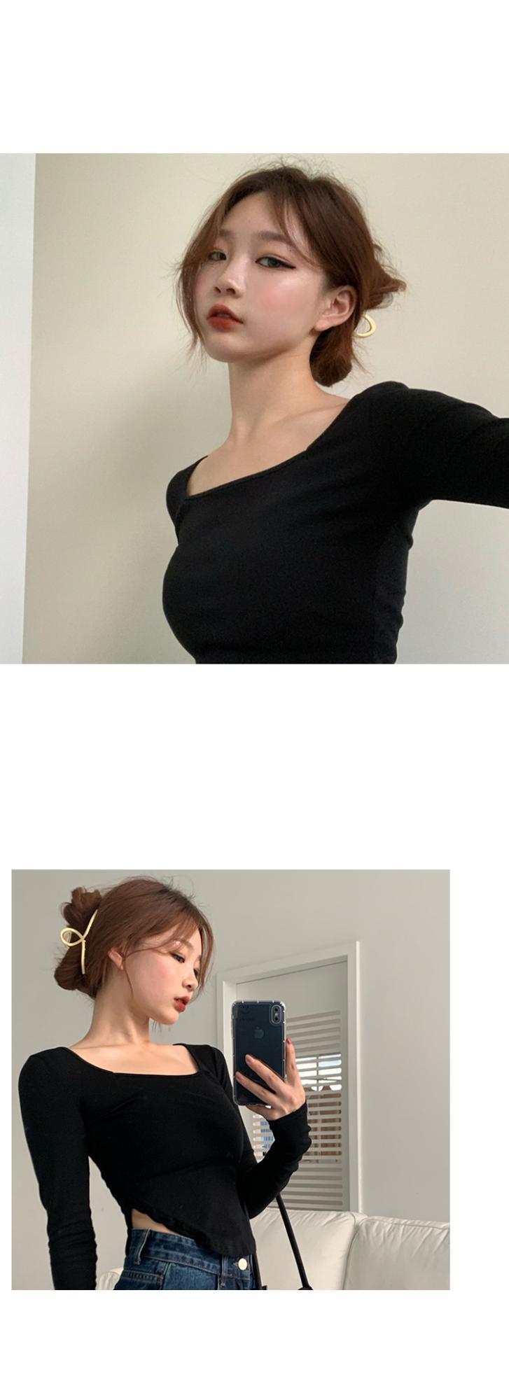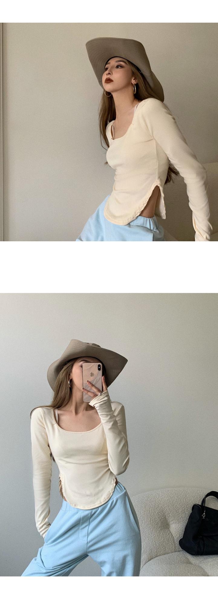 复古不规则长袖T恤女2025秋季新款气质U领修身显瘦内搭纯色上衣潮