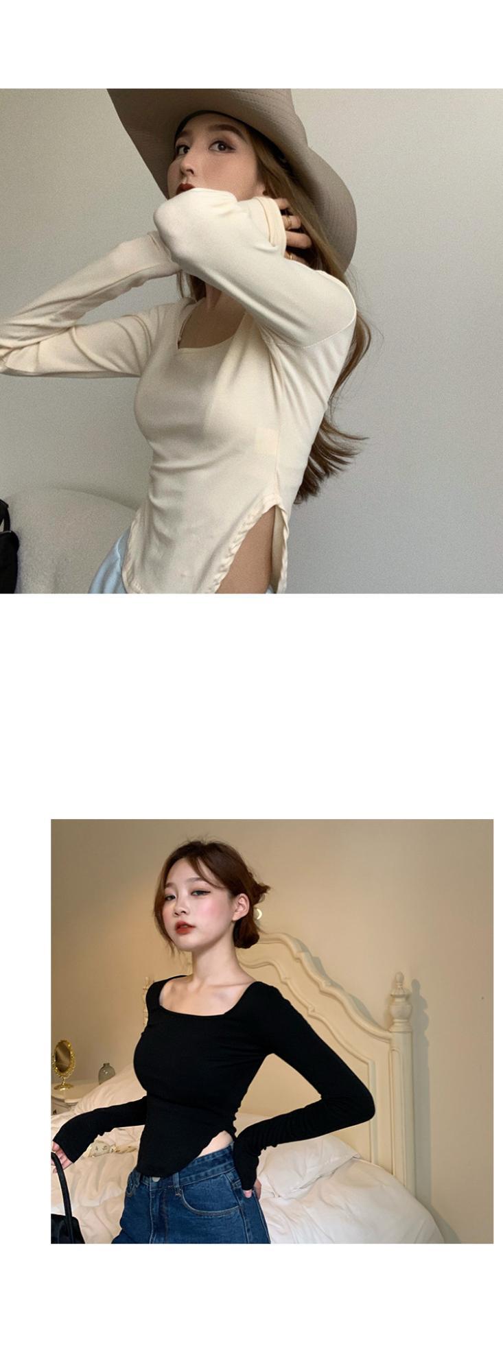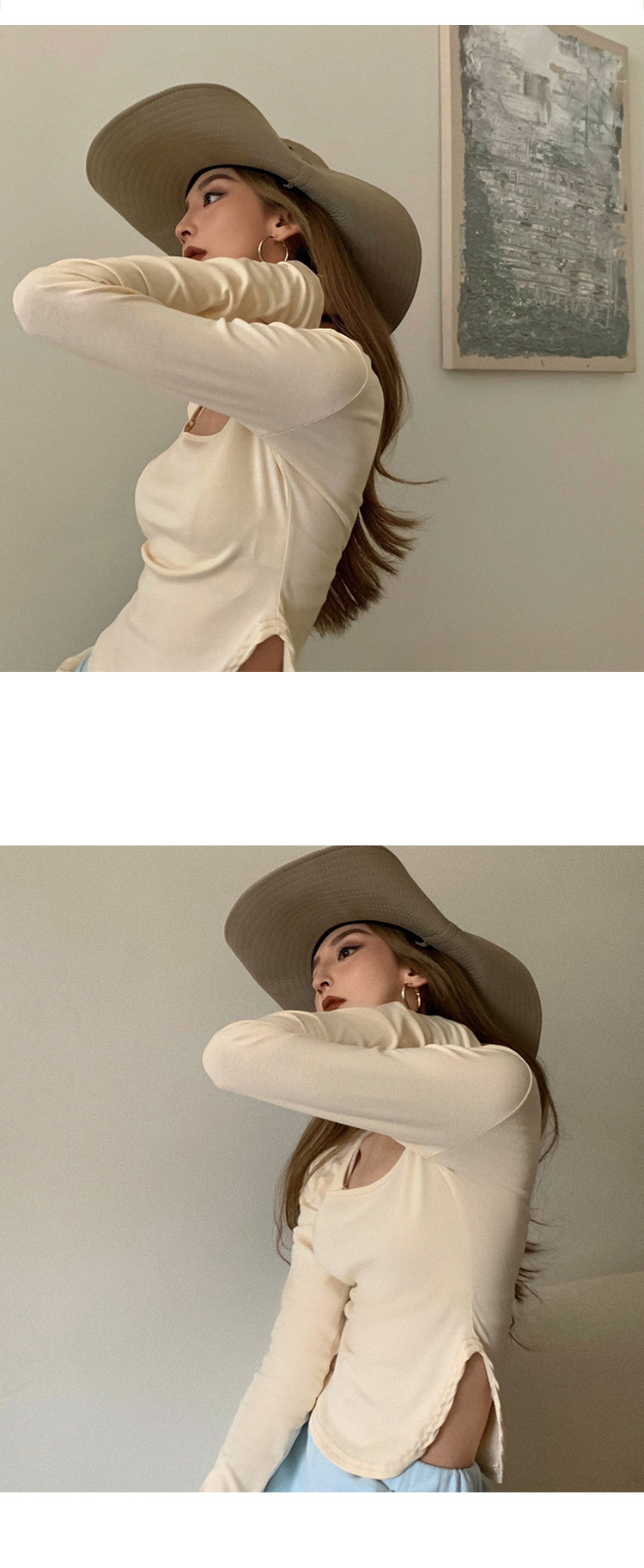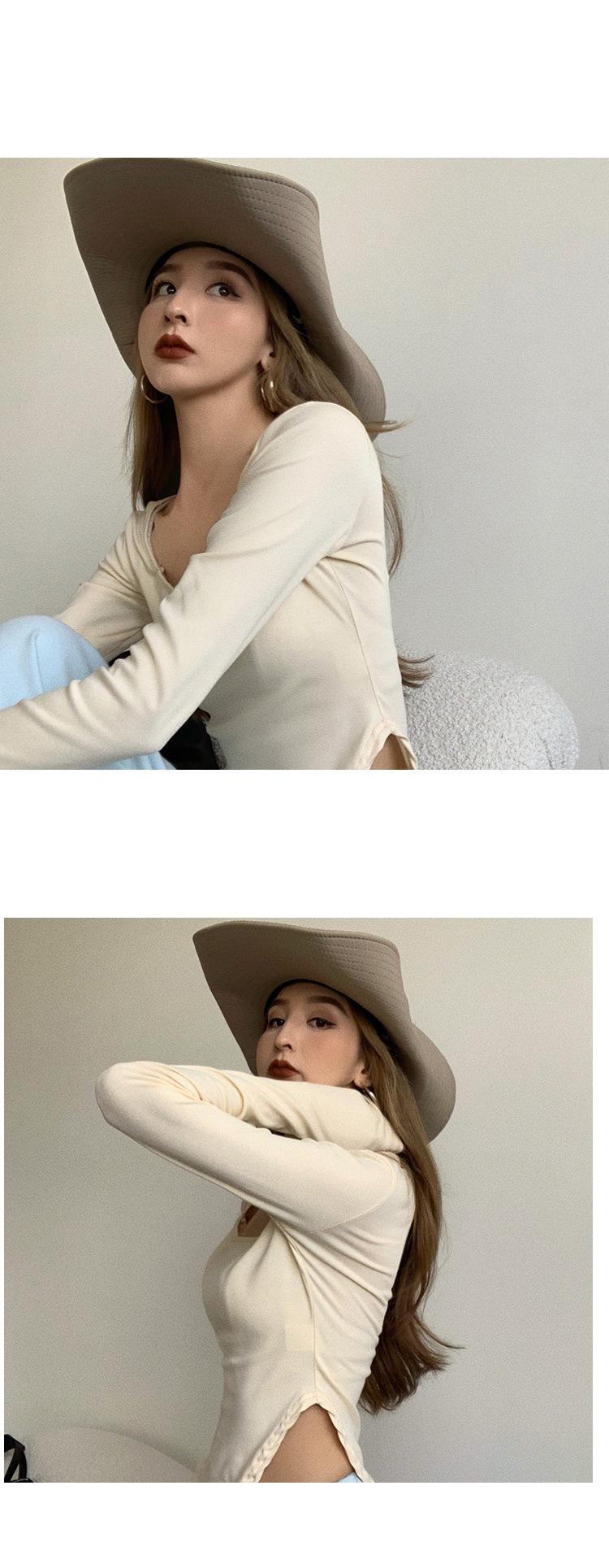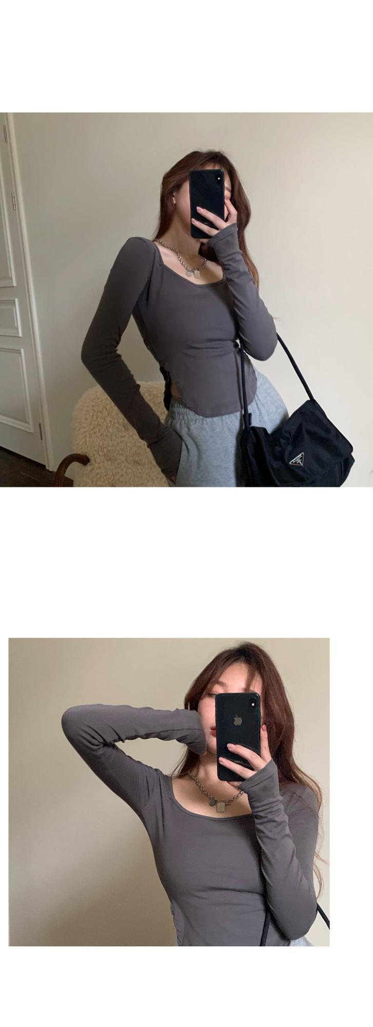 复古不规则长袖T恤女2025秋季新款气质U领修身显瘦内搭纯色上衣潮