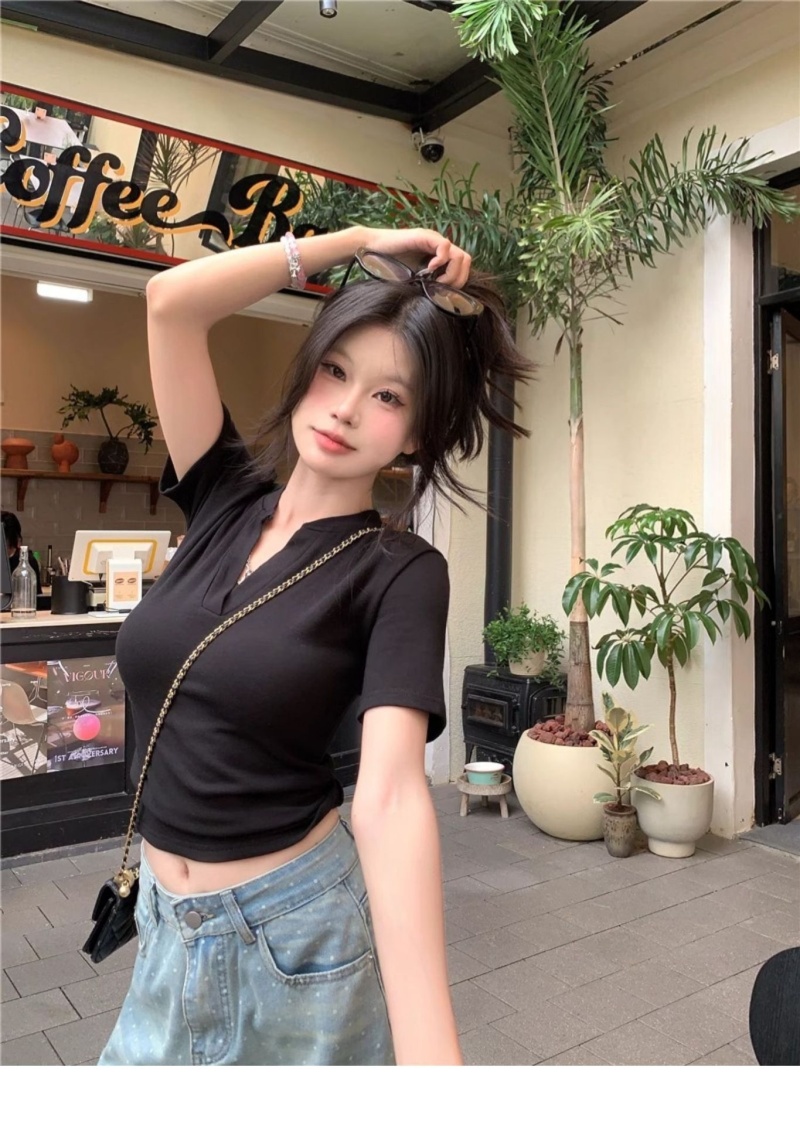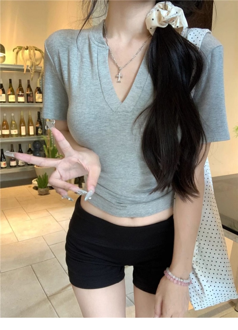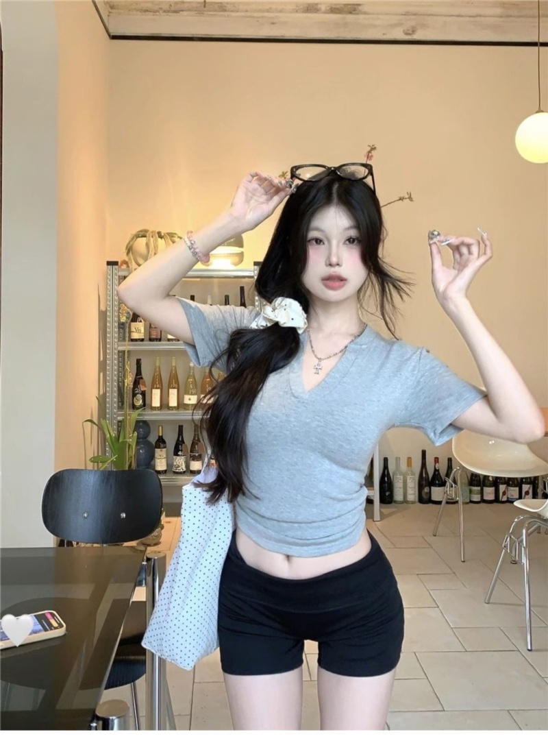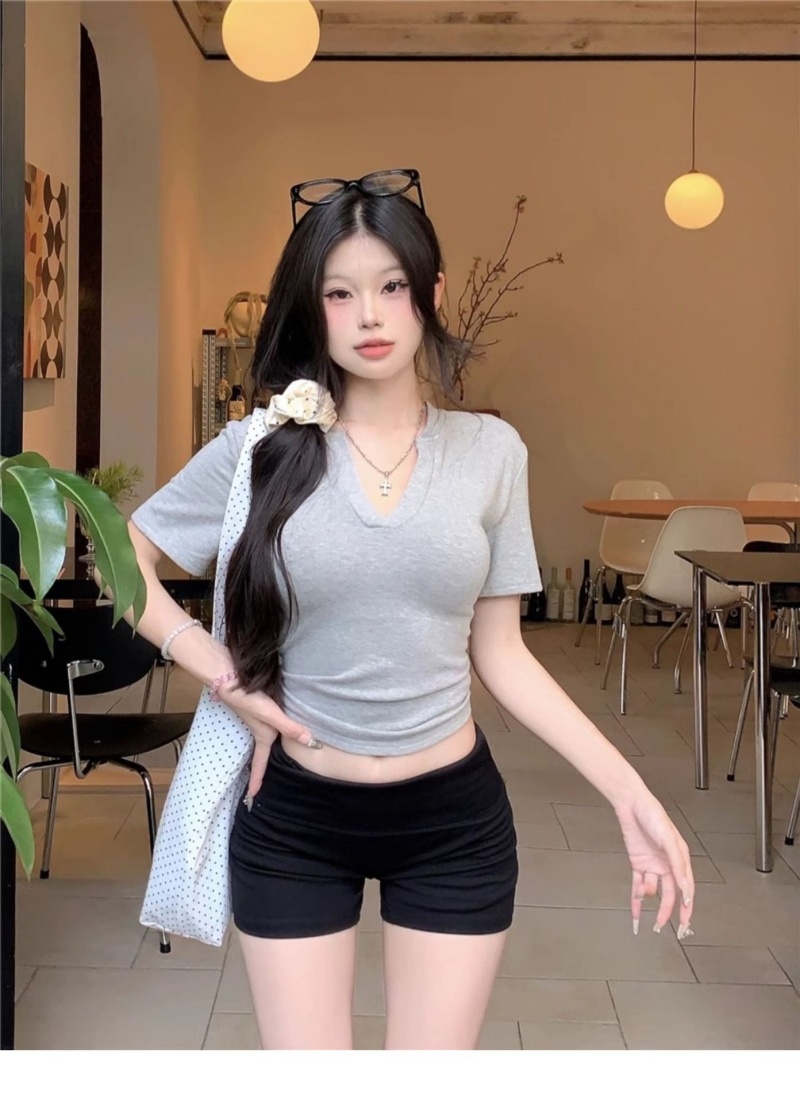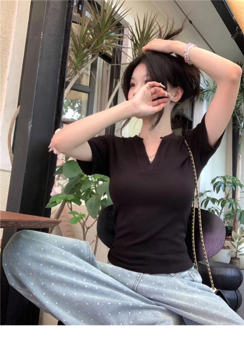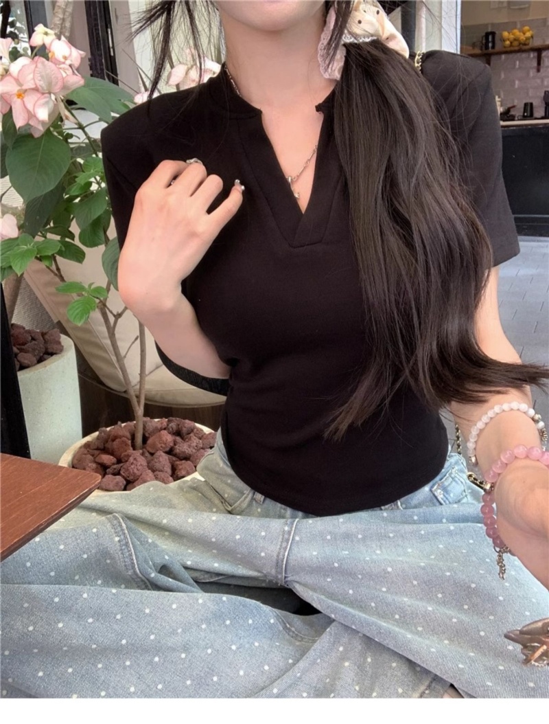 V领正肩短袖T恤女2025年夏季新款洋气时尚百搭短款学生上衣服女潮