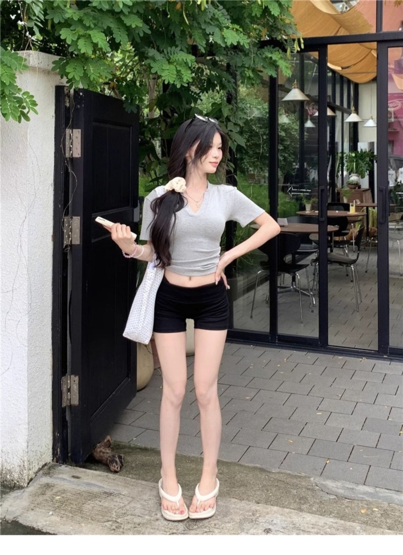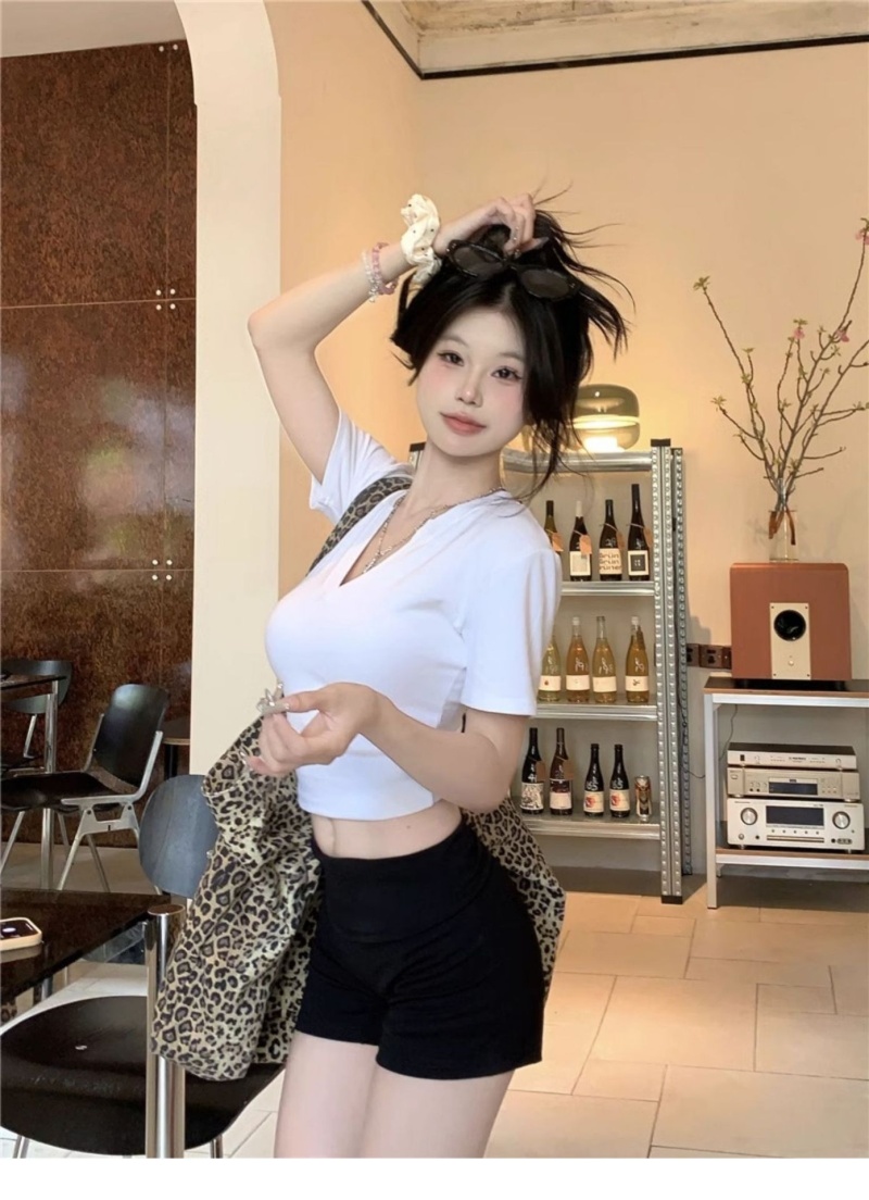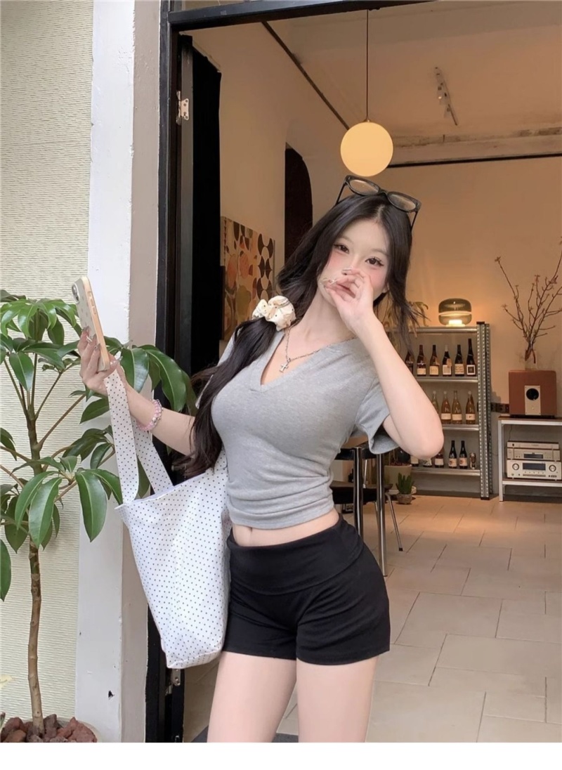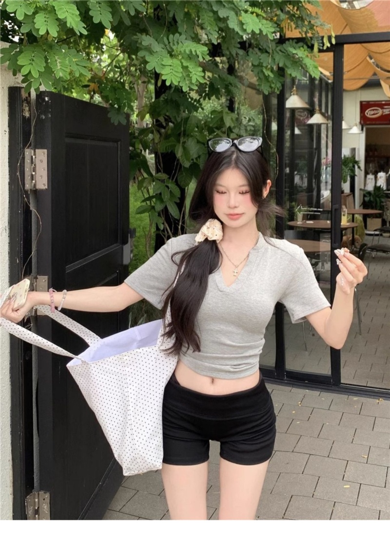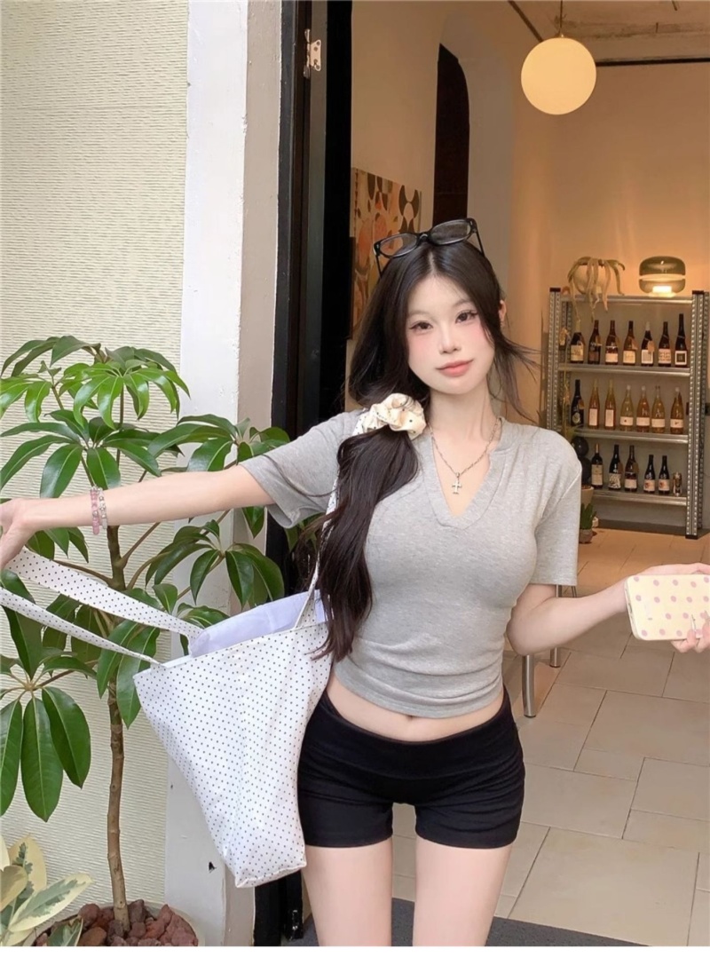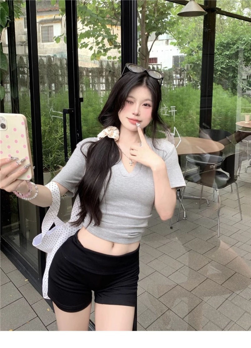 V领正肩短袖T恤女2025年夏季新款洋气时尚百搭短款学生上衣服女潮