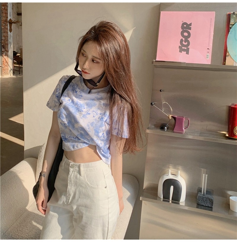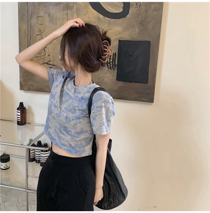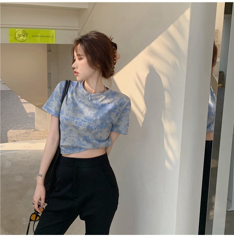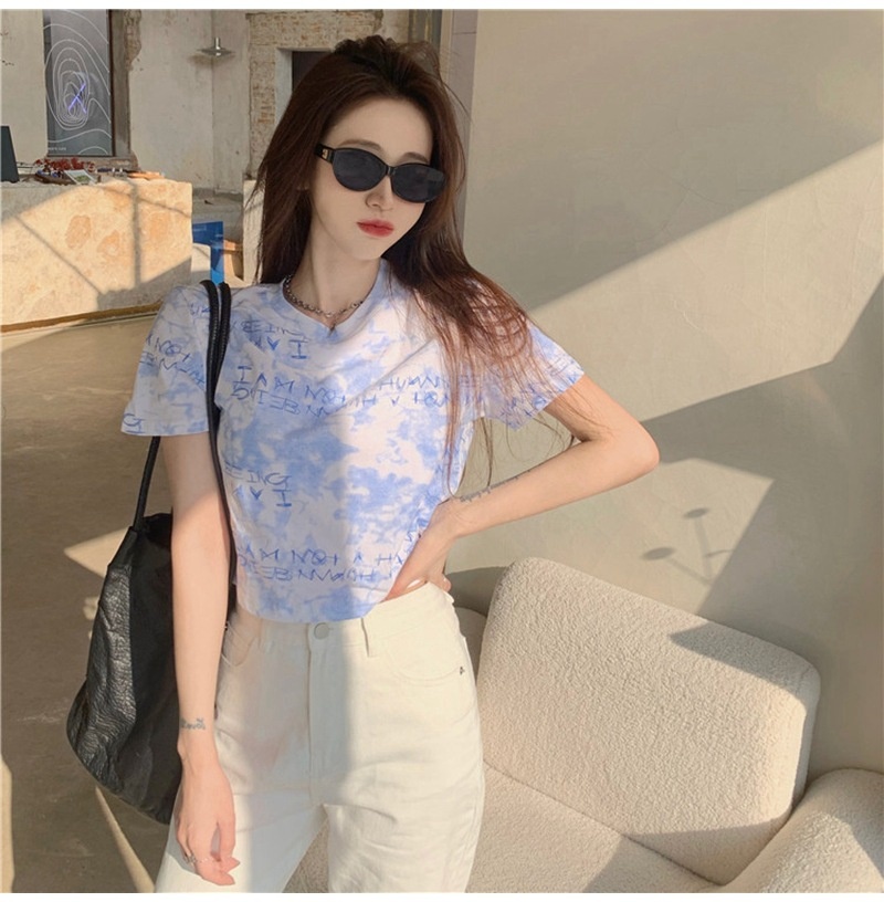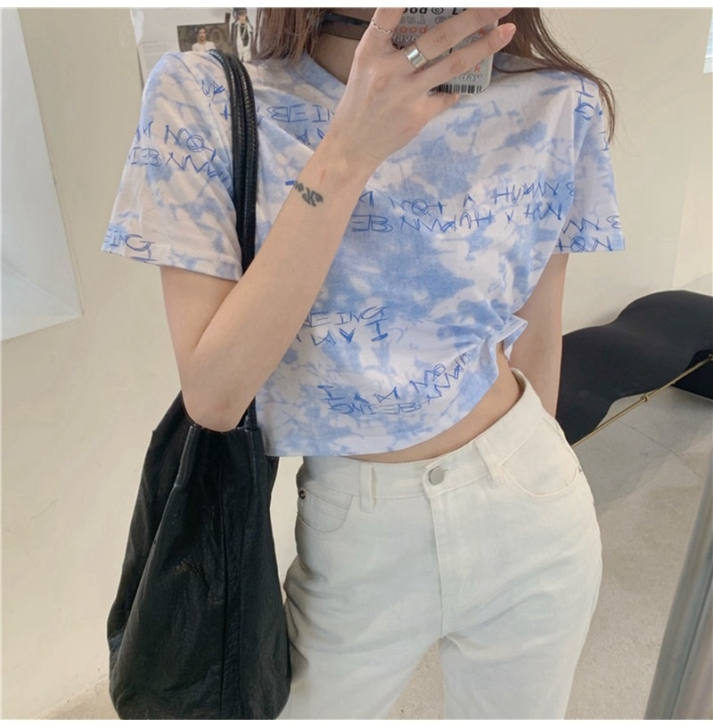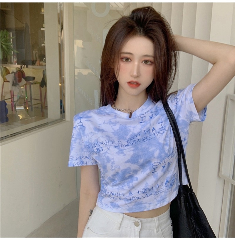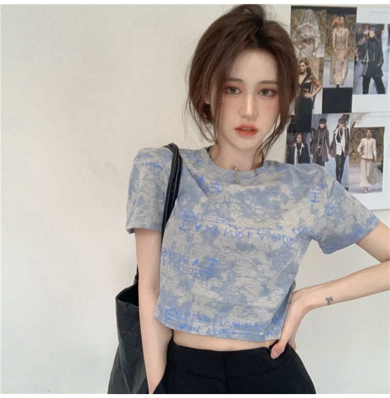 网红扎染短袖T恤女宽松夏季2025年新款韩版高腰露脐短款上衣服女