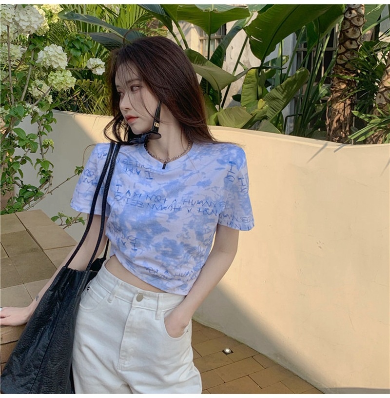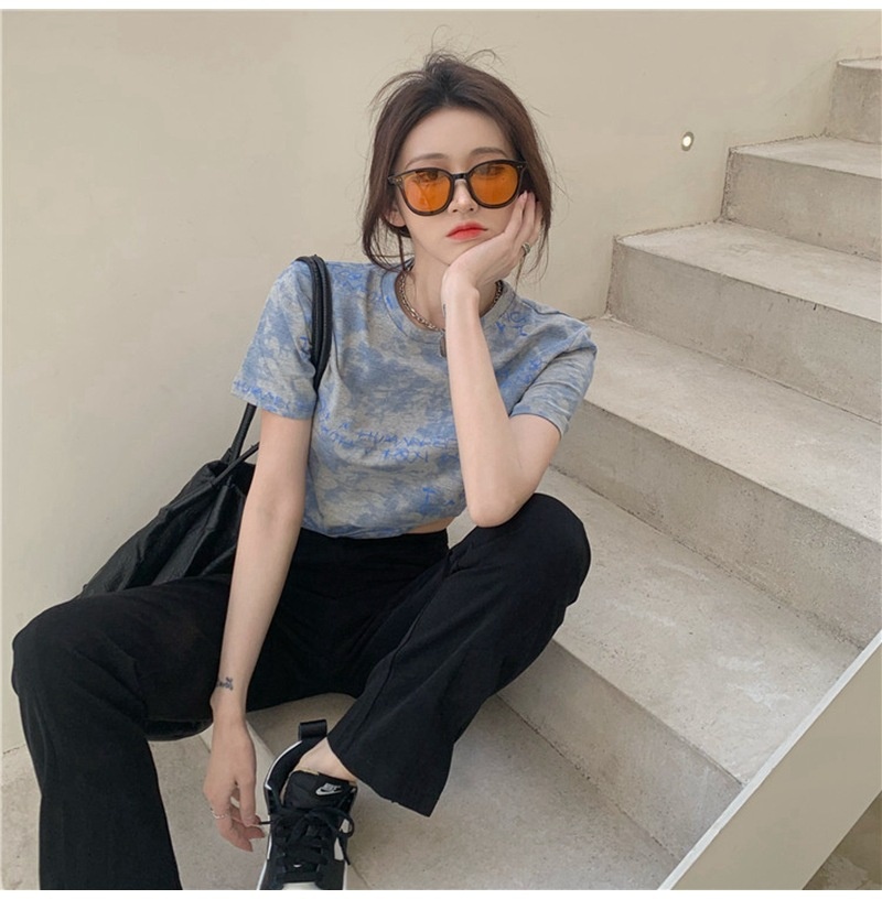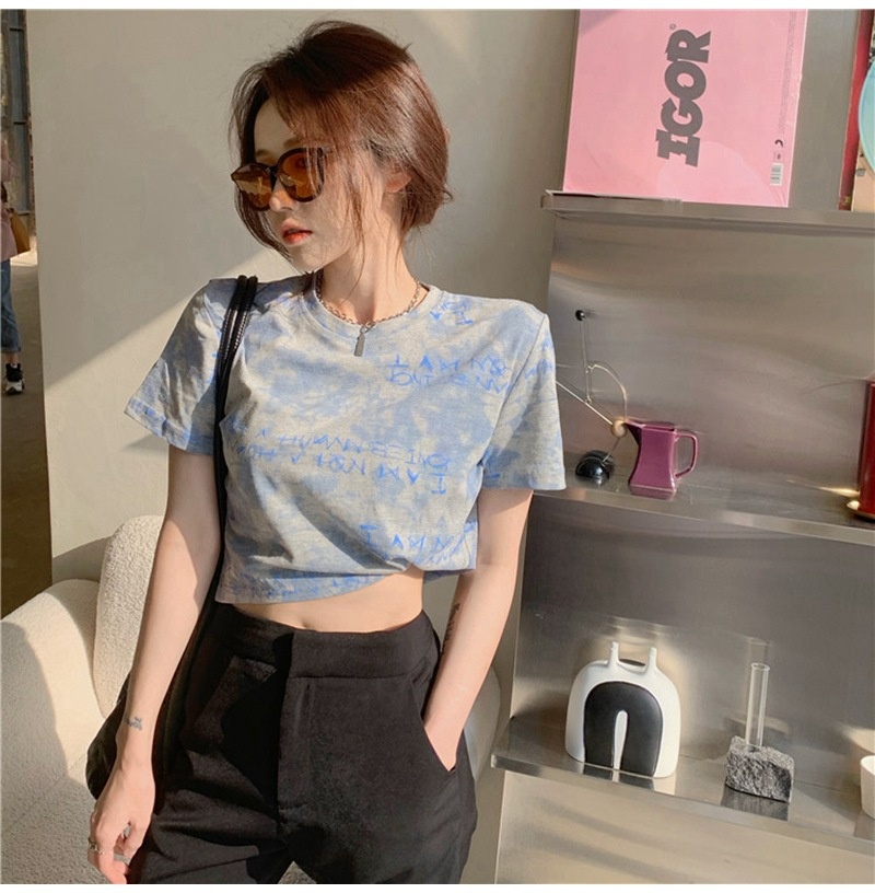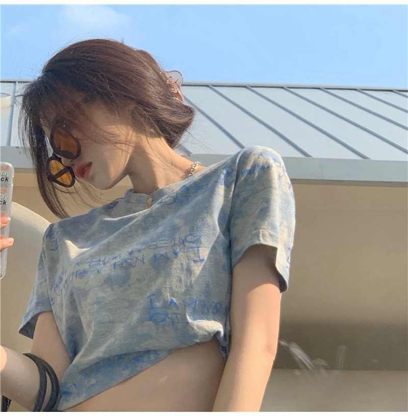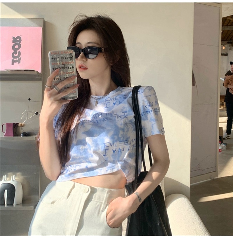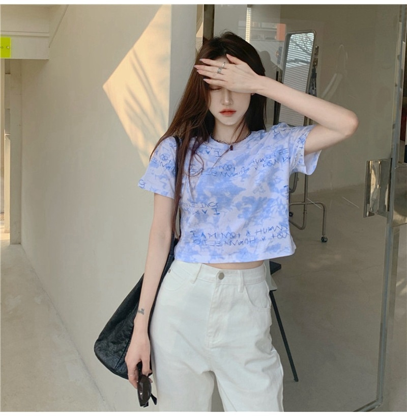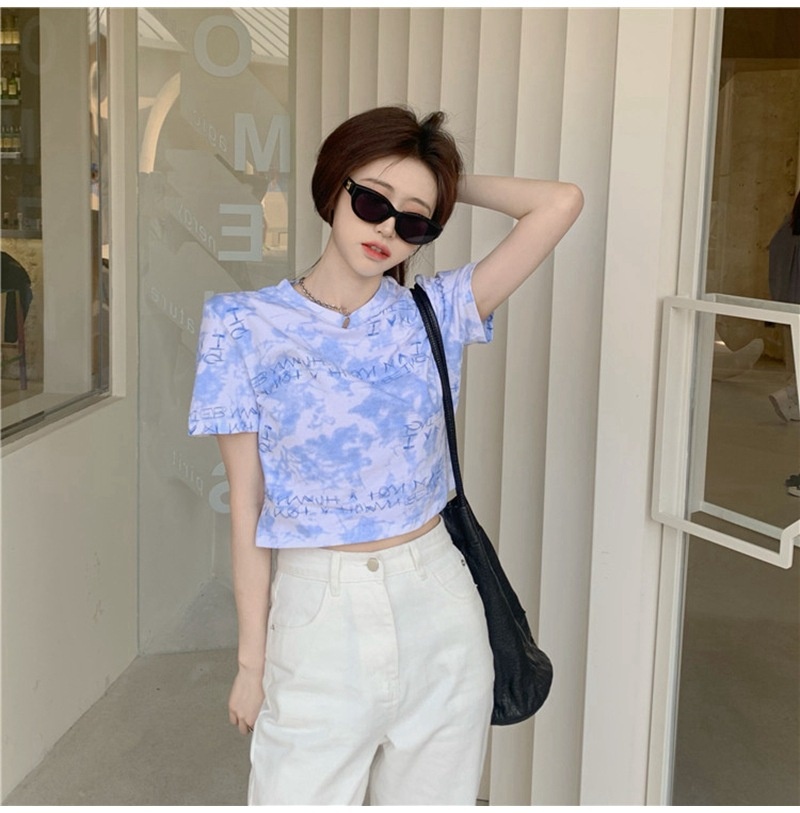 网红扎染短袖T恤女宽松夏季2025年新款韩版高腰露脐短款上衣服女