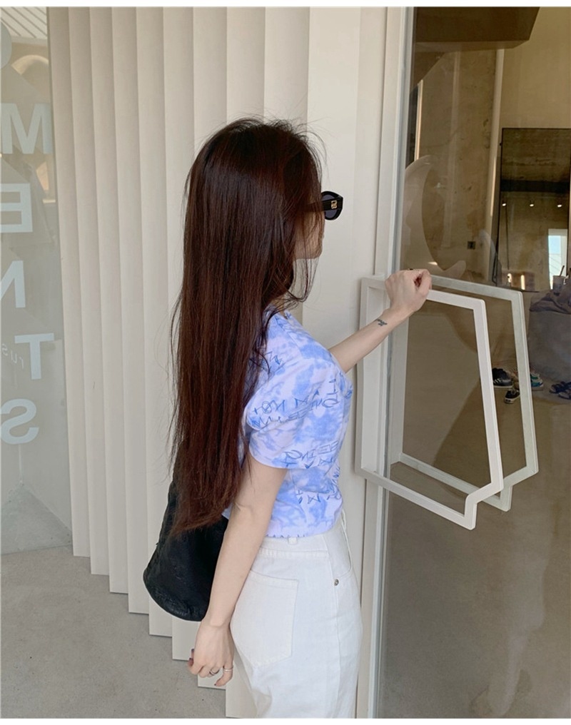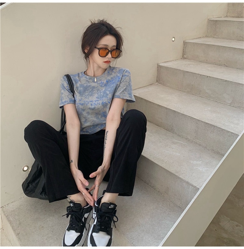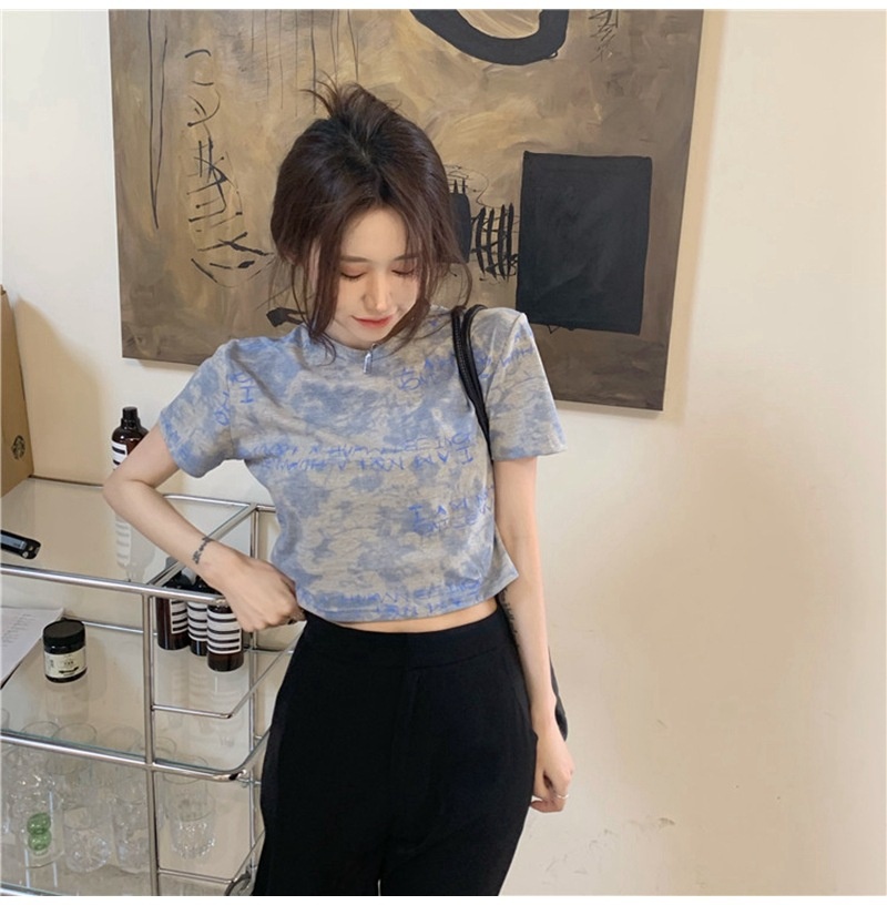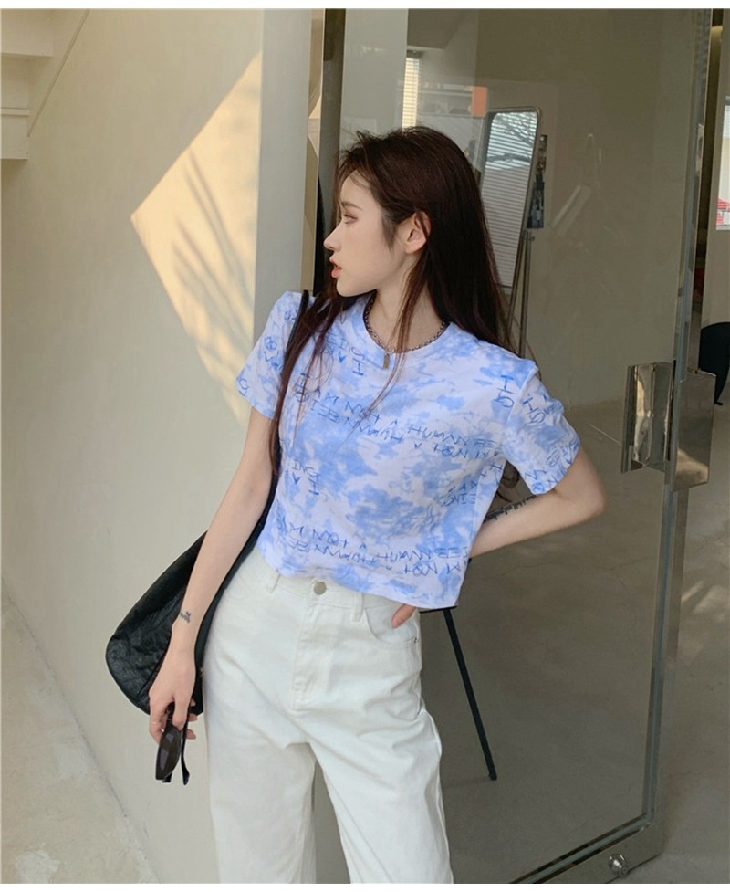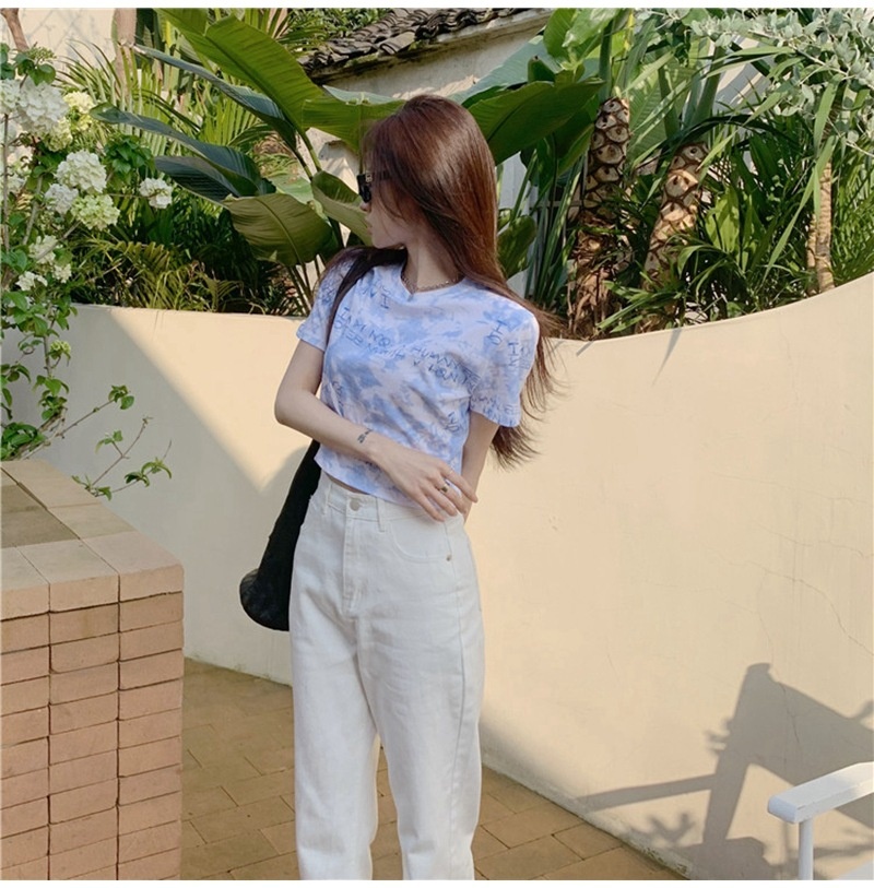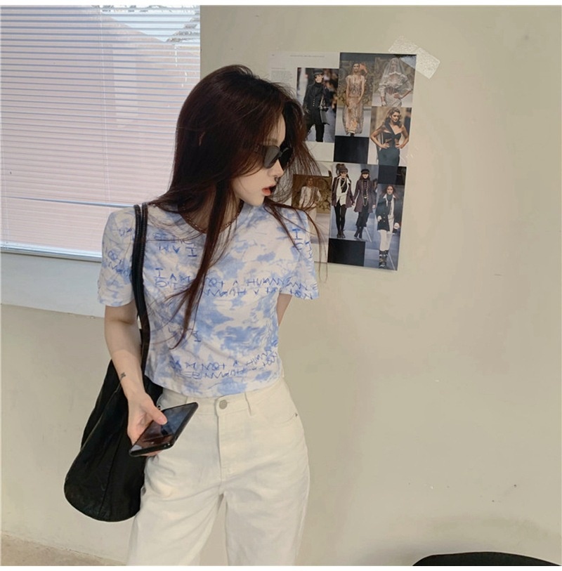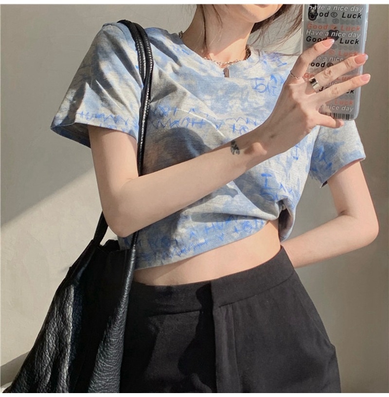 网红扎染短袖T恤女宽松夏季2025年新款韩版高腰露脐短款上衣服女