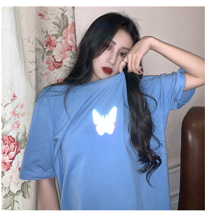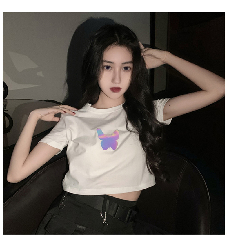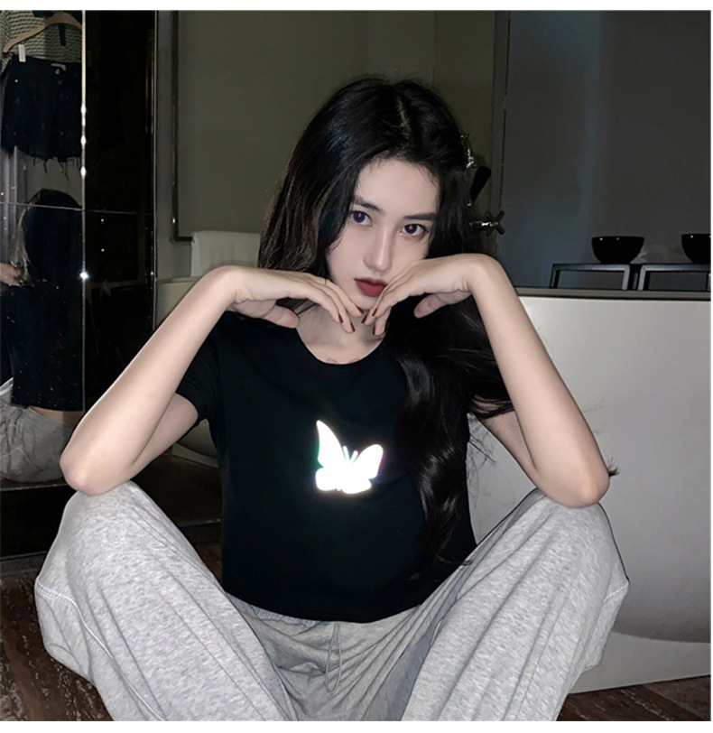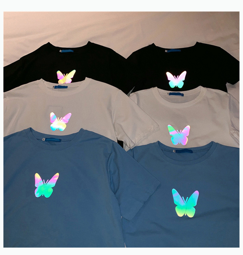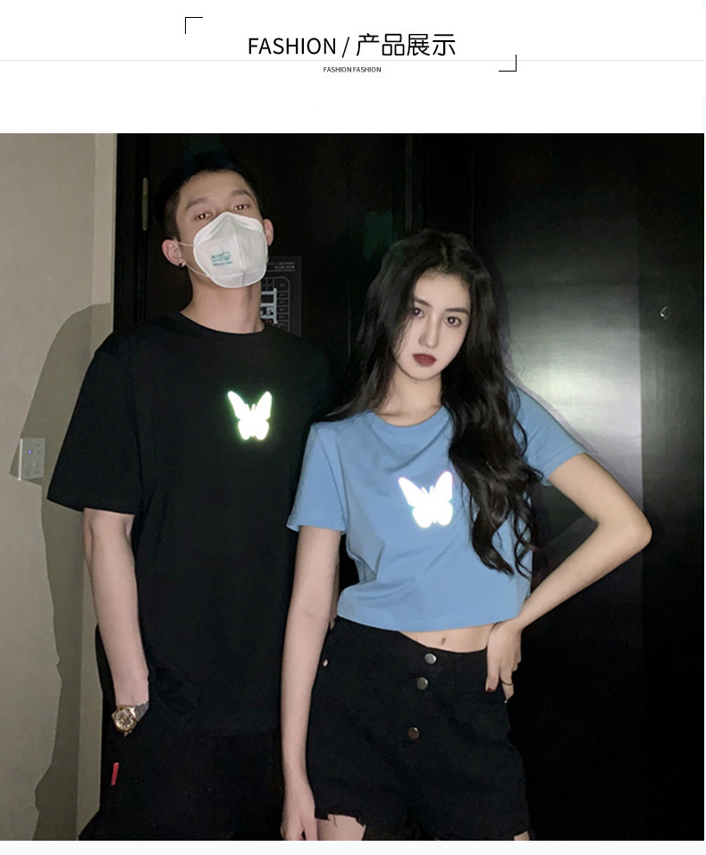 2025年夏季新款网红情侣装反光蝴蝶短袖t恤女ins超火短款学生上衣