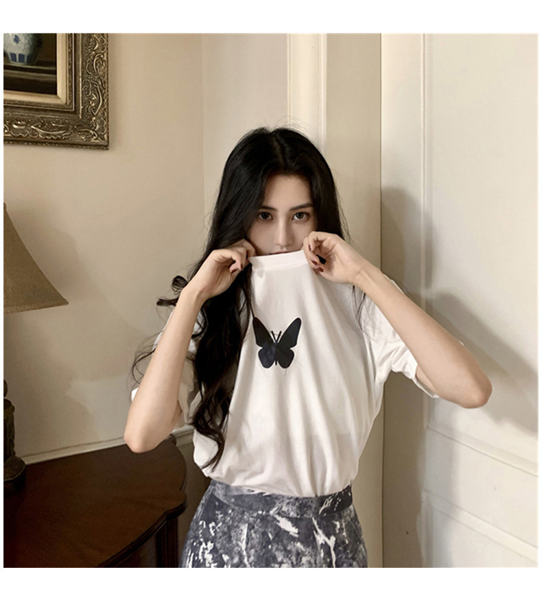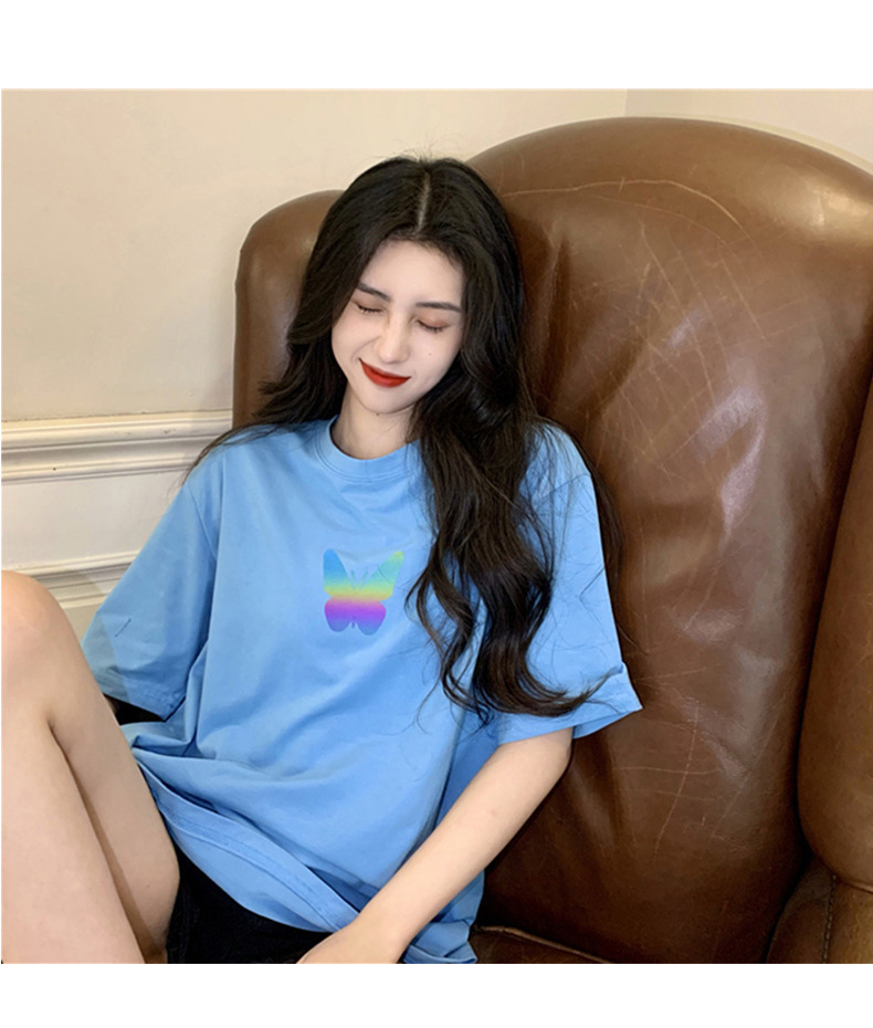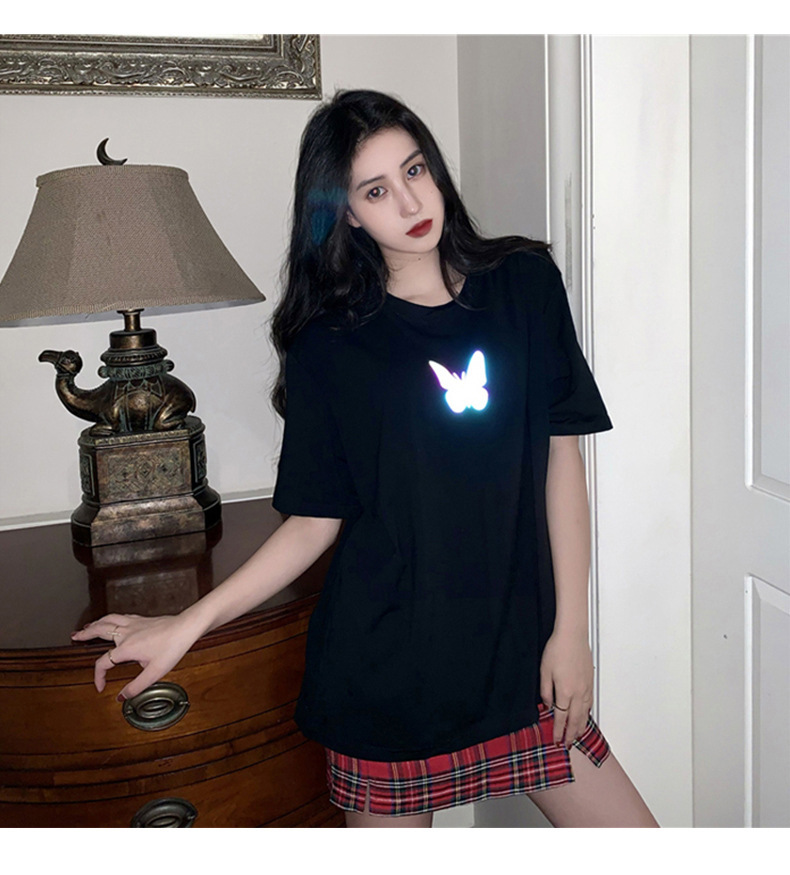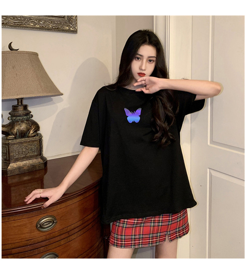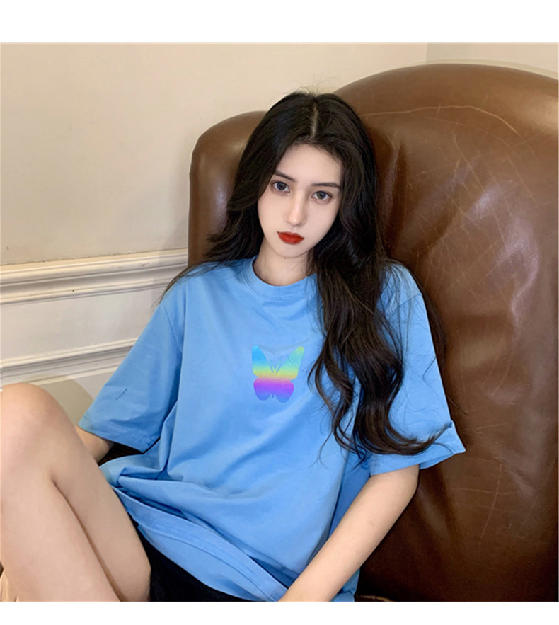 2025年夏季新款网红情侣装反光蝴蝶短袖t恤女ins超火短款学生上衣