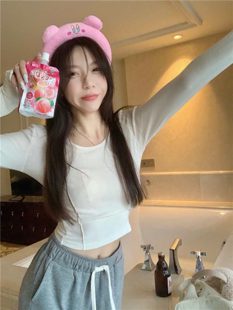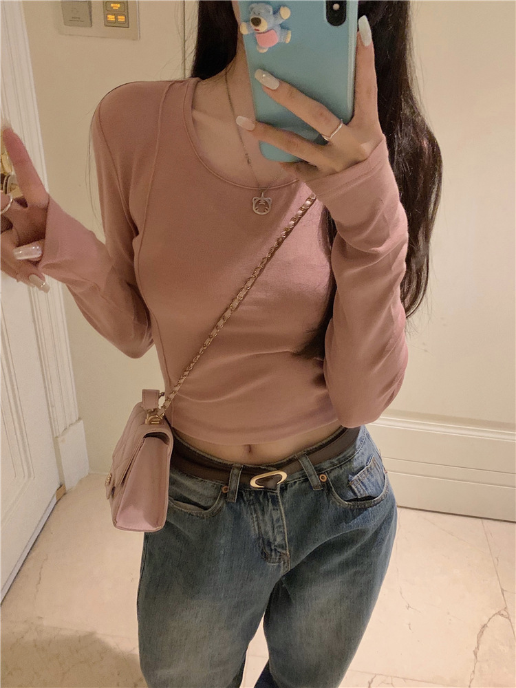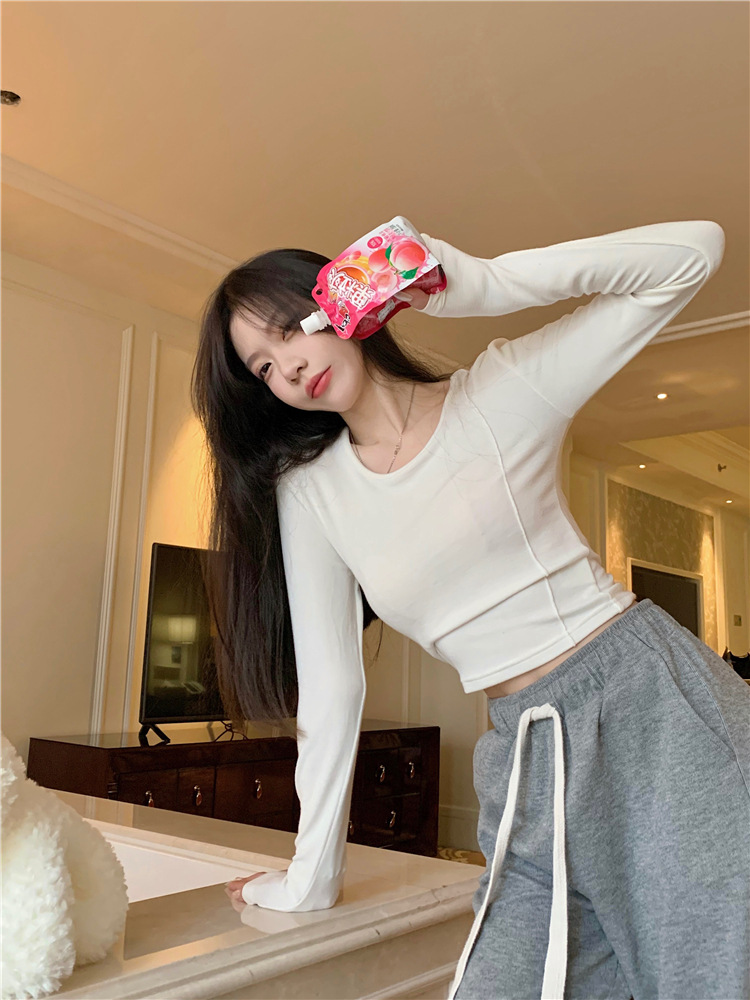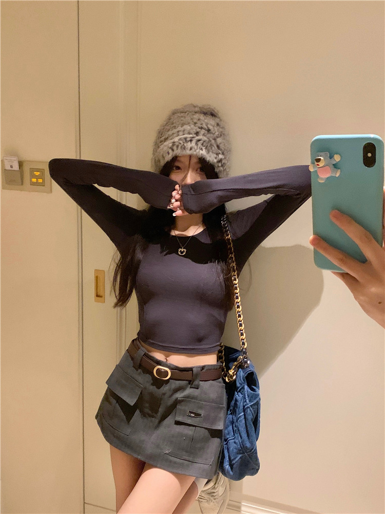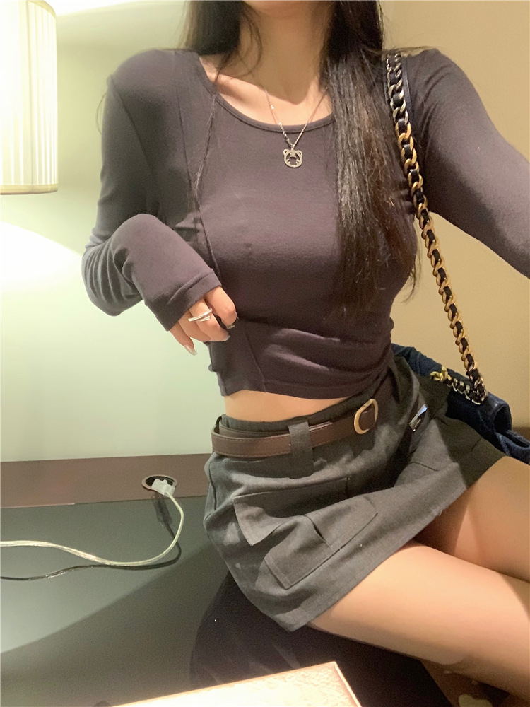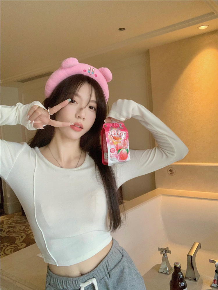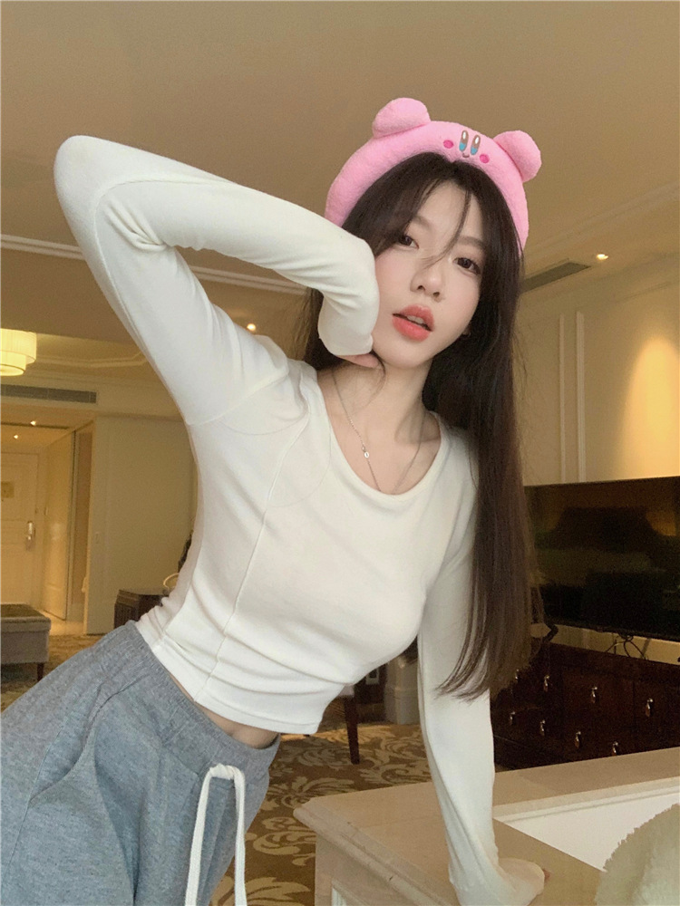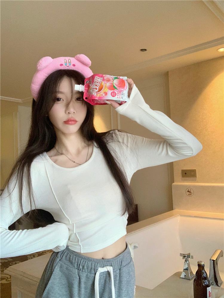 甜辣短款内搭T恤女2025秋季新款韩版修身打底衫长袖修身学生上衣