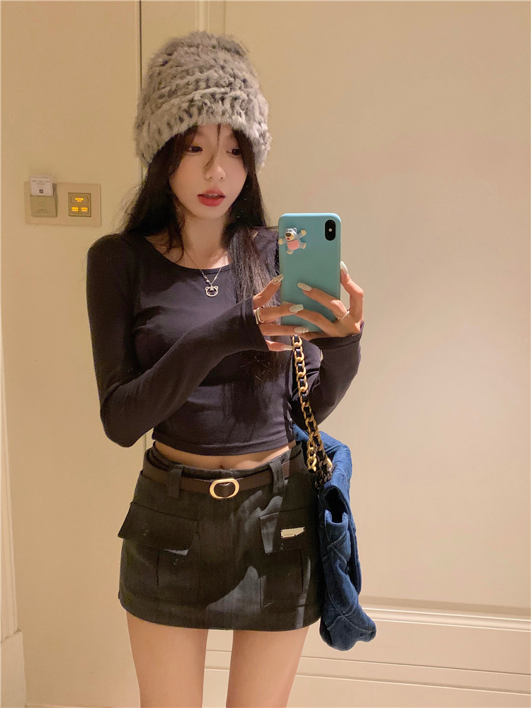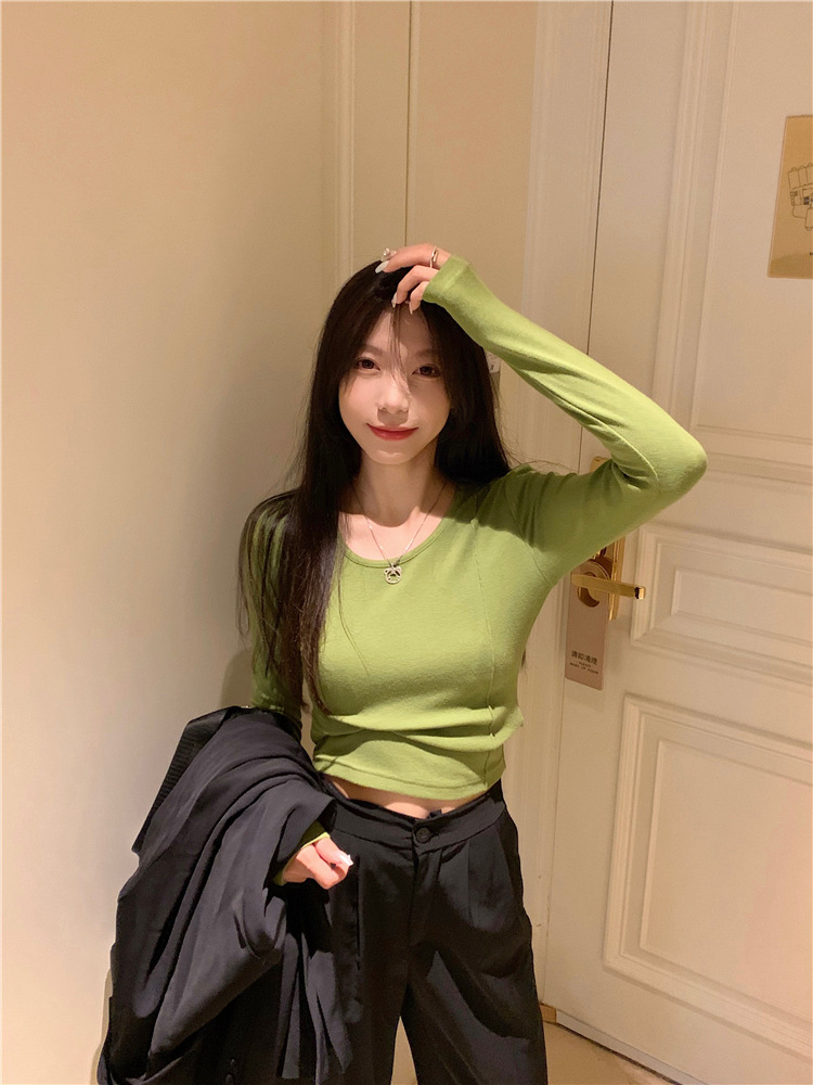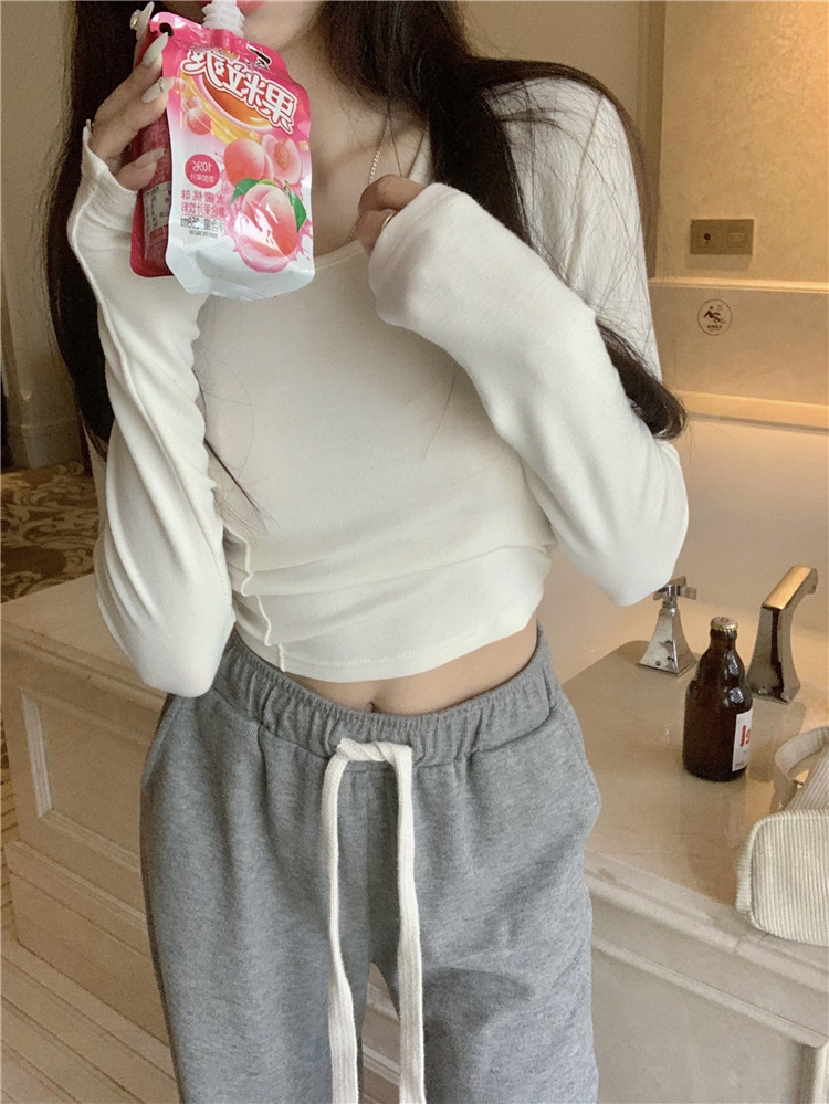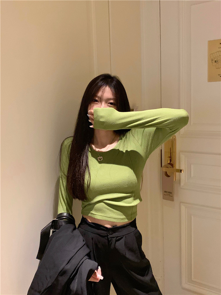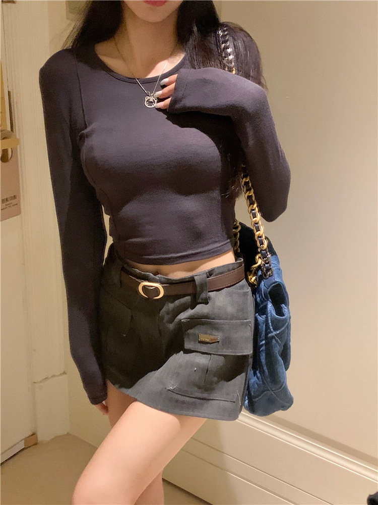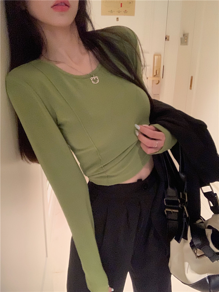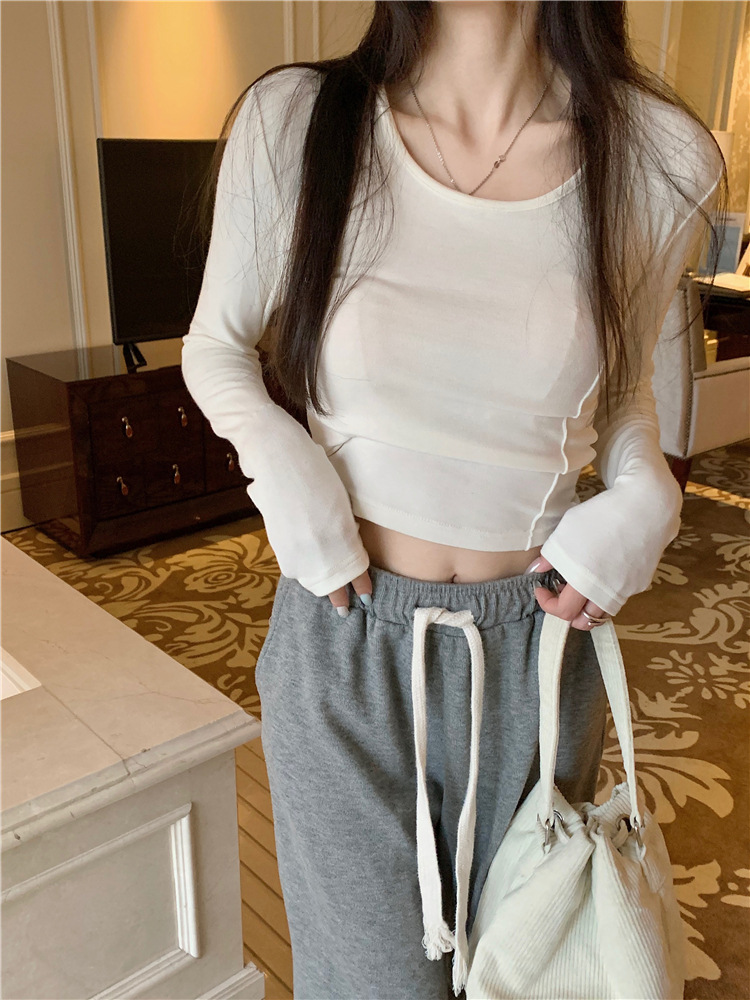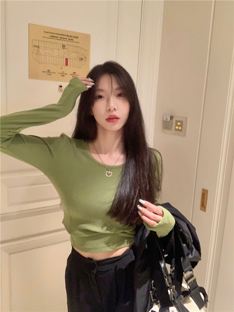 甜辣短款内搭T恤女2025秋季新款韩版修身打底衫长袖修身学生上衣