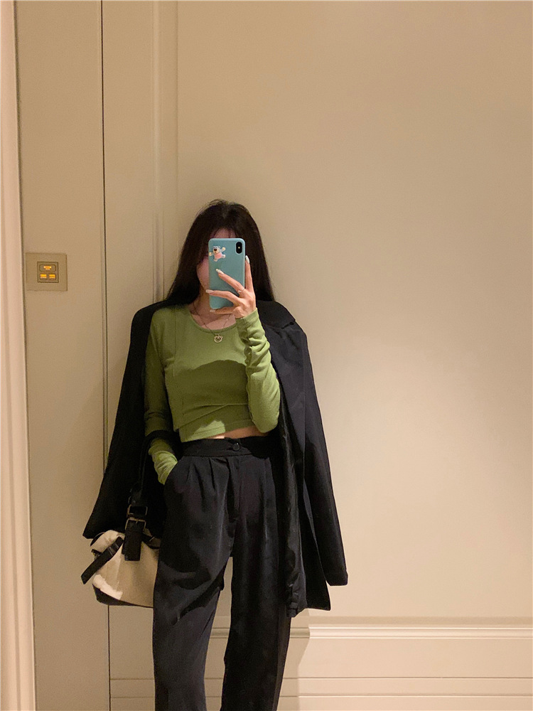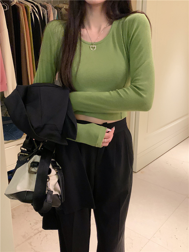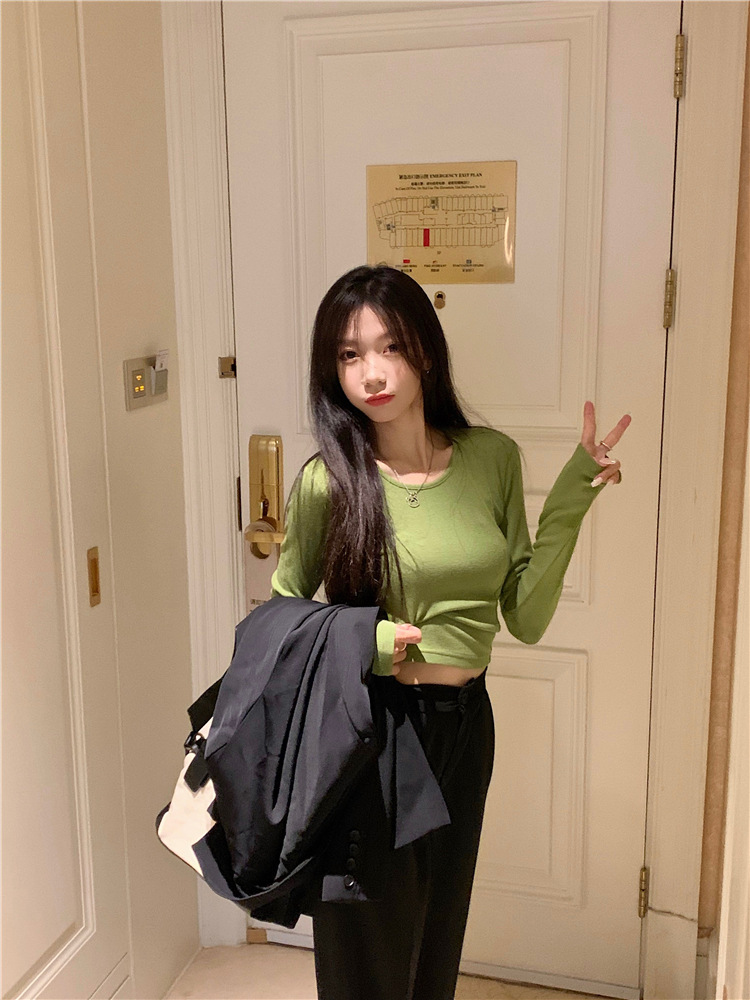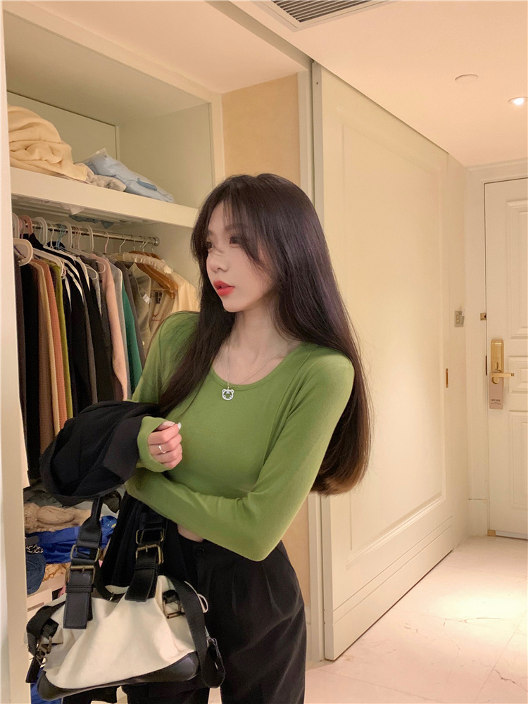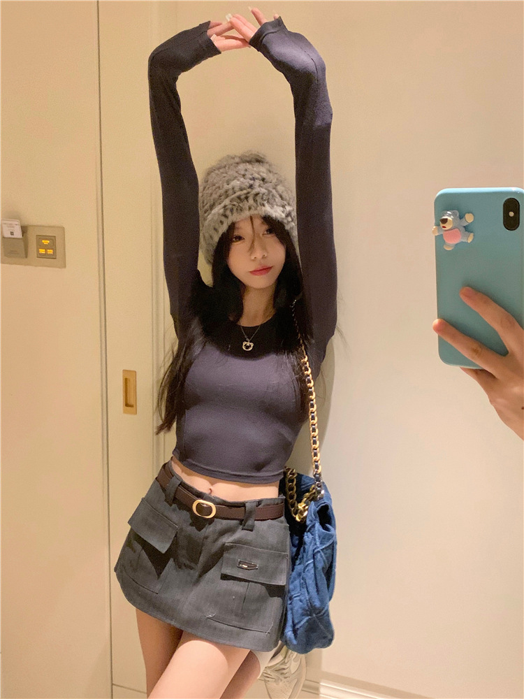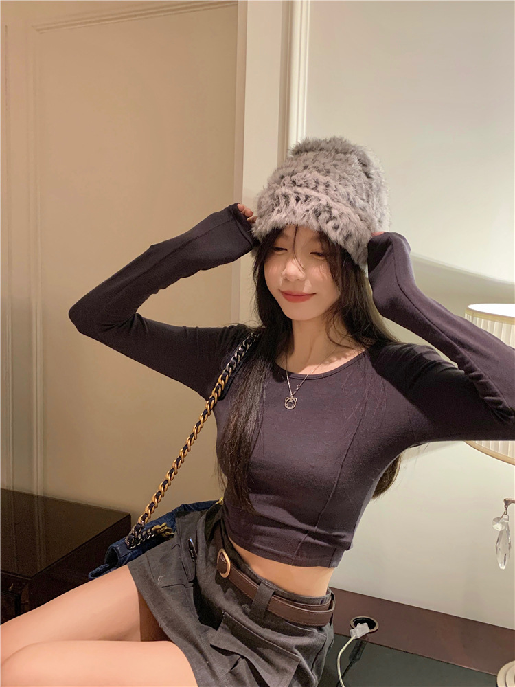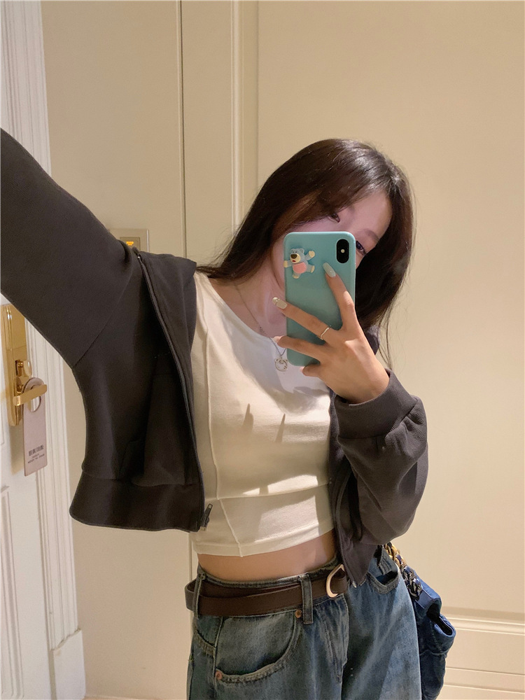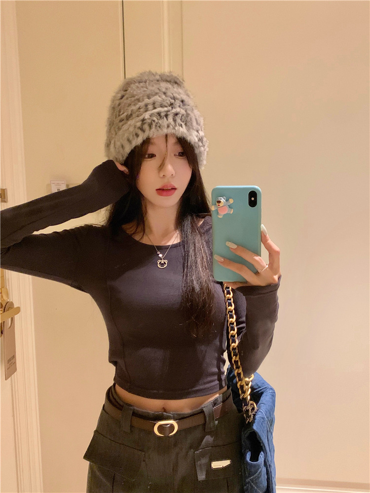 甜辣短款内搭T恤女2025秋季新款韩版修身打底衫长袖修身学生上衣