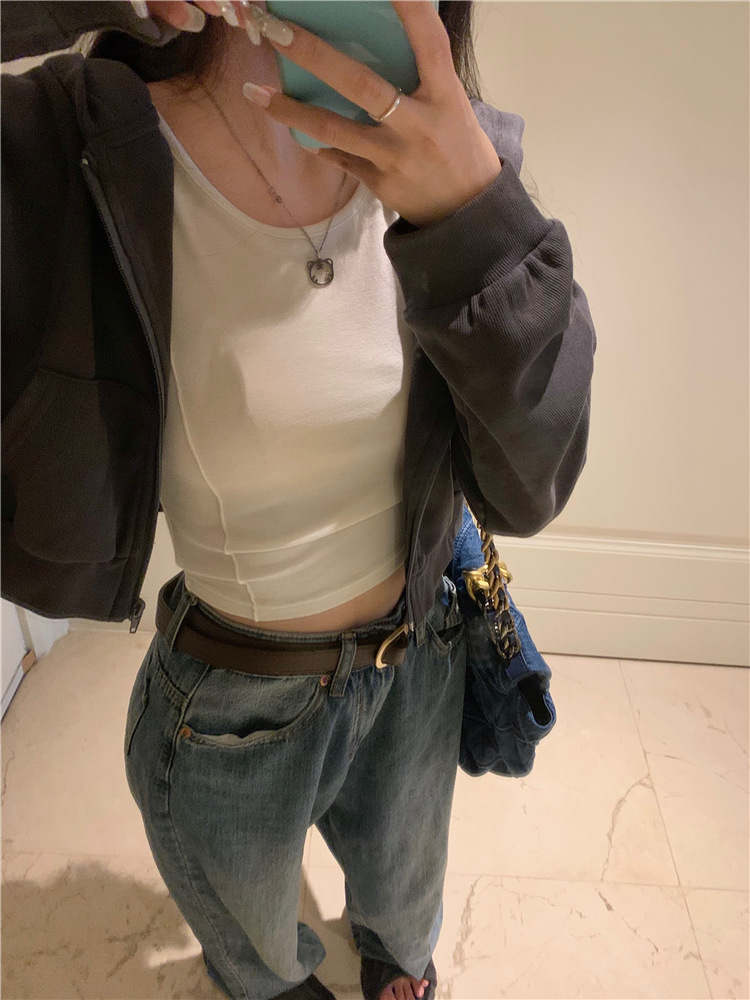 2022夏季韩版木耳边挂脖可调节ins女潮纯色百搭闺蜜装打底小吊带
