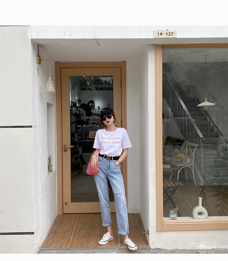 字母印花短袖t恤女网红超火新款韩版宽松学生上衣2025夏季女装潮