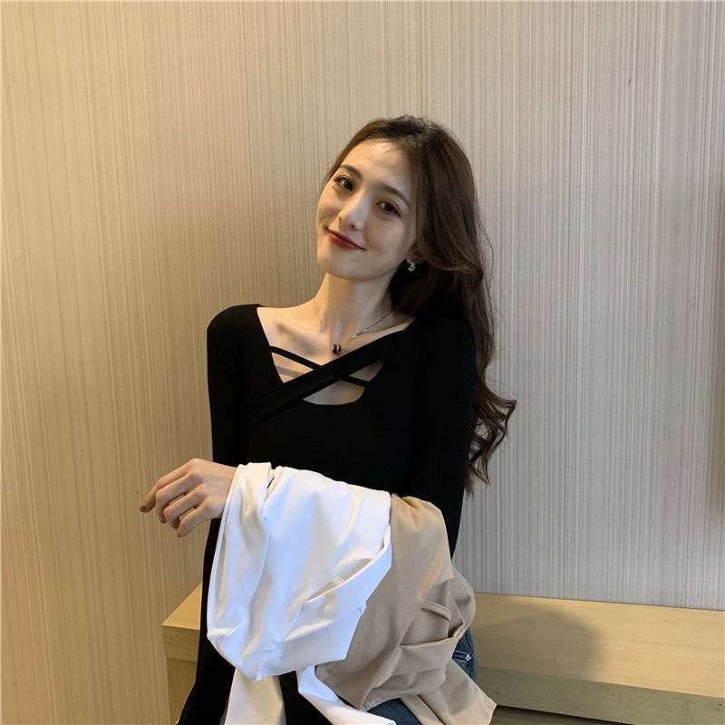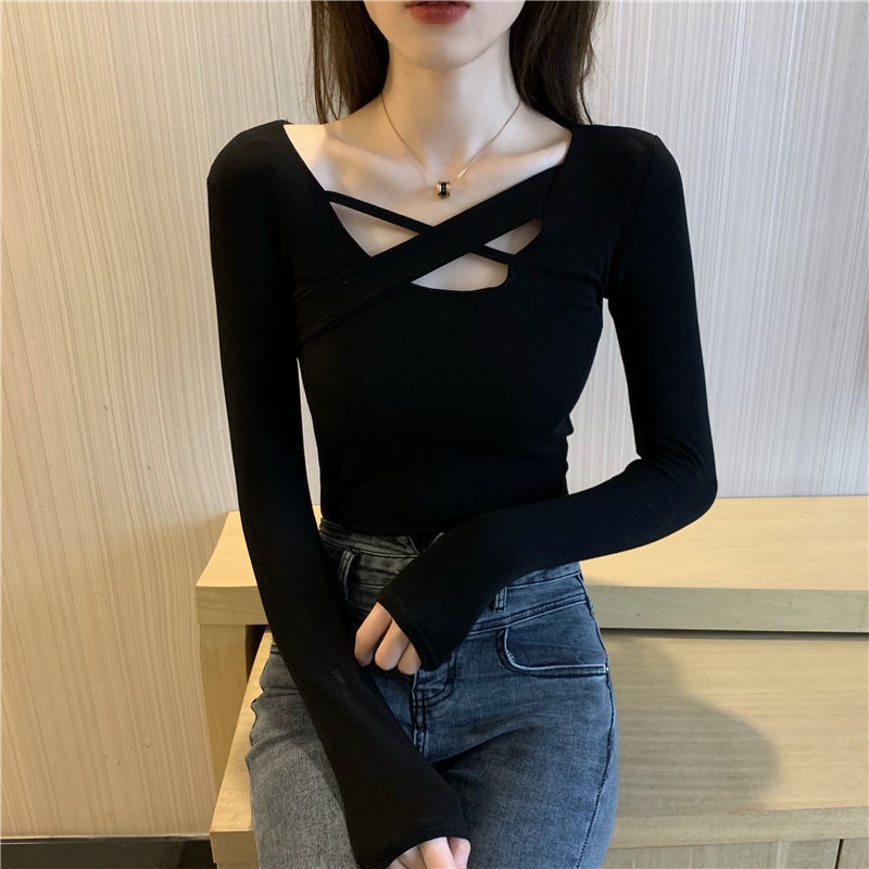 衣服女2025新款秋季上衣设计感内搭打底衫黑色修身显瘦长袖T恤女