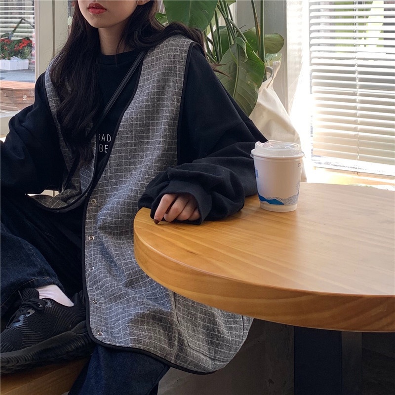 韩版网红辣妹穿搭上衣马甲纯欲气质小个子拼接棋盘针织背心上衣女