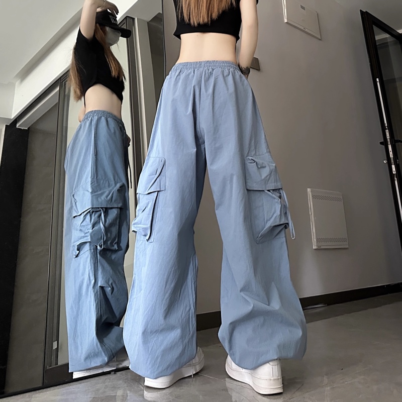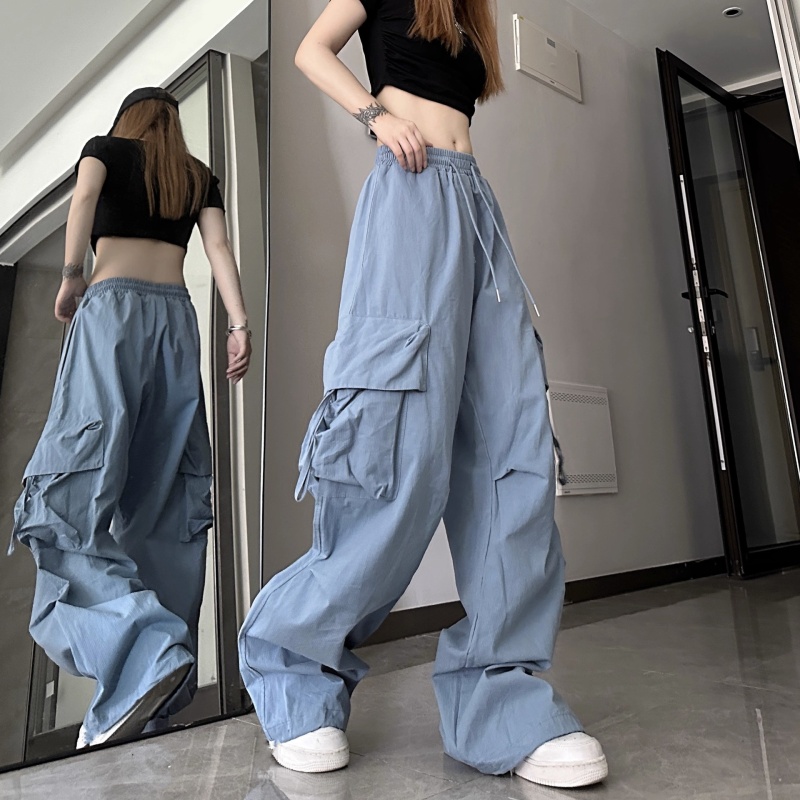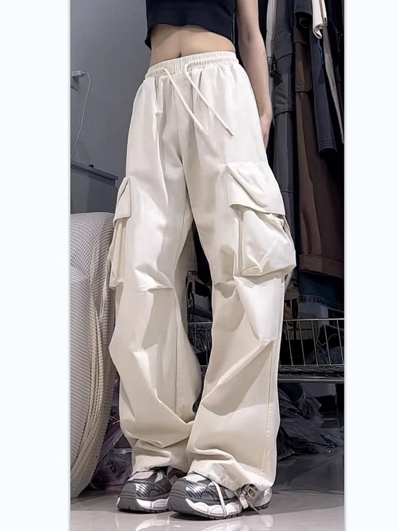 美式复古工装裤女夏季高腰直筒阔腿裤设计感小众宽松休闲拖地长裤