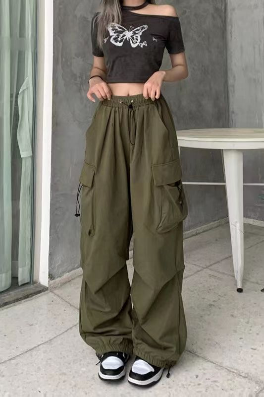 设计感高街工装裤女2025新款宽松直筒阔腿大口袋休闲复古束脚裤潮