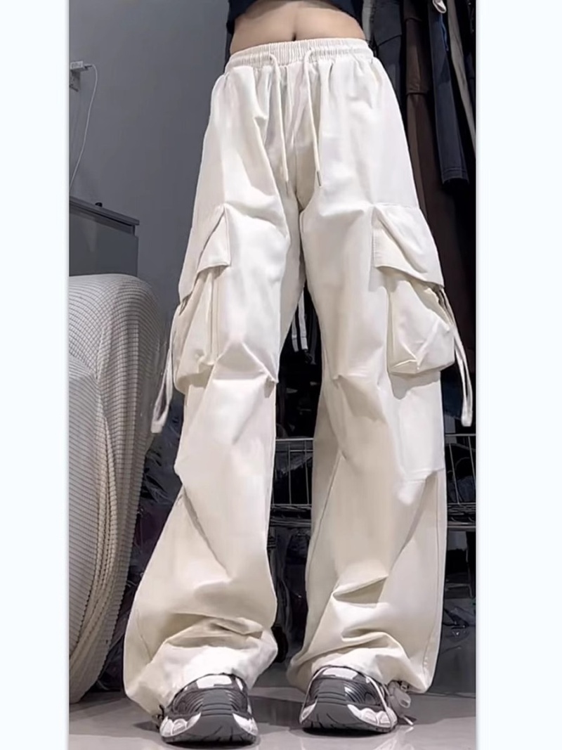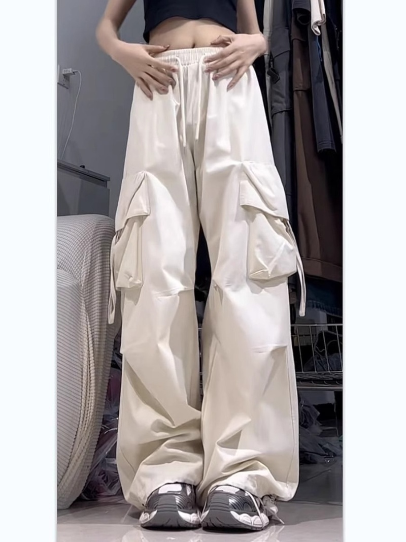 美式复古工装裤女夏季高腰直筒阔腿裤设计感小众宽松休闲拖地长裤