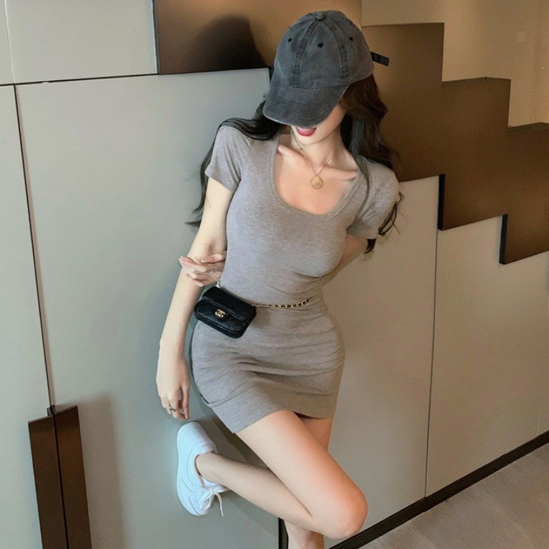 纯欲性感紧身辣妹连衣裙女装夏季2022年新款短裙粉色收腰显瘦裙子