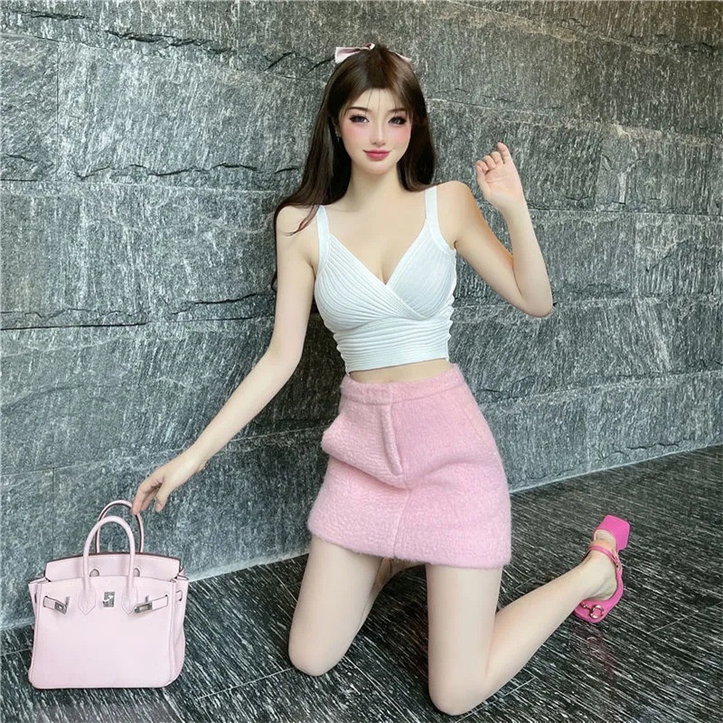 夏季短款纯色法式针织薄款挂脖吊带性感辣妹外穿露背加工定制上衣