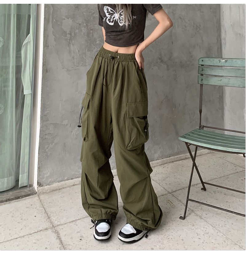 工装裤女2025夏季新款美式降落伞裤子高腰阔腿休闲束口运动裤潮