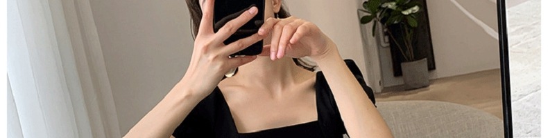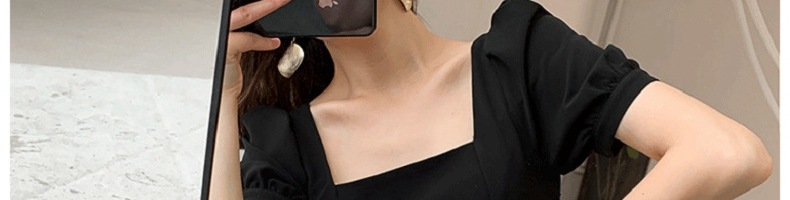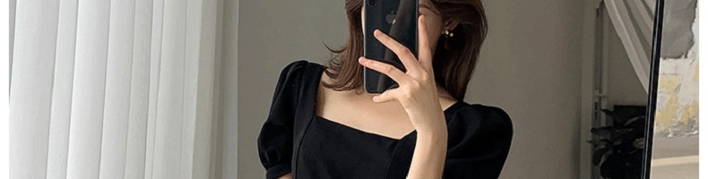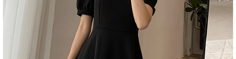 2025夏季新款复古赫本风小黑裙胖妹妹收腰显瘦方领连衣裙女装外贸