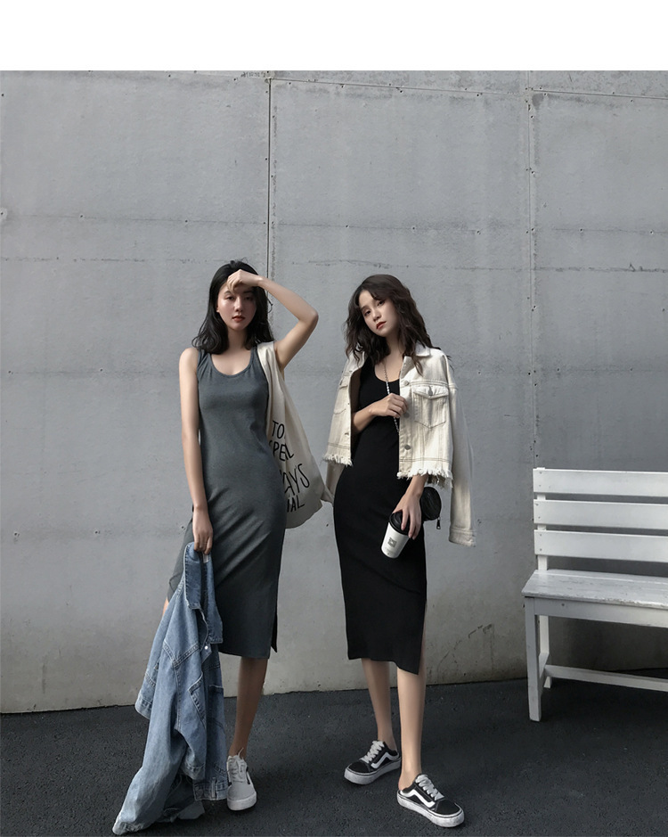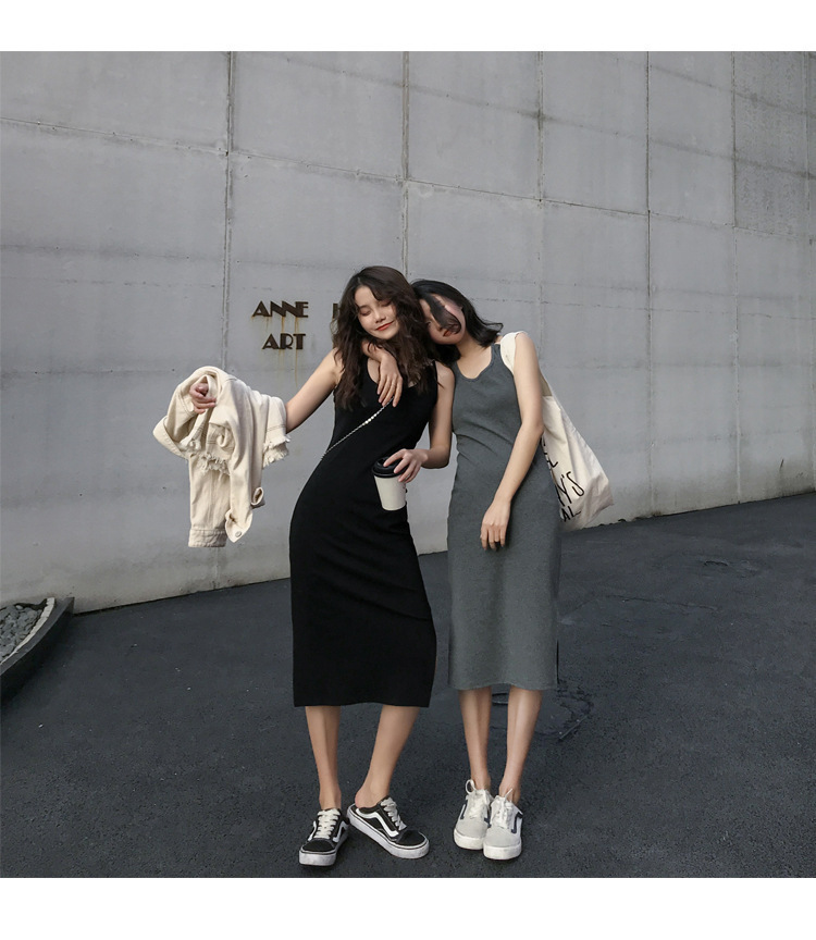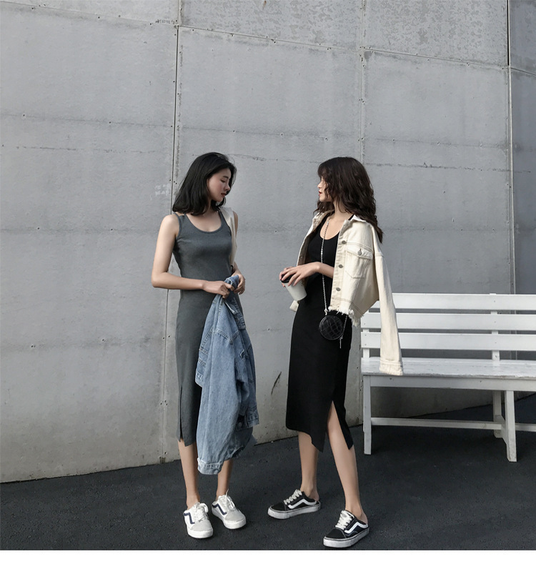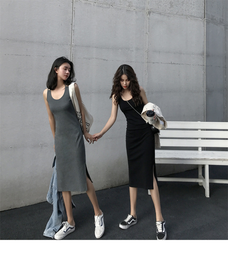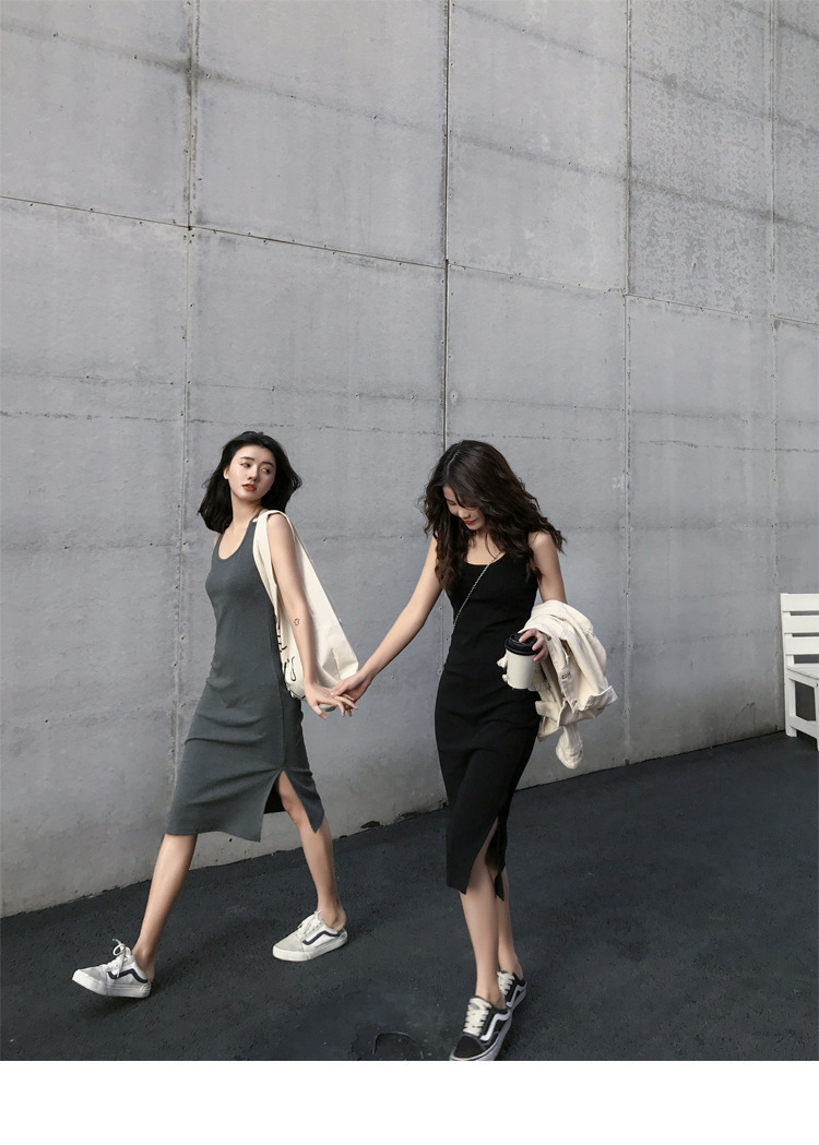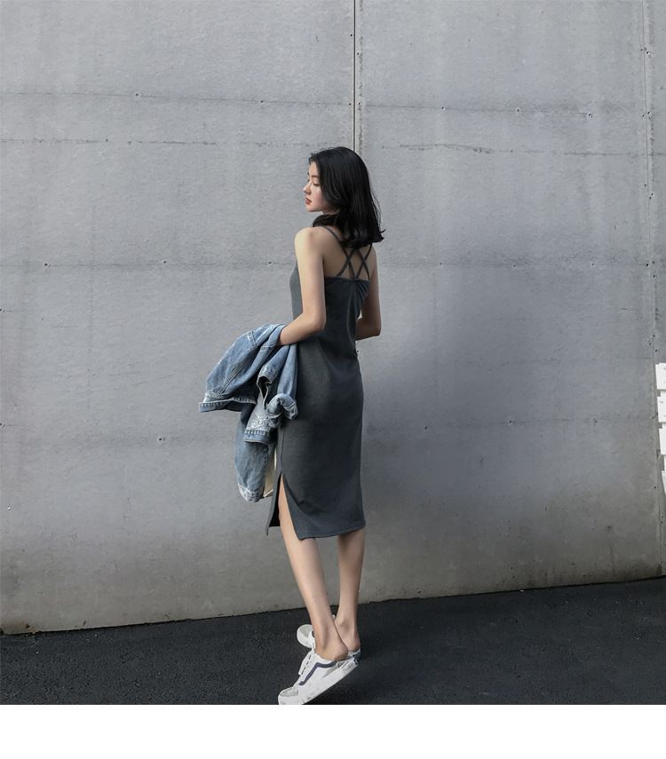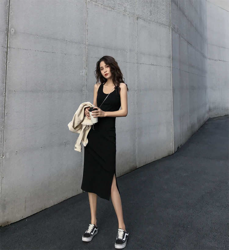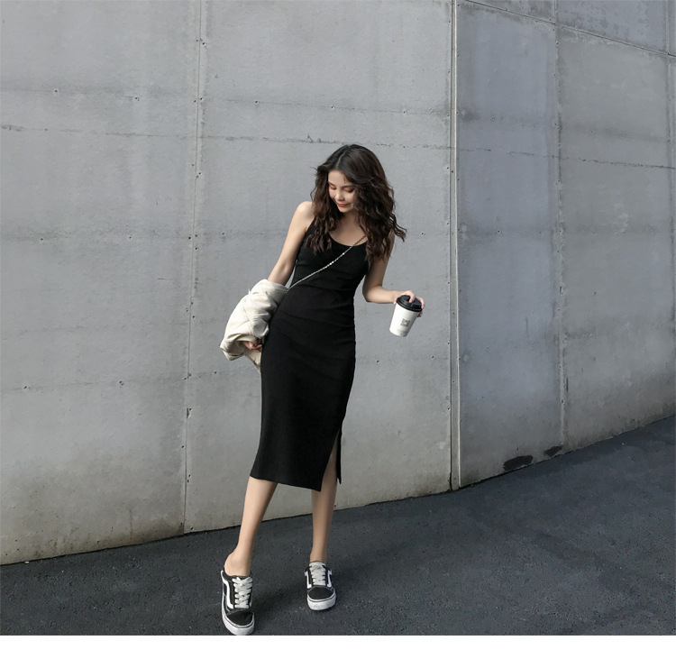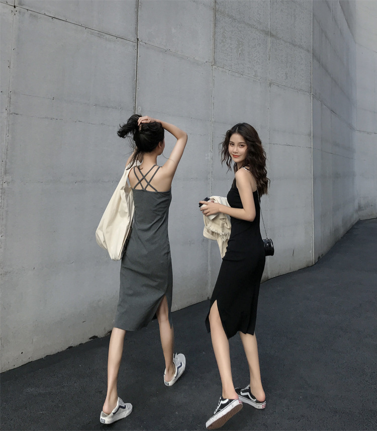 中长款吊带连衣裙外穿夏季2025年新款女开叉气质显瘦内搭打底裙子