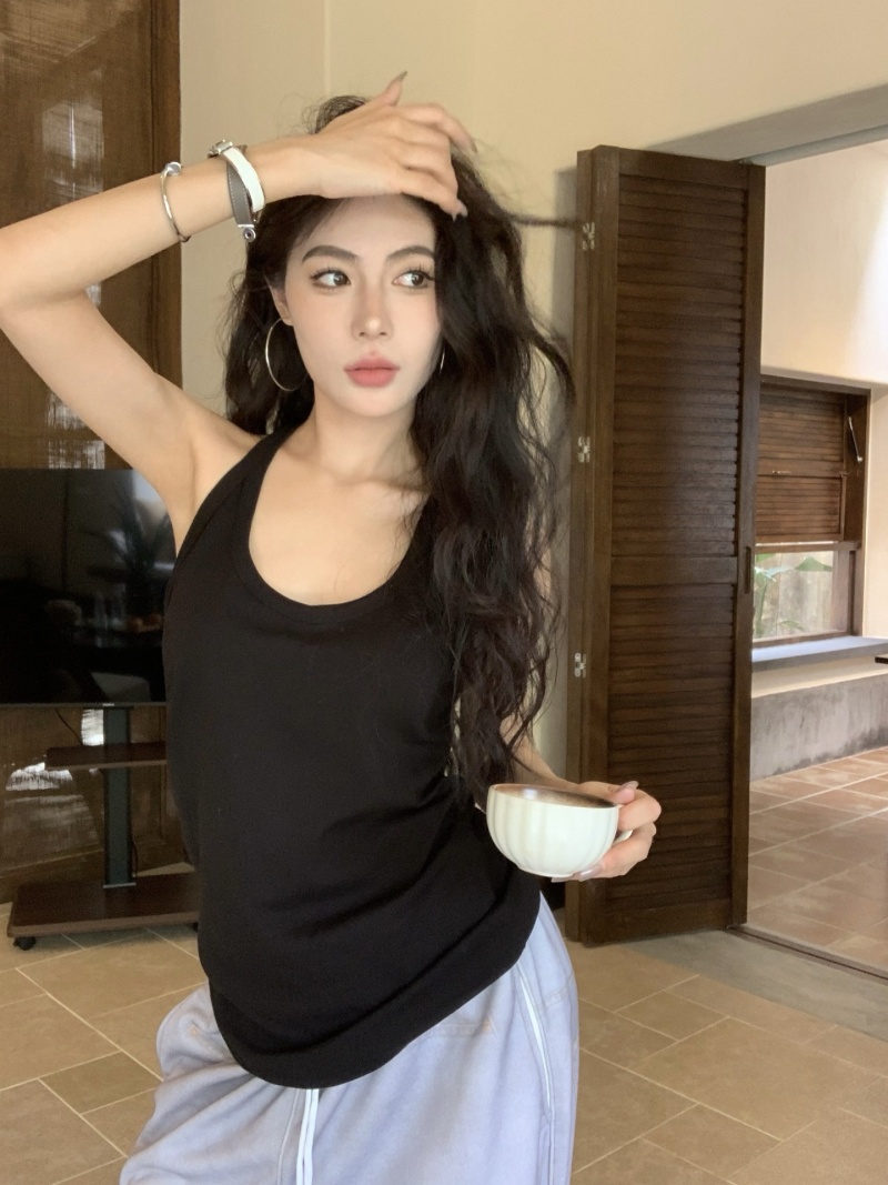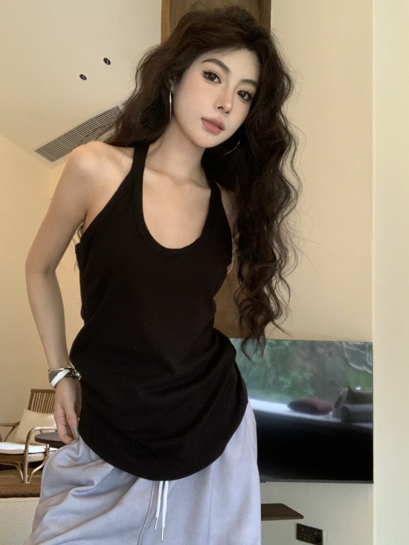 无袖挂脖内搭外穿美背性感辣妹穿搭上衣短款bm吊带针织背心女夏潮