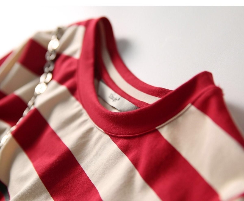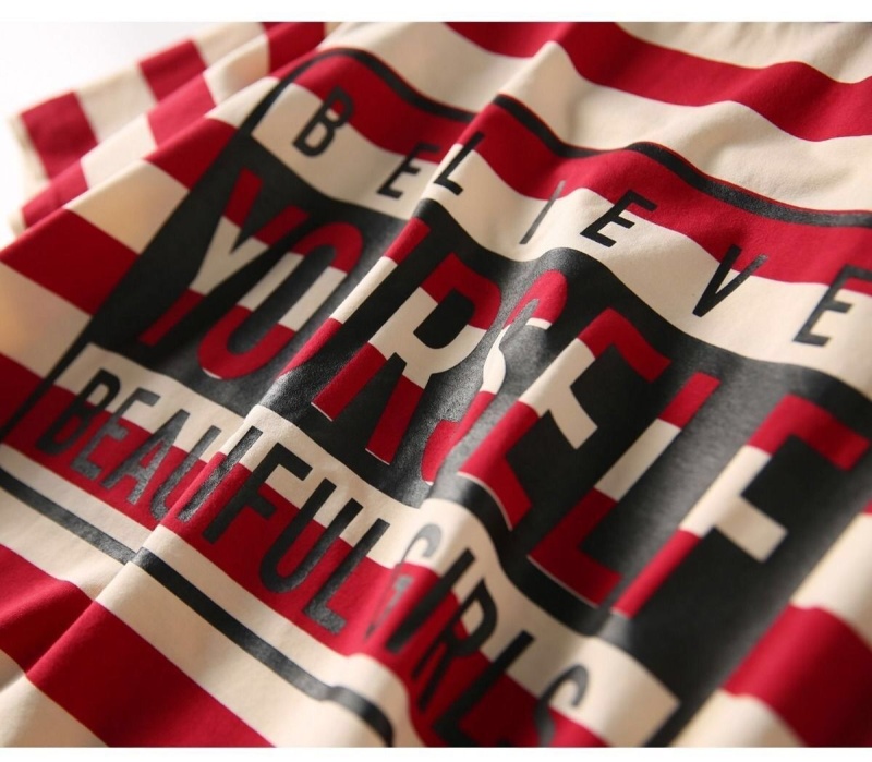 2025夏季宽松显瘦条纹印花T恤连衣裙女装学生韩版中长款短袖裙潮