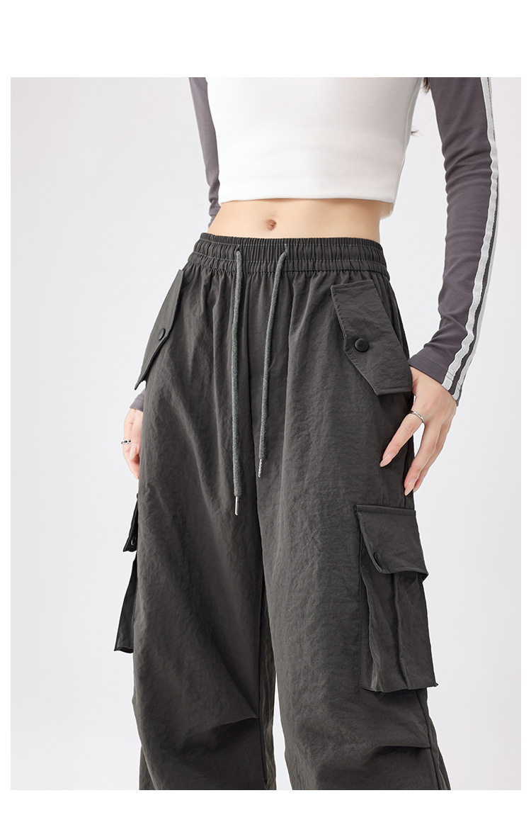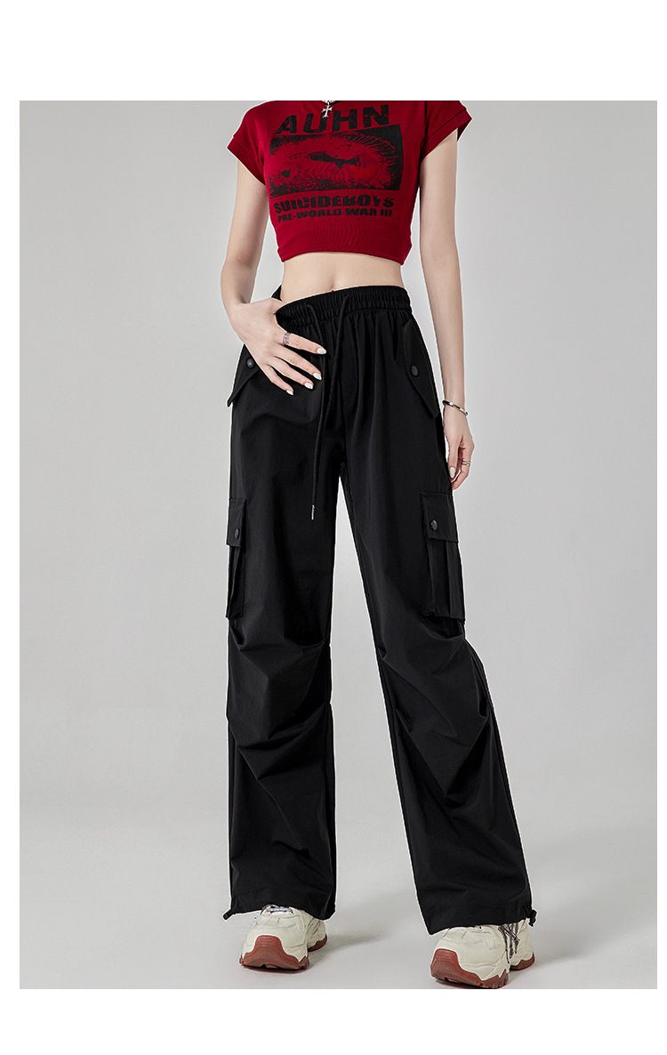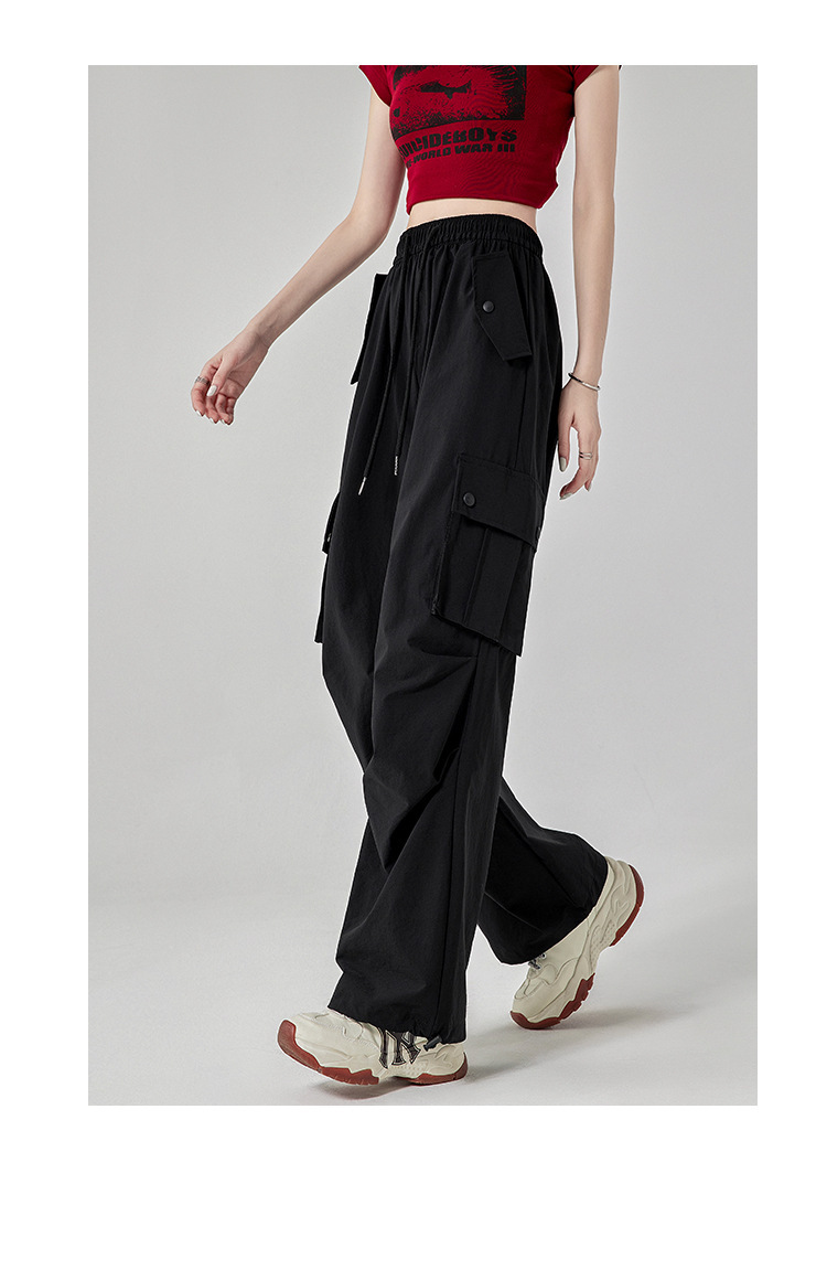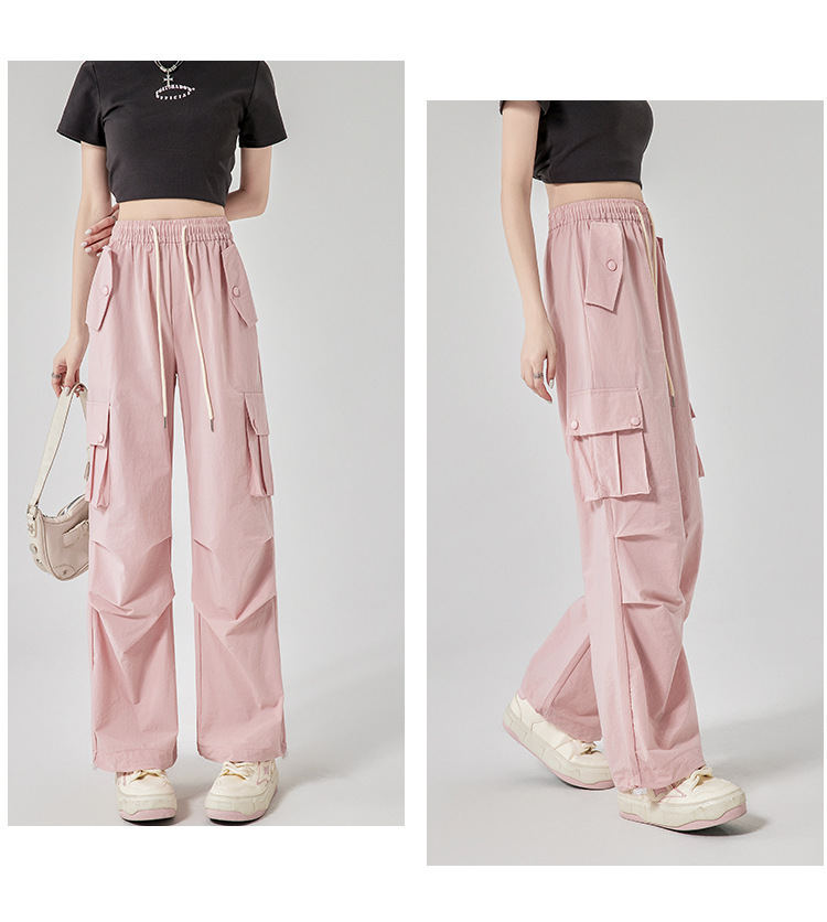 美式工装裤女夏季2025新款高腰速干降落伞裤子休闲阔腿运动长裤潮
