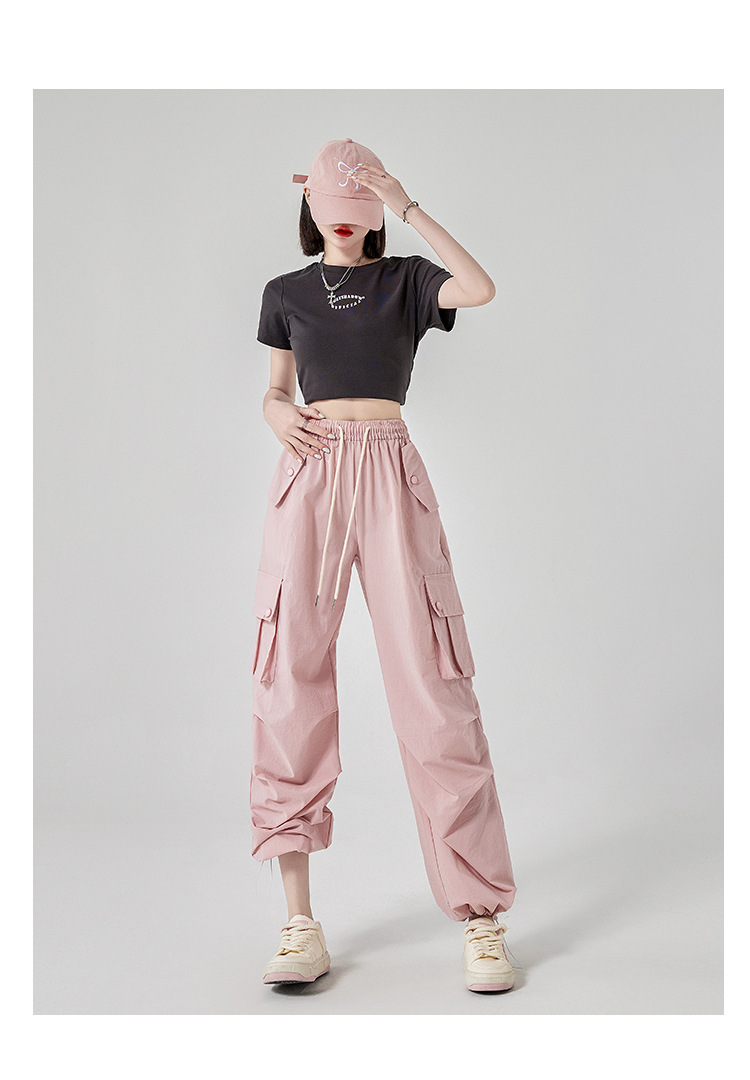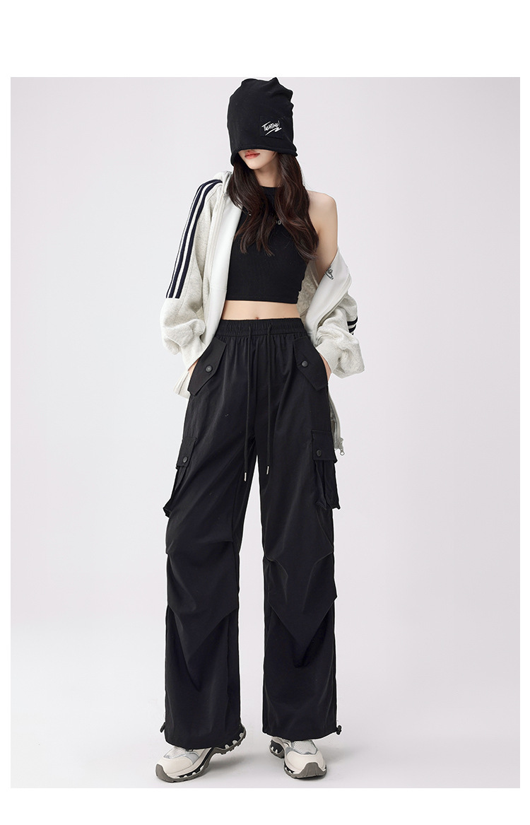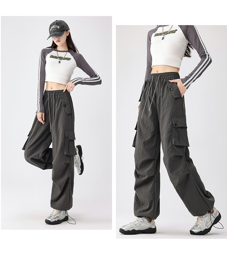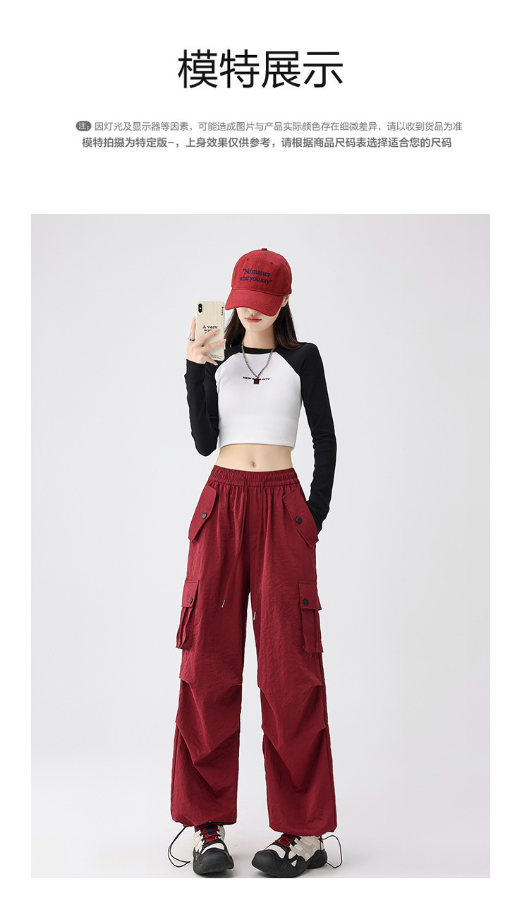 美式工装裤女夏季2025新款高腰速干降落伞裤子休闲阔腿运动长裤潮
