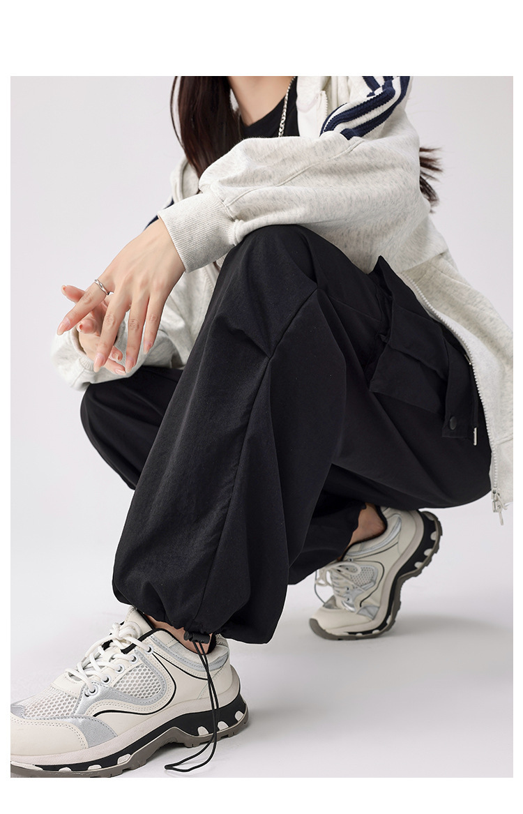 美式工装裤女秋季2024新款高腰垂感速干降落伞裤子休闲阔腿运动裤