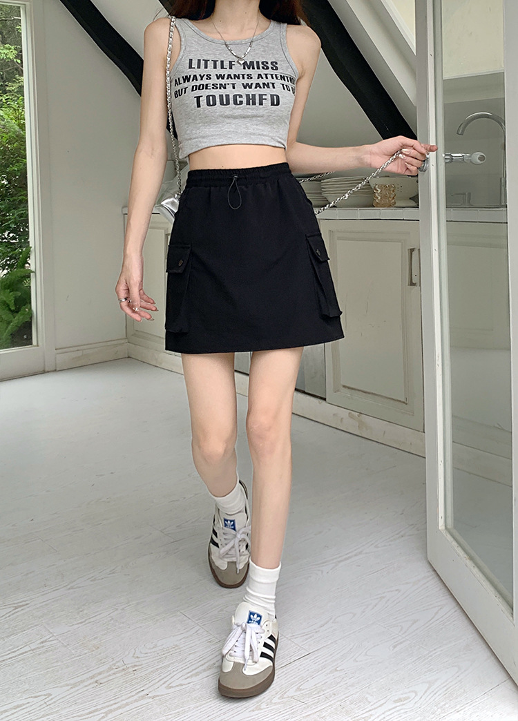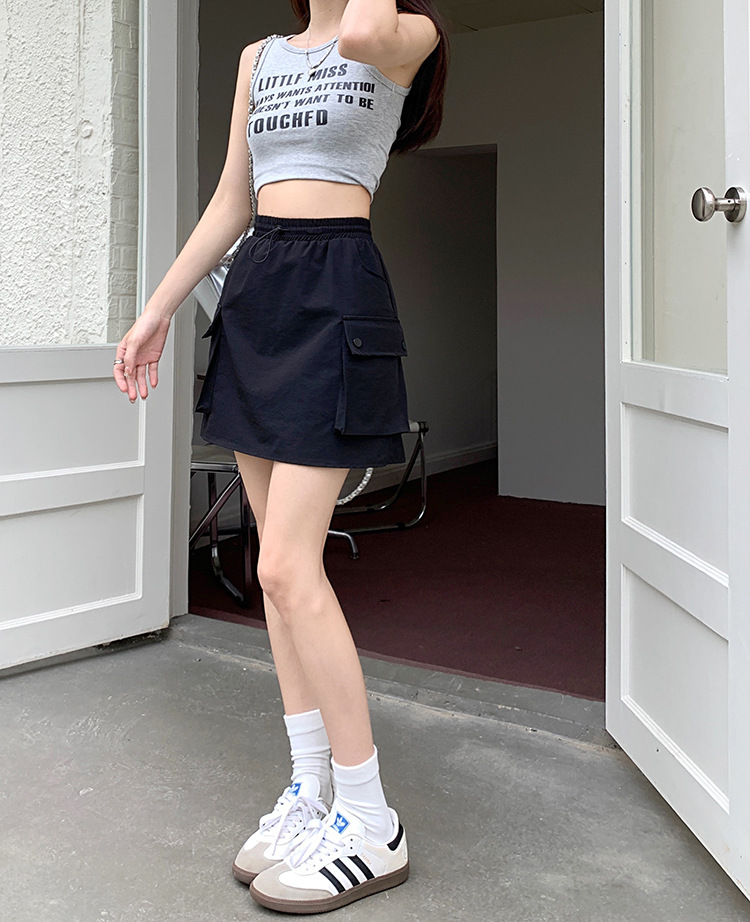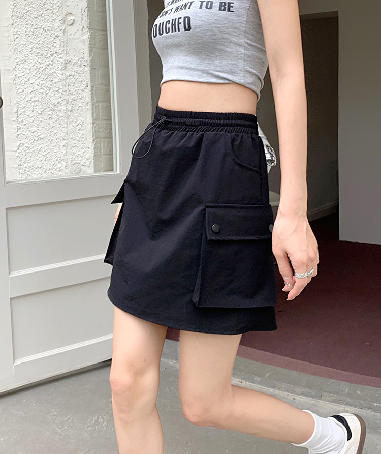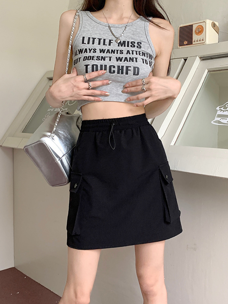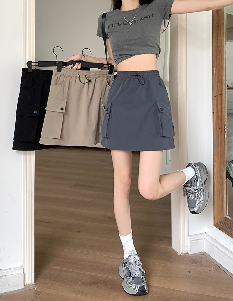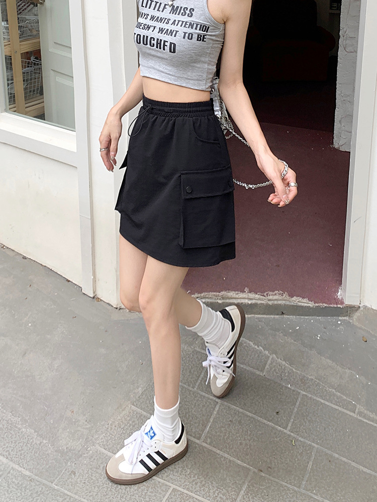 松紧腰抽绳工装半身裙女夏季2025新款辣酷高腰设计感小众A字短裙