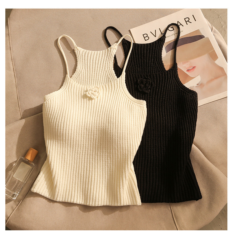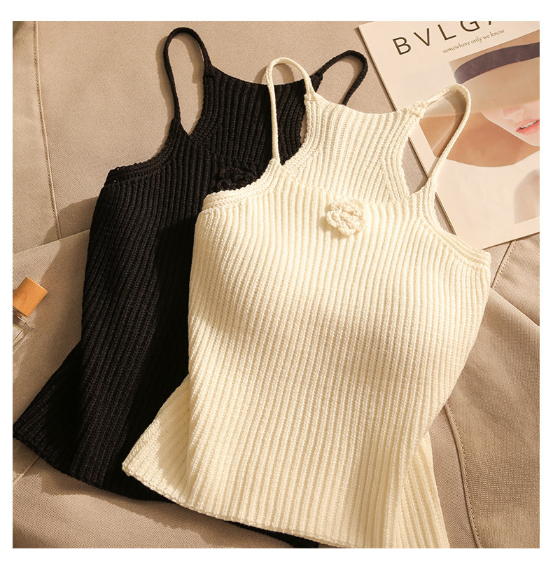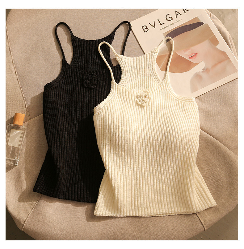 夏季新款山茶花刺绣小香风bm带背心打底针织背心吊带性感上衣女潮