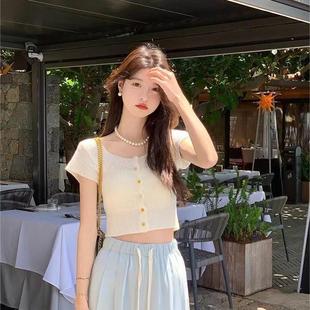 夏季新款性感辣妹吊带背心设计感小众外穿美背高腰露脐针织上衣女